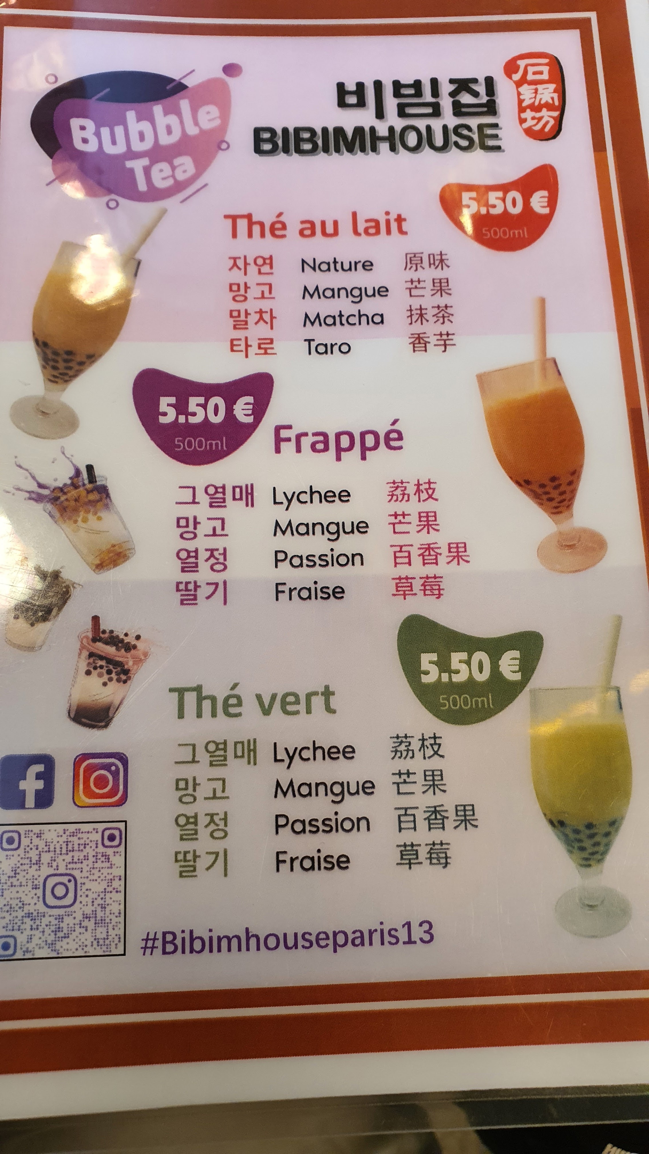 Les Bubble tea et frappé aux fruits sont excellents surtout en cette année caniculaire, le restaurant coréen est nouveau dans le treizième et il est bien agencé et accueillant. Nous avons goûté seulement les boissons décrites dans mon commentaire car manque de temps pour aller y manger dedans nous avons pris à emporter. Cela dit on reviendra y manger quand on reviendra dans le quartier.