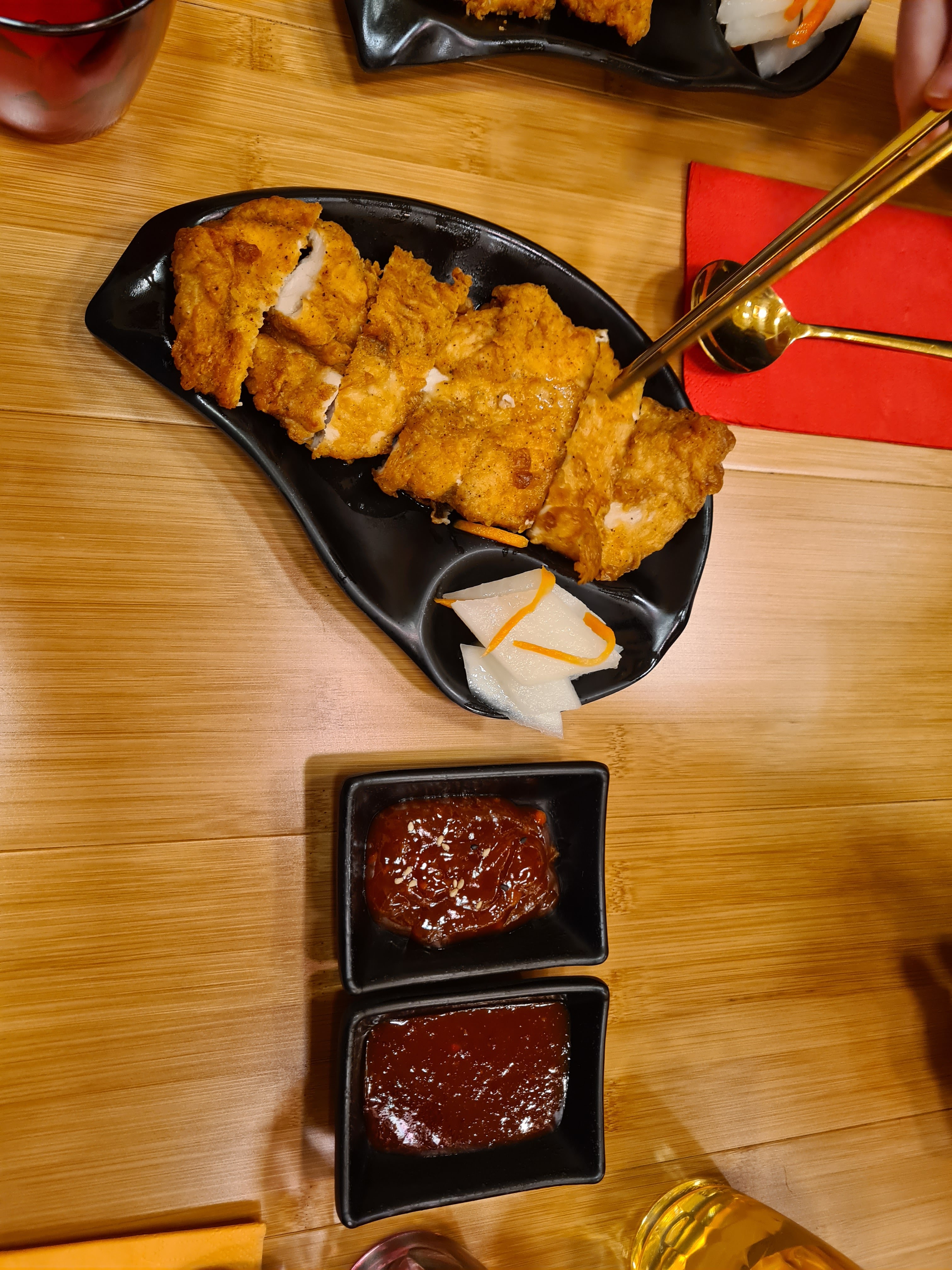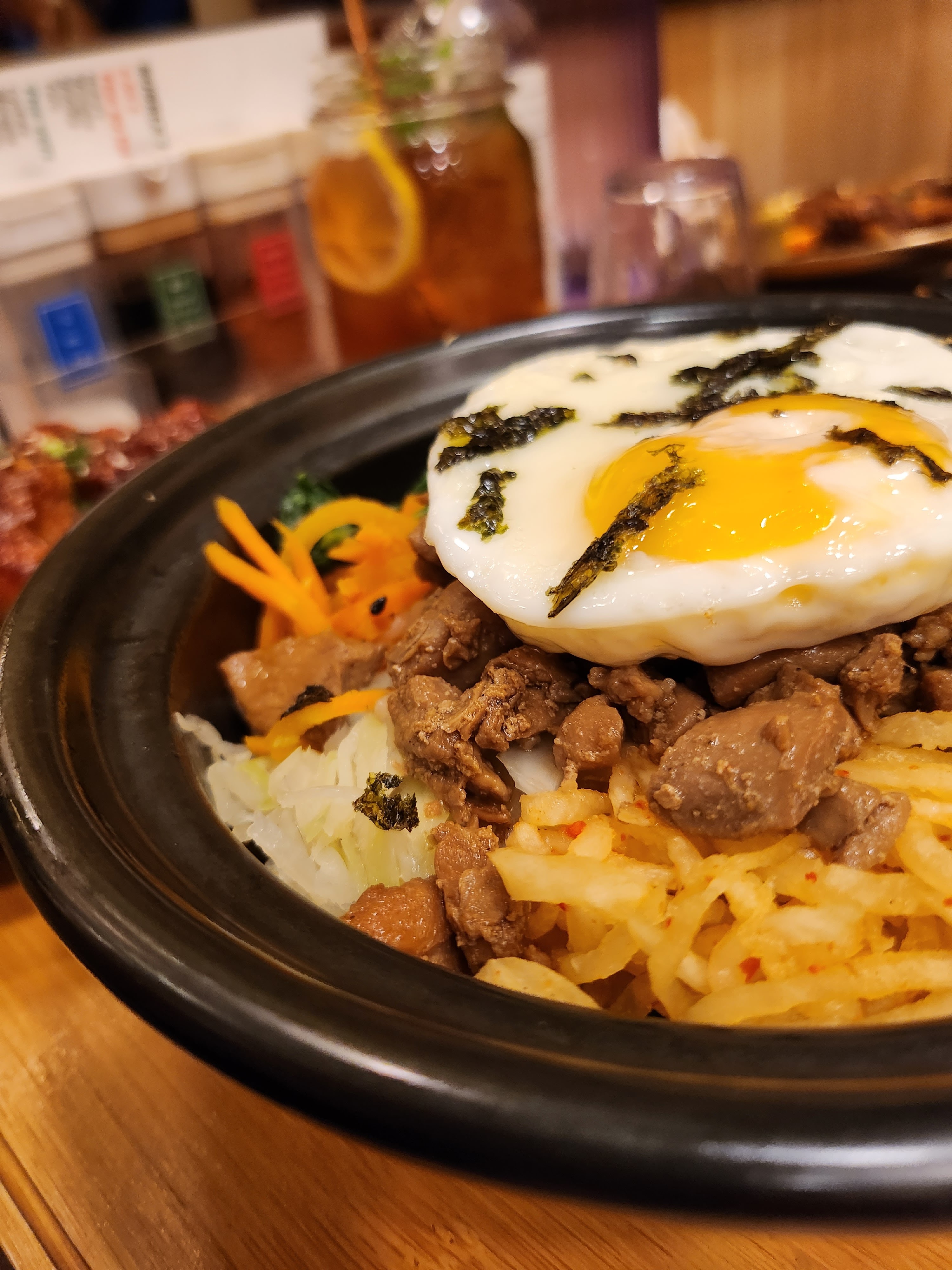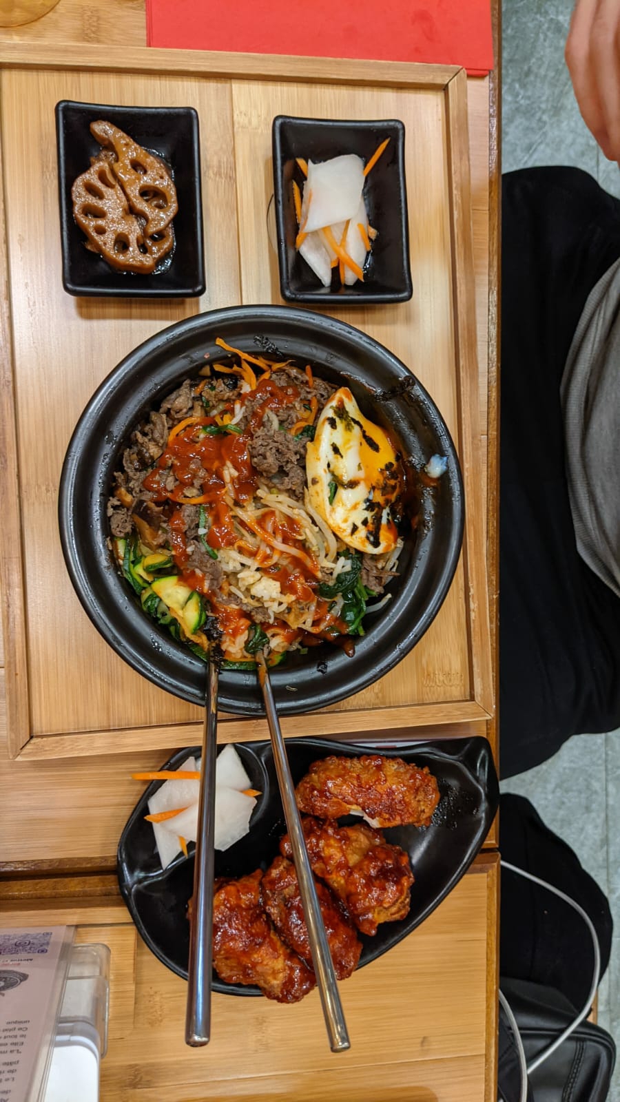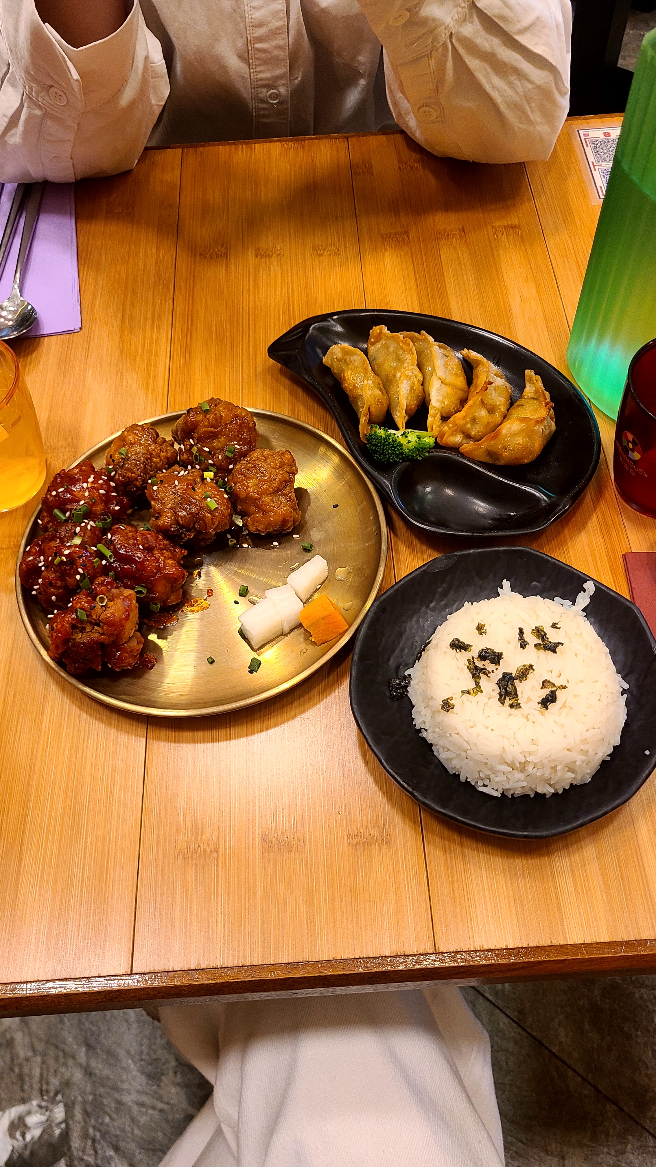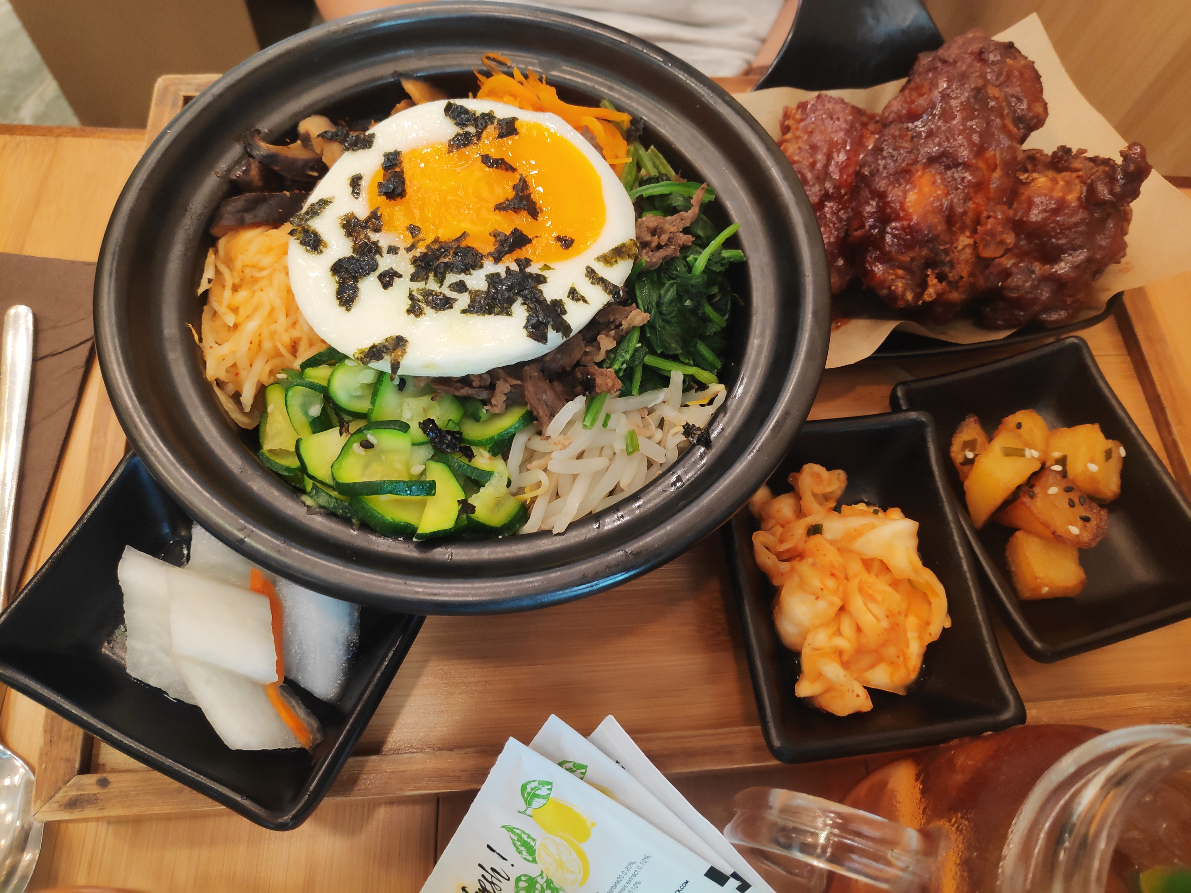 Le bibimbap au porc et la marmite de riz au poulet manquait de goût, malgré les sauces mis à disposition mais les proportions sont assez généreuse malgré le prix. Le poulet frit est bon et bien croustillant.
