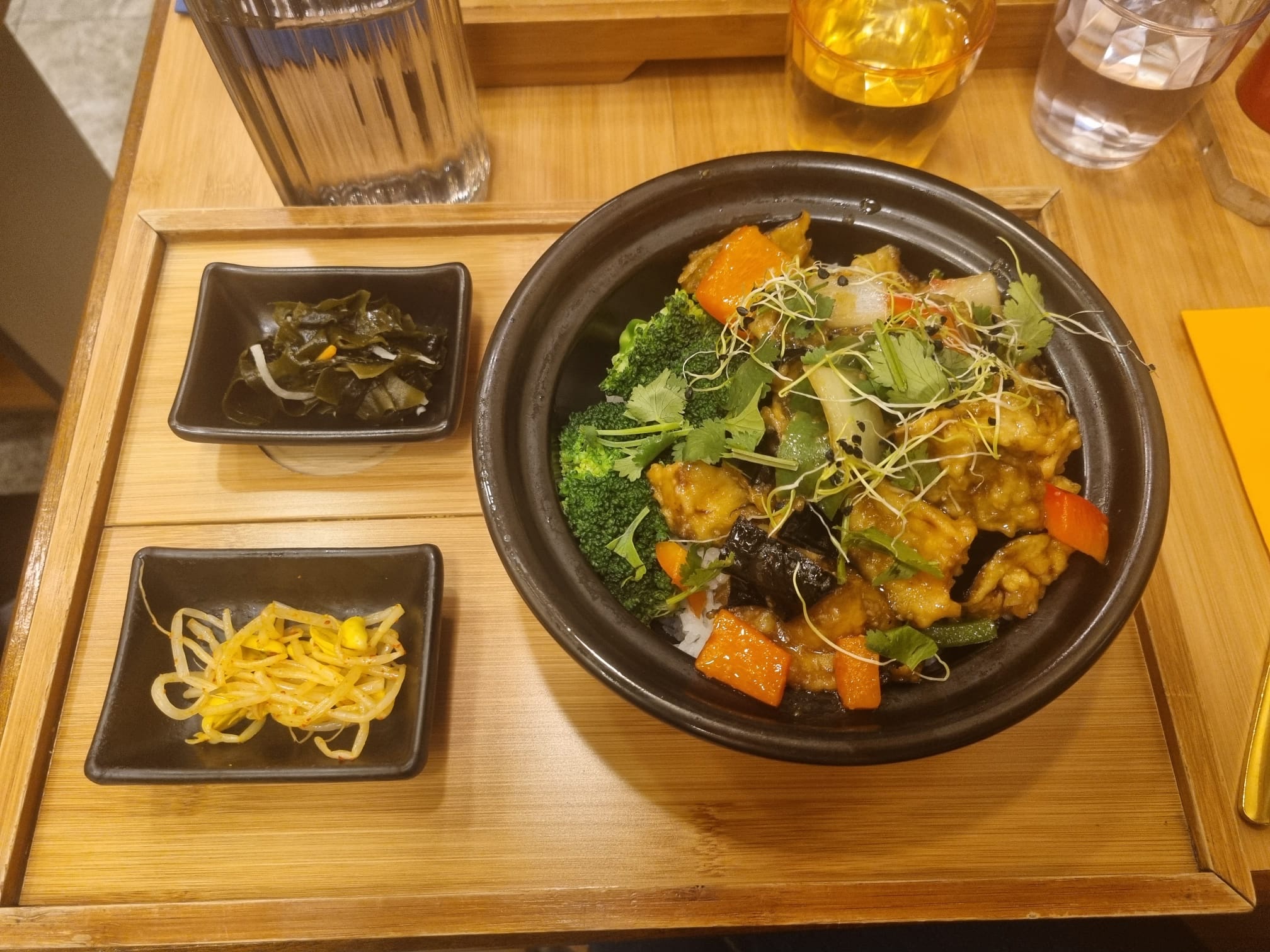 Le concept est très bien ! La portion est généreuse : pas mal de légumes, de riz et il y avait même des petits légumes à côté du plat principal. Le riz est croustillant au fond du bol. J'ai apprécié le fait qu'on pouvait doser sa sauce. Ils présentent à côté une sauce pimentée, une sauce salée et l'assaisonnement se fait à la suite à notre convenance. Le service est rapide. Toutefois le prix reste un peu élevé.