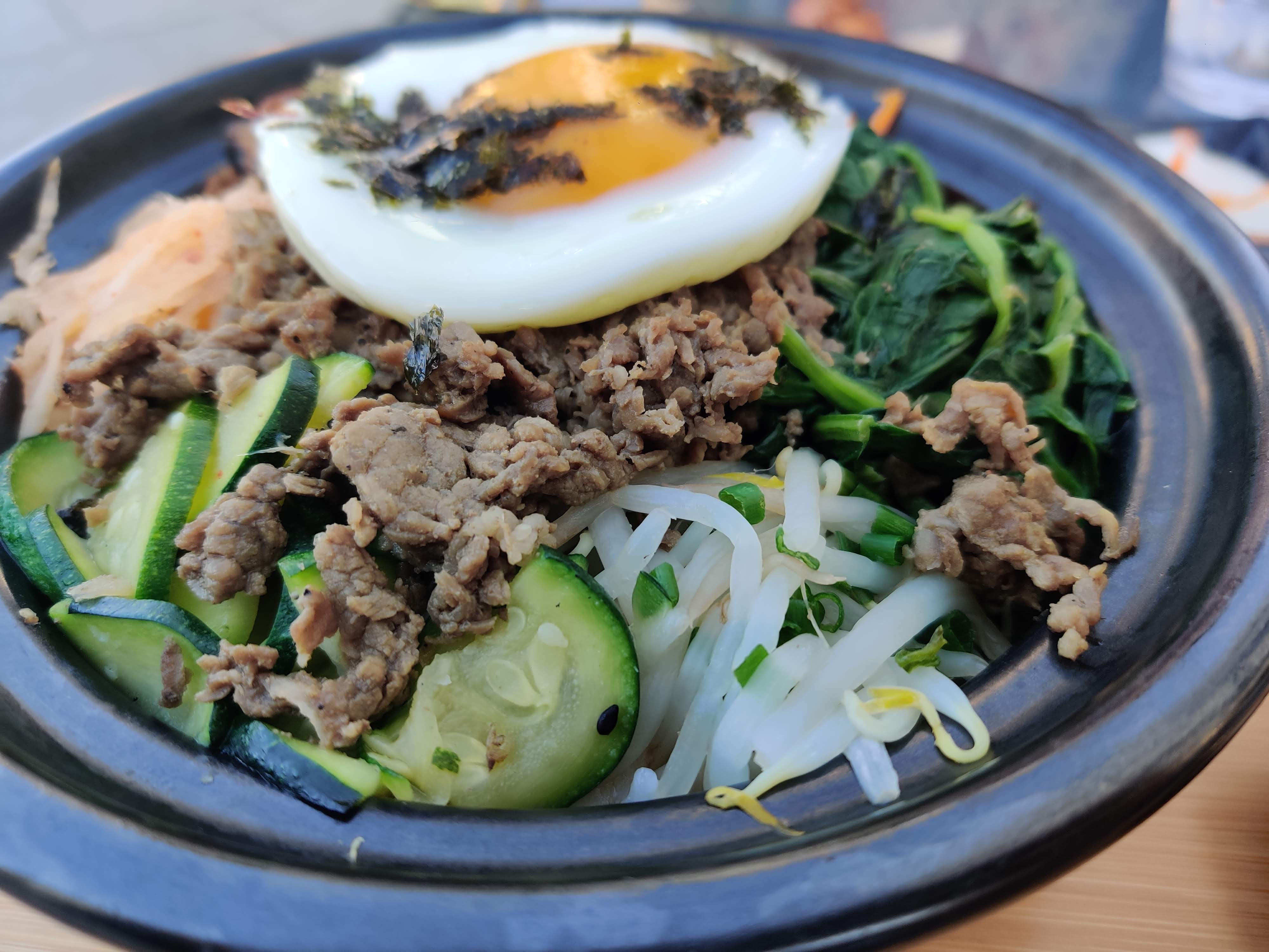 Bibimbap tout a fait correct, avec le riz bien croustillant au fond. Manquait un peu d'assaisonnement mais rectifié avec les condiments proposés. Accueil chaleureux et service rapide.