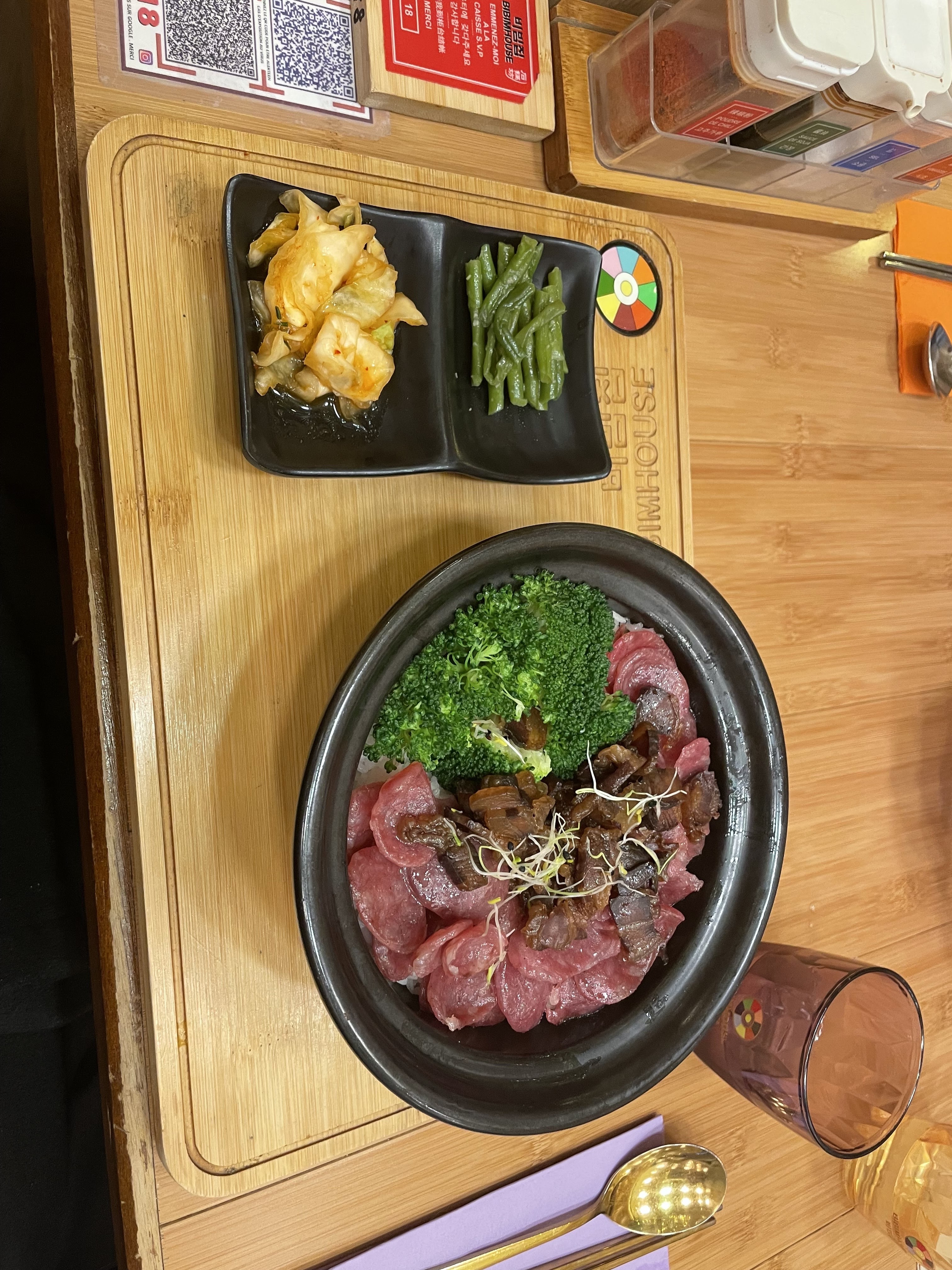 - Découverte sur insta, j'ai voulu essayé ce restaurant et pas déçu. - Endroit assez petit, un peu bruyant même avec peu de monde dans la salle. - Très bel accueil + service super rapide par deux serveuses super gentilles et dynamiques. - Différents menus qui restent raisonnables. (16/19€). Le bémol, pas beaucoup de choix pour les entrées. - On a testé le Bibimbap ainsi que la marmite : Le riz croustillant au fond, le top ! Sa rajoute une texture en plus. Les viandes sont bien cuites, pas secs. Les condiments, super frais et goûteux. Pas beaucoup salé et heureusement pour ma part. Mais il existe plusieurs sauces à disposition pour assaisonner.