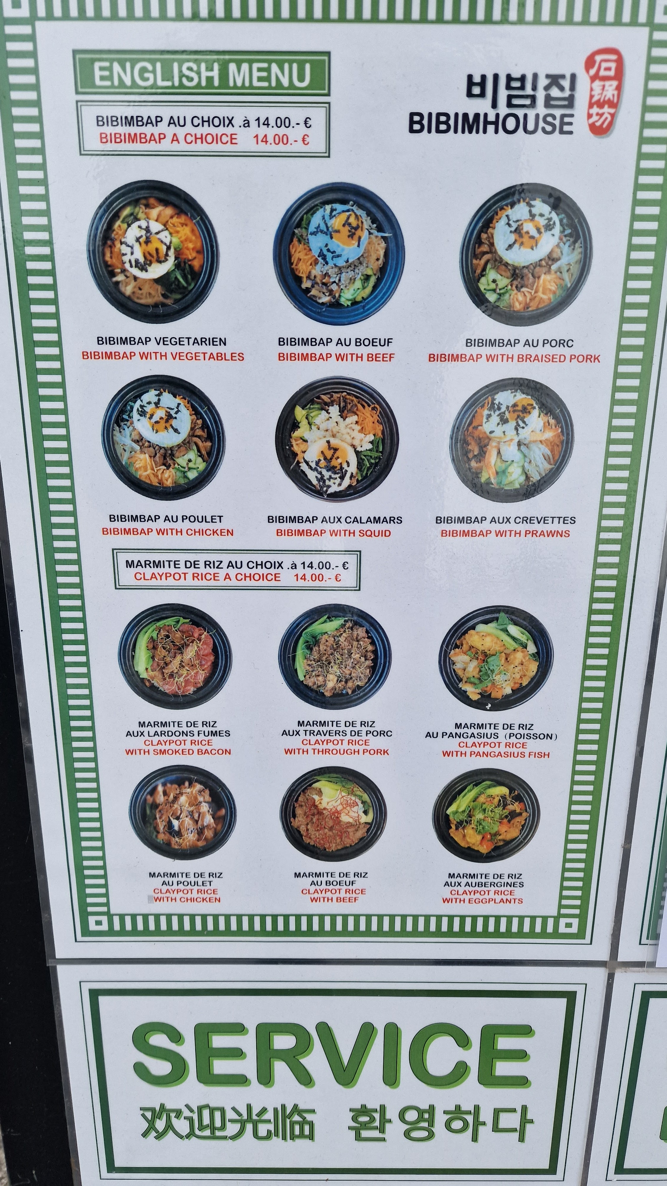 Pour une première d'expérience de bibimbap très réussite. Malgré le monde qu'il y avait , ils savaient et savent toujours d'ailleurs , être gentil et à l'écoute , et vous demande même si votre repas se passe bien. Prix abordable. Pour vous donner un exemple , on a fait tombé une baguette par accident sur le sol , et on nous en a rapporté un de rechange sans qu'on ait à le demander , pour vous dire la réactivité et l'écoute de l'équipe , qualité de service au top , à croire qu'ils sont payé 3000 euros par mois tellement le service est de qualité.