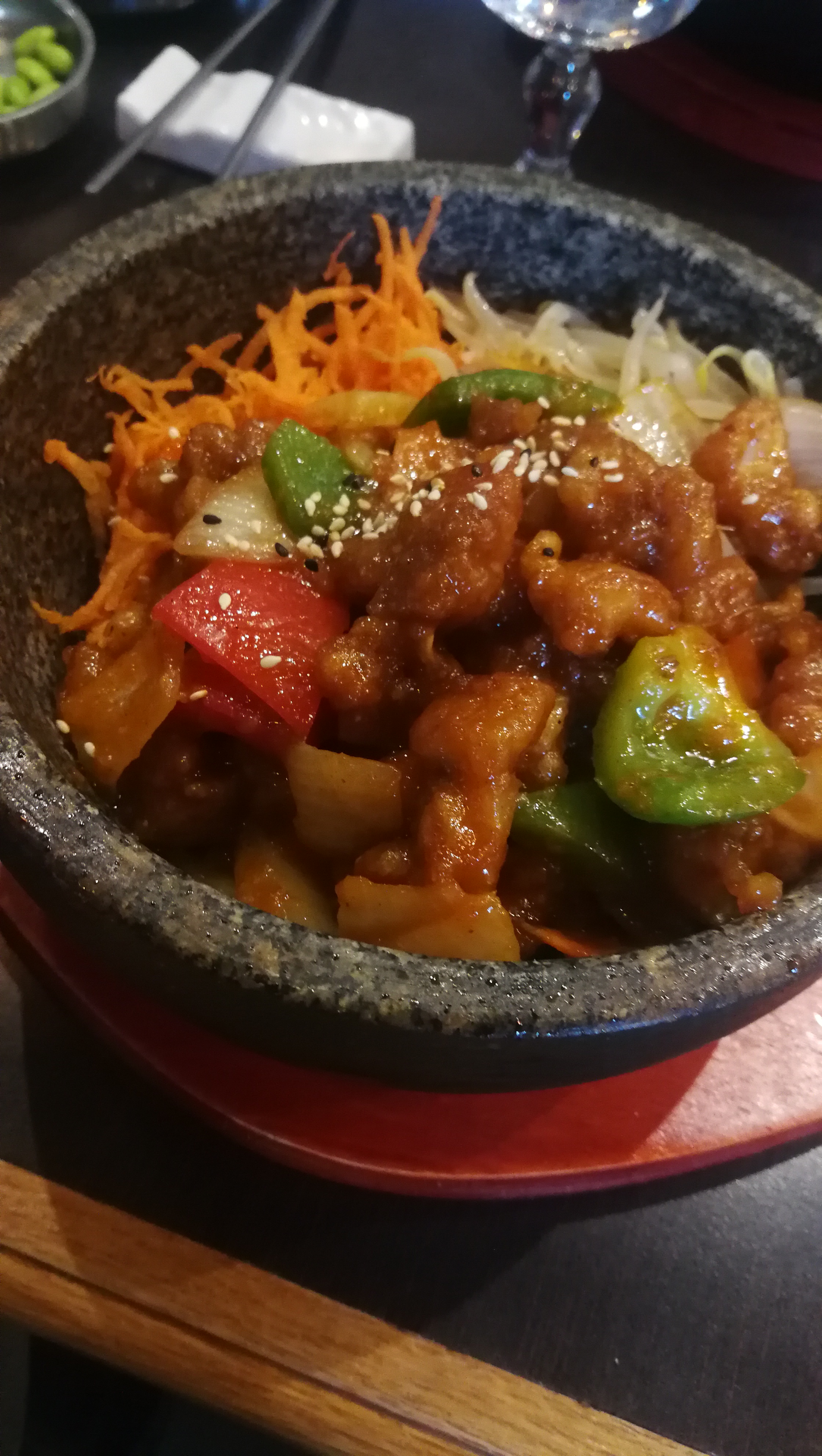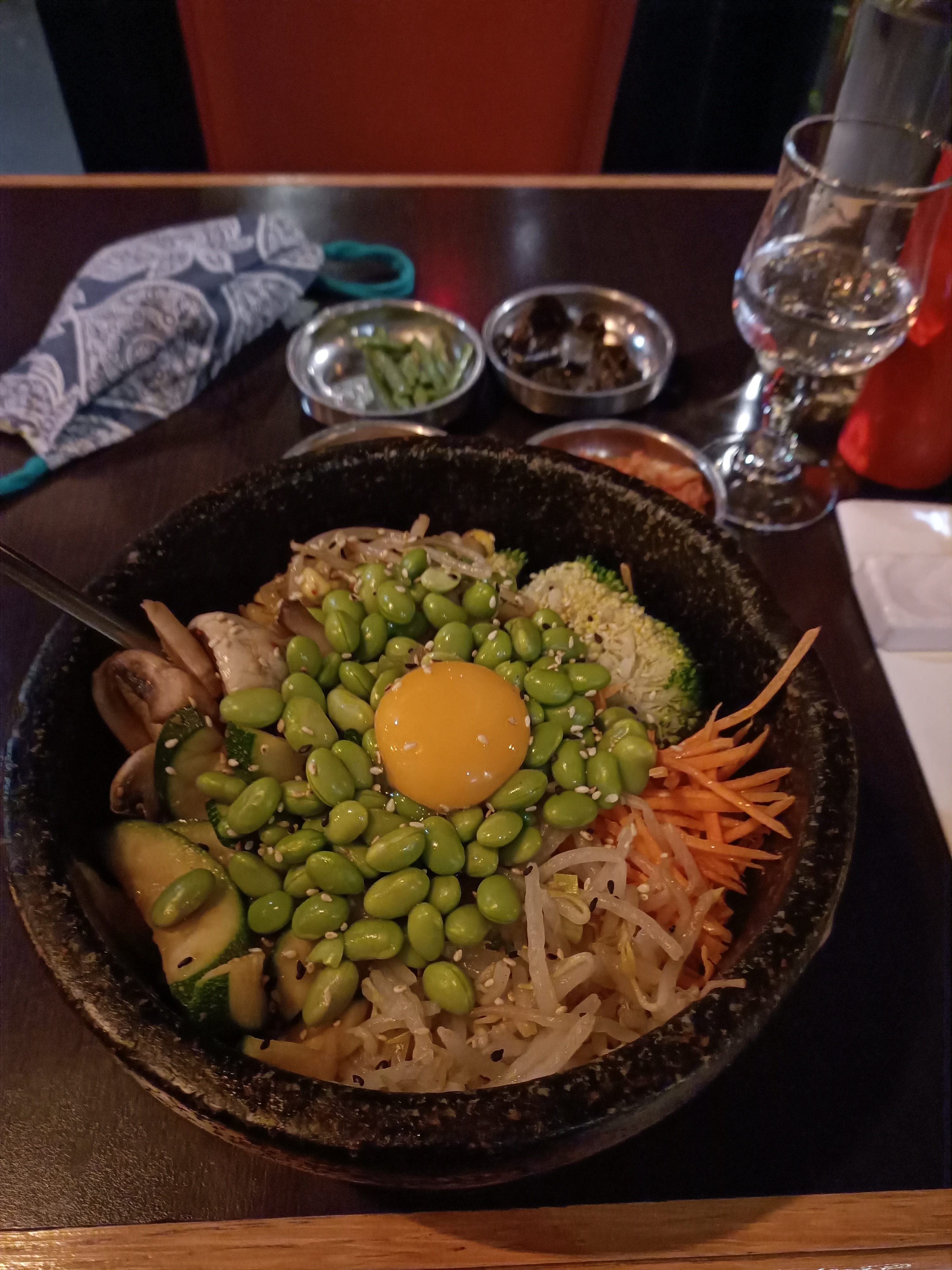 J ai adorer! Leur plat phare est un délice, servi très chaud dans un bol en pierre chauffé, délicieux.