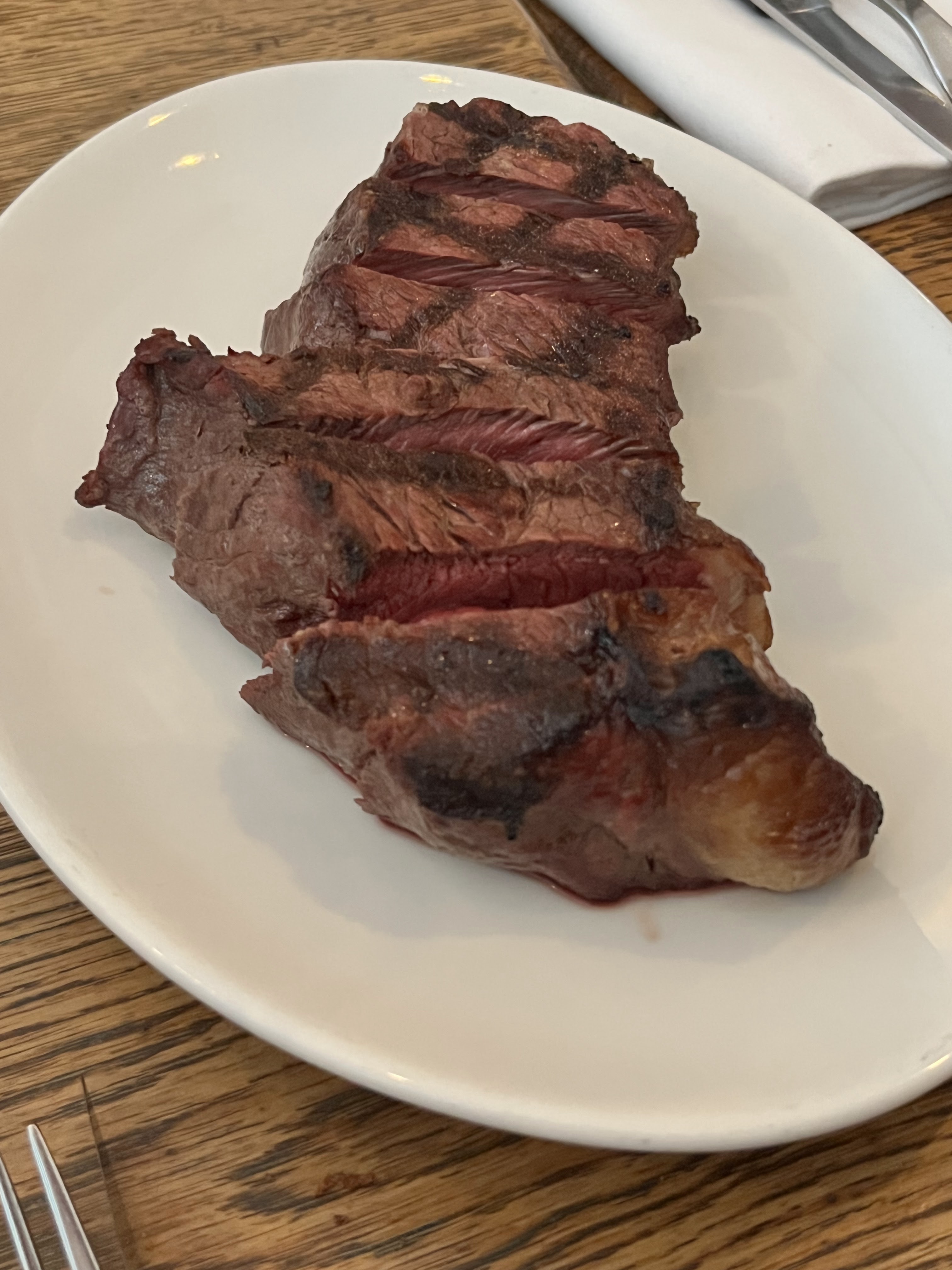 Amateurs de viandes maturées, faites vous plaisir à un prix raisonnable. Belle ardoise du jour. Salle et service très agréables. On aurait juste aimé des couteaux dignes de ce nom plus design, correspondant mieux au lieu et à la cuisine, juste pour le fun et le plaisir des yeux.