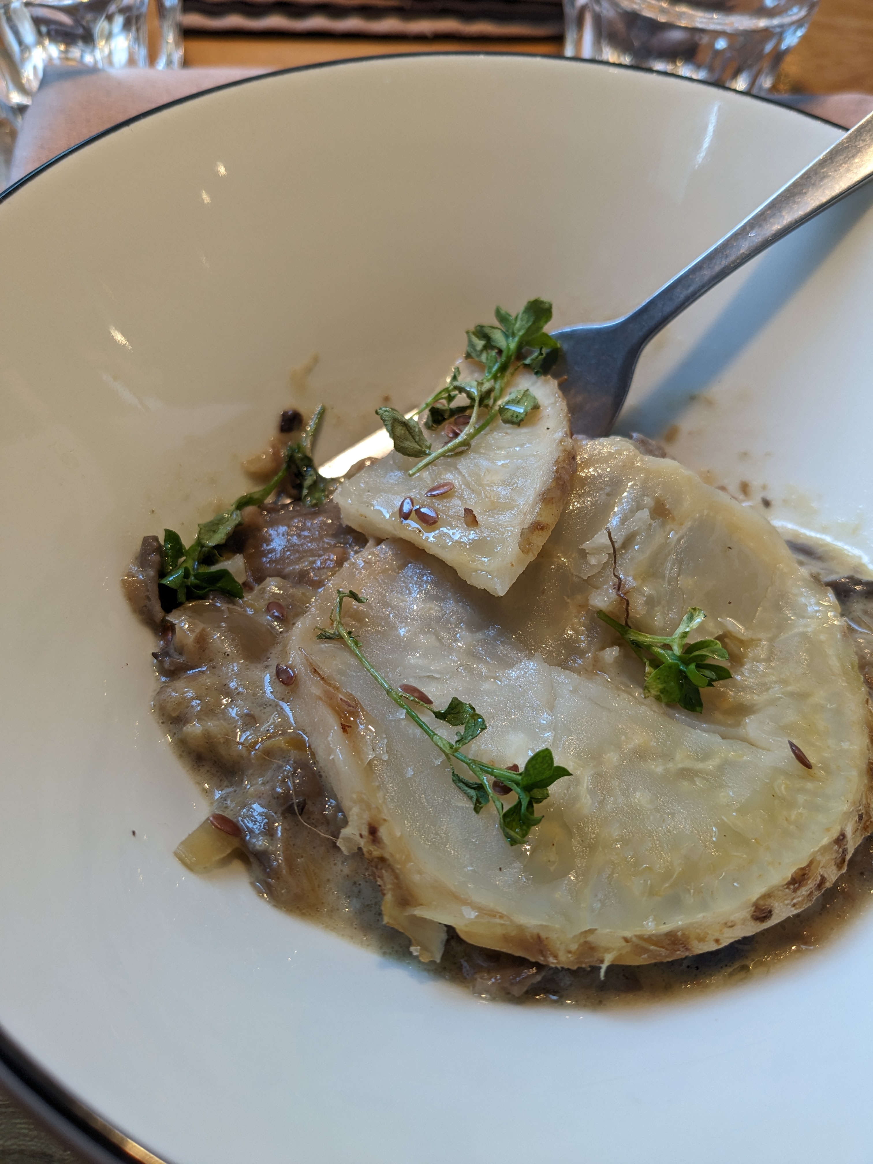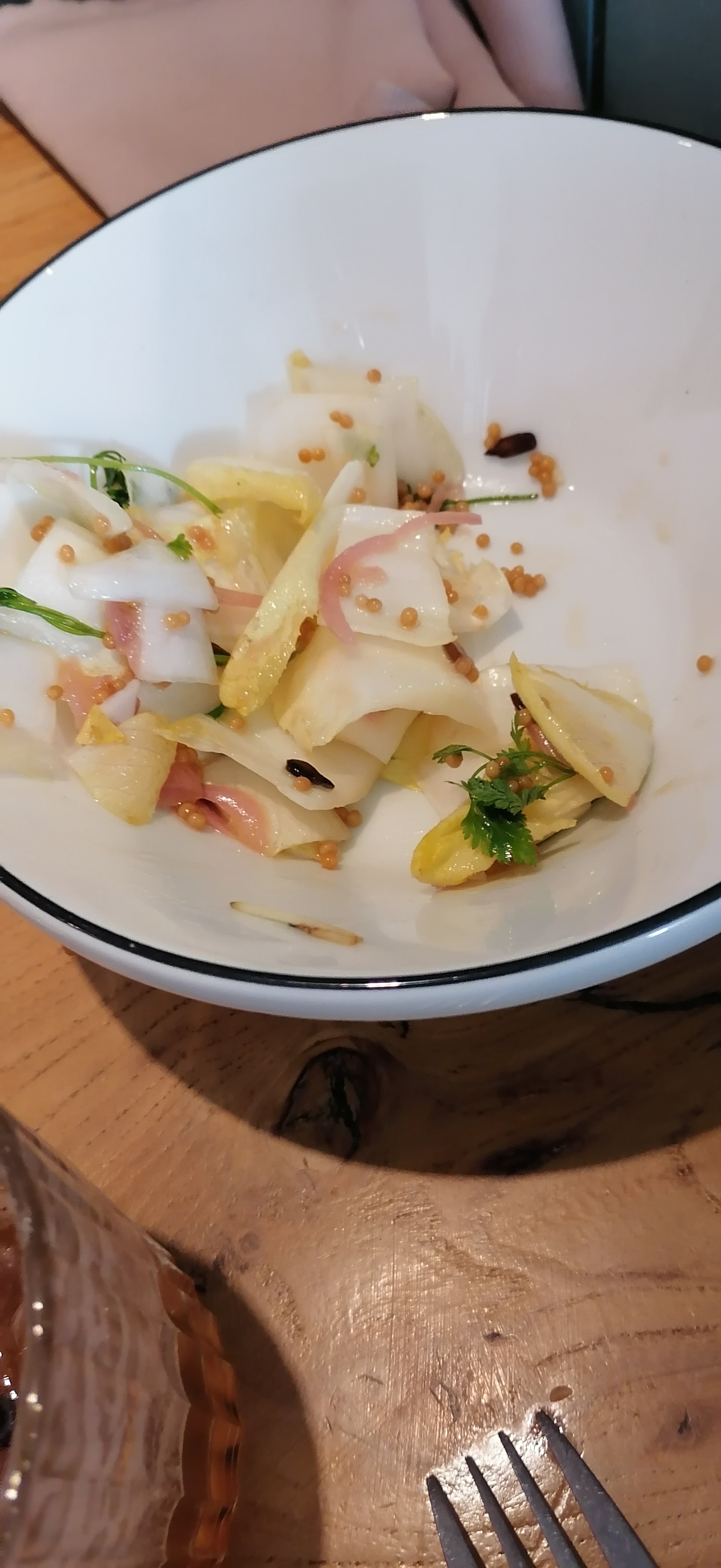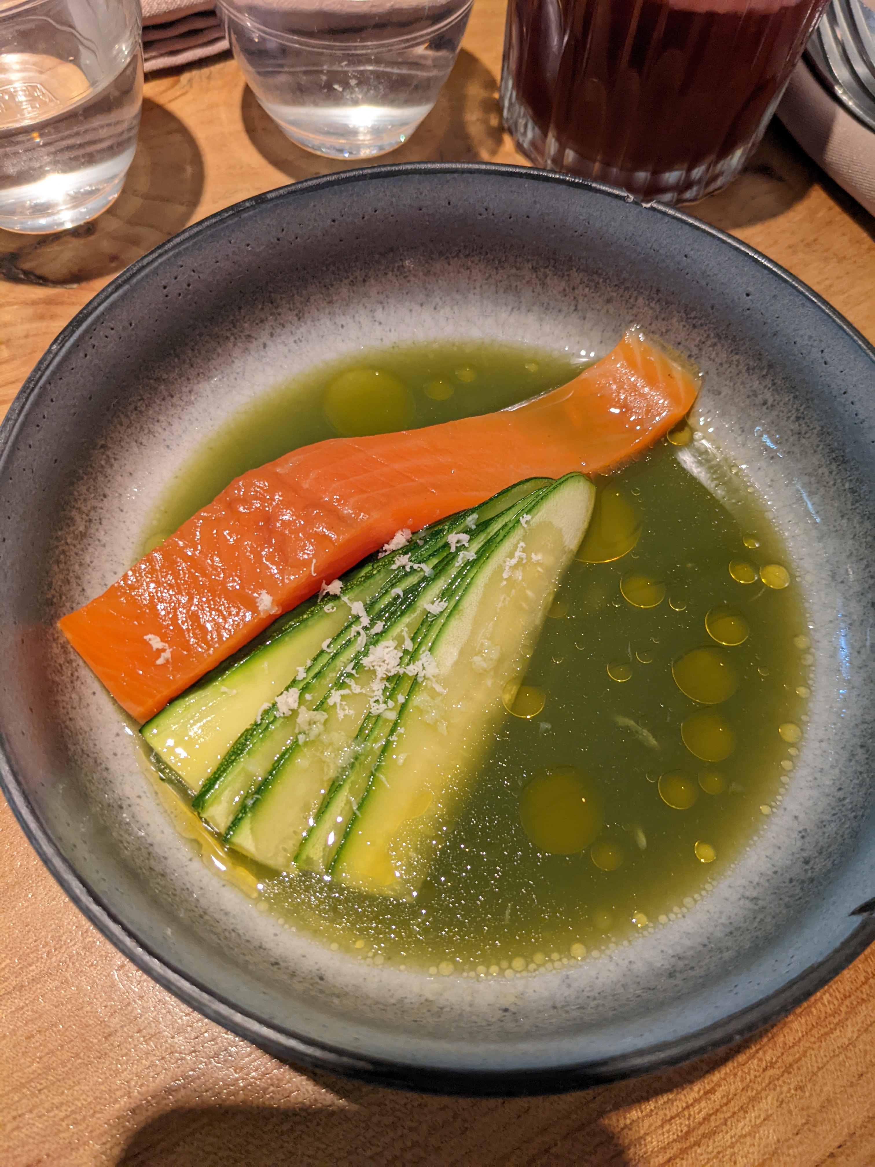 Un chouille déçue ! finalement j'aurais du aller en bas ! j'avais une grande attente (trop grande sans doute) d'aller manger la cuisine et voir le concept du Chef Ladeyn : c'est très bon les produits vraiment de qualité mais j'avais pas compris qu'il n'y avait pas le choix à la carte ! les plats de la salle d'en bas m'ont vraiment fait envie : donc frustration ! j'y retournerai mais en bas ;-) Mais j'ai tout mangé juste j'aurai aimé avoir un choix de plat !