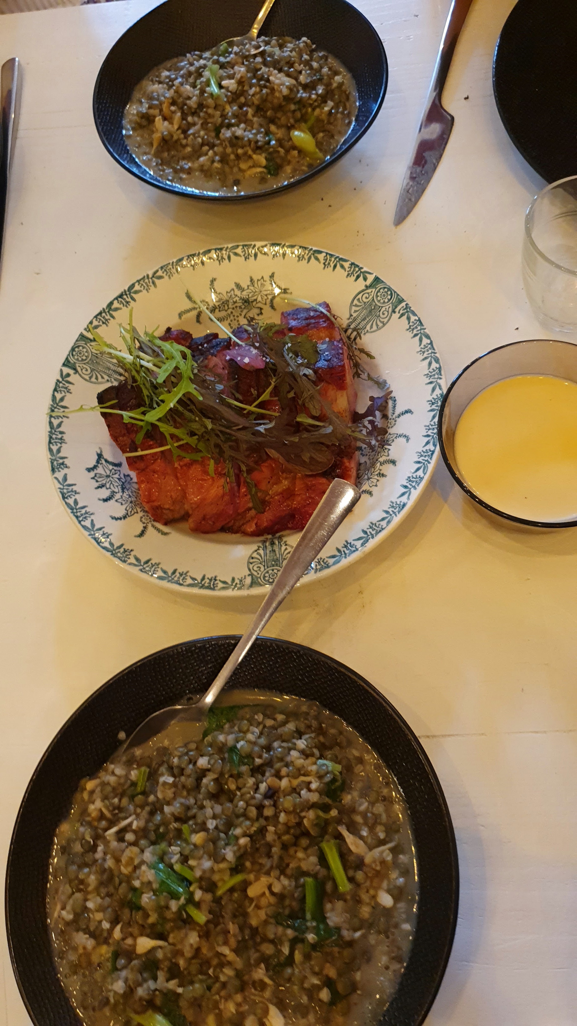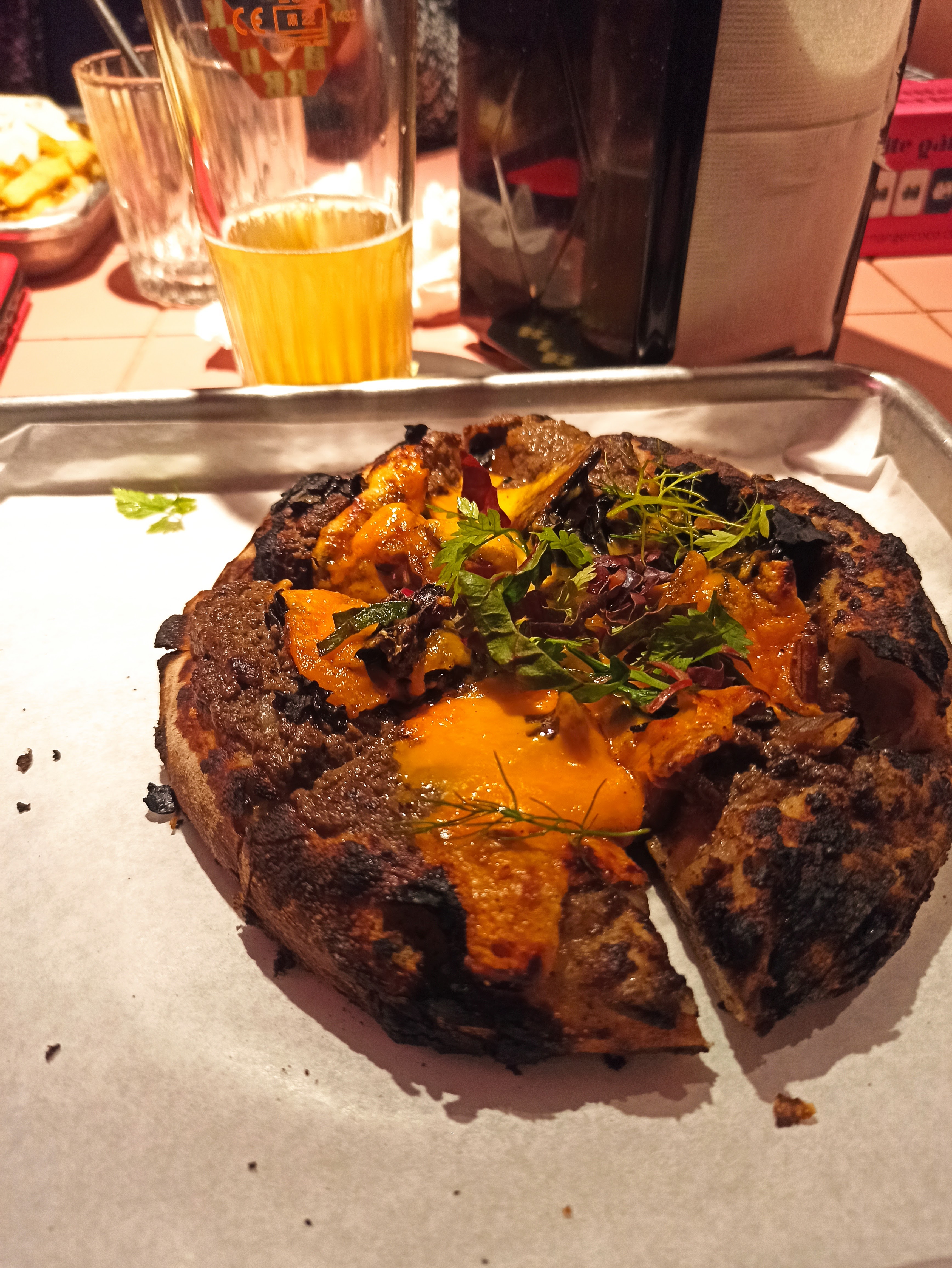 Premier soir sur Lille pour nous, j’en avais entendu parlé via Instagram & nous sommes tombés dessus par hasard ! Bonne ambiance, serveurs vraiment adorables. Nous avons pris le jambon laqué (ohlalala) et le flat bread (magique!). En dessert, frioche et glace du moment. Addition de 49€ pour 2 avec 2 cocktails, donc plutôt raisonnable ! Je recommande :)