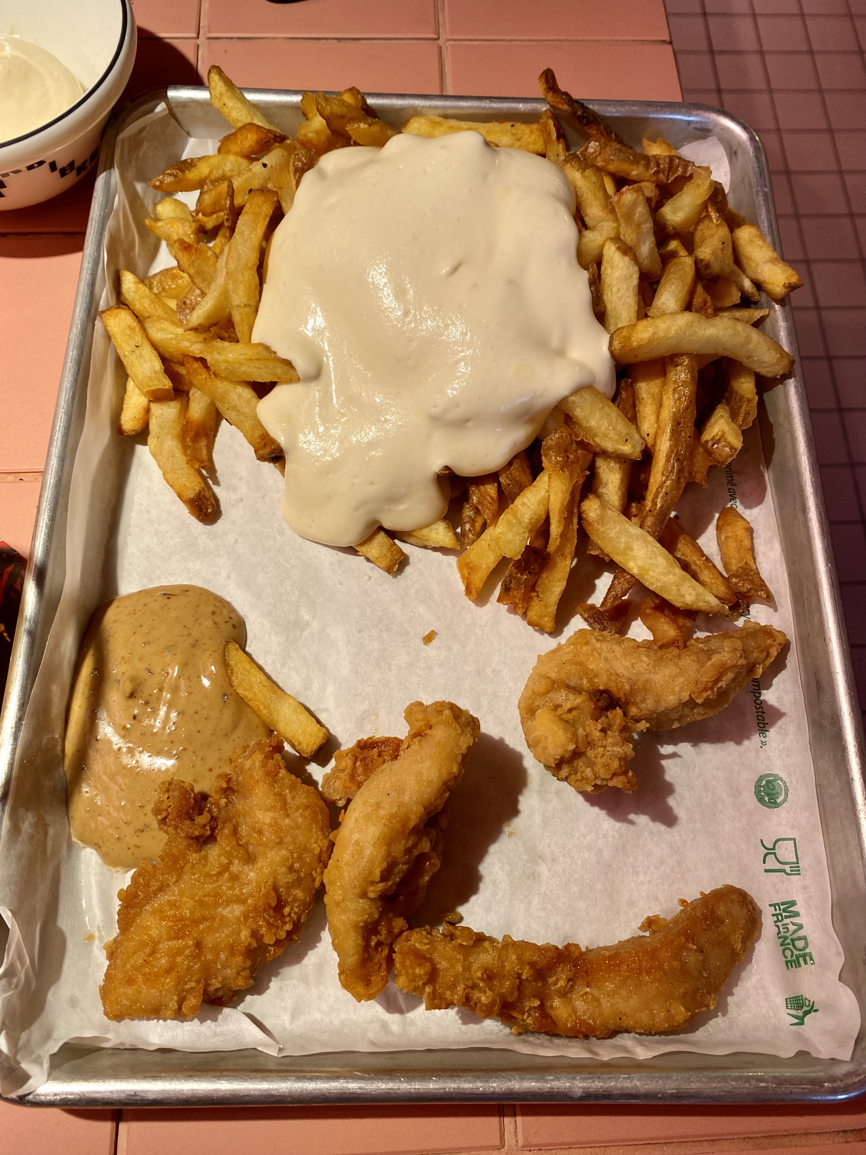 De la comfort food made in Nord : frites au maroilles, ribs, poulet frit, chicorée... pas mal du tout malgré un petit bémol sur les ribs qui manquent de goût.