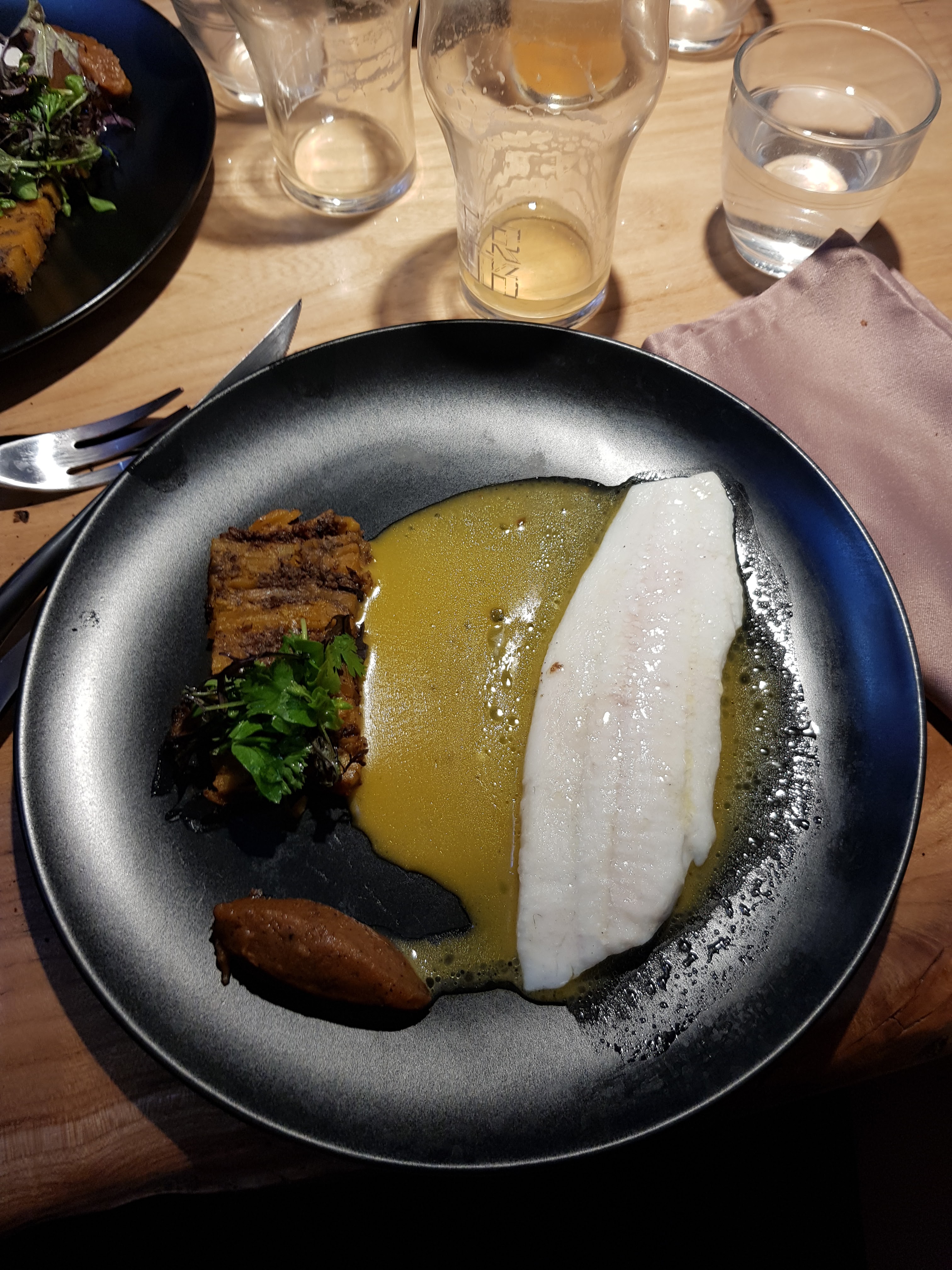 Très bon resto avec menu découverte à 28€. La carte est de saison et les produits locaux. Nous avons eu une petite salade de chou, un maquereau qui était très bon (un peu petit) avec du chou braisée, purée de céleri, des nouilles maison dans un bouillon très bon et en dessert du baba au gin avec sorbet et de la crème fouettée au gingembre (très bon). En bas ils ont un bar très sympa aussi avec des bonnes bières et des frites au maroilles très bonnes.