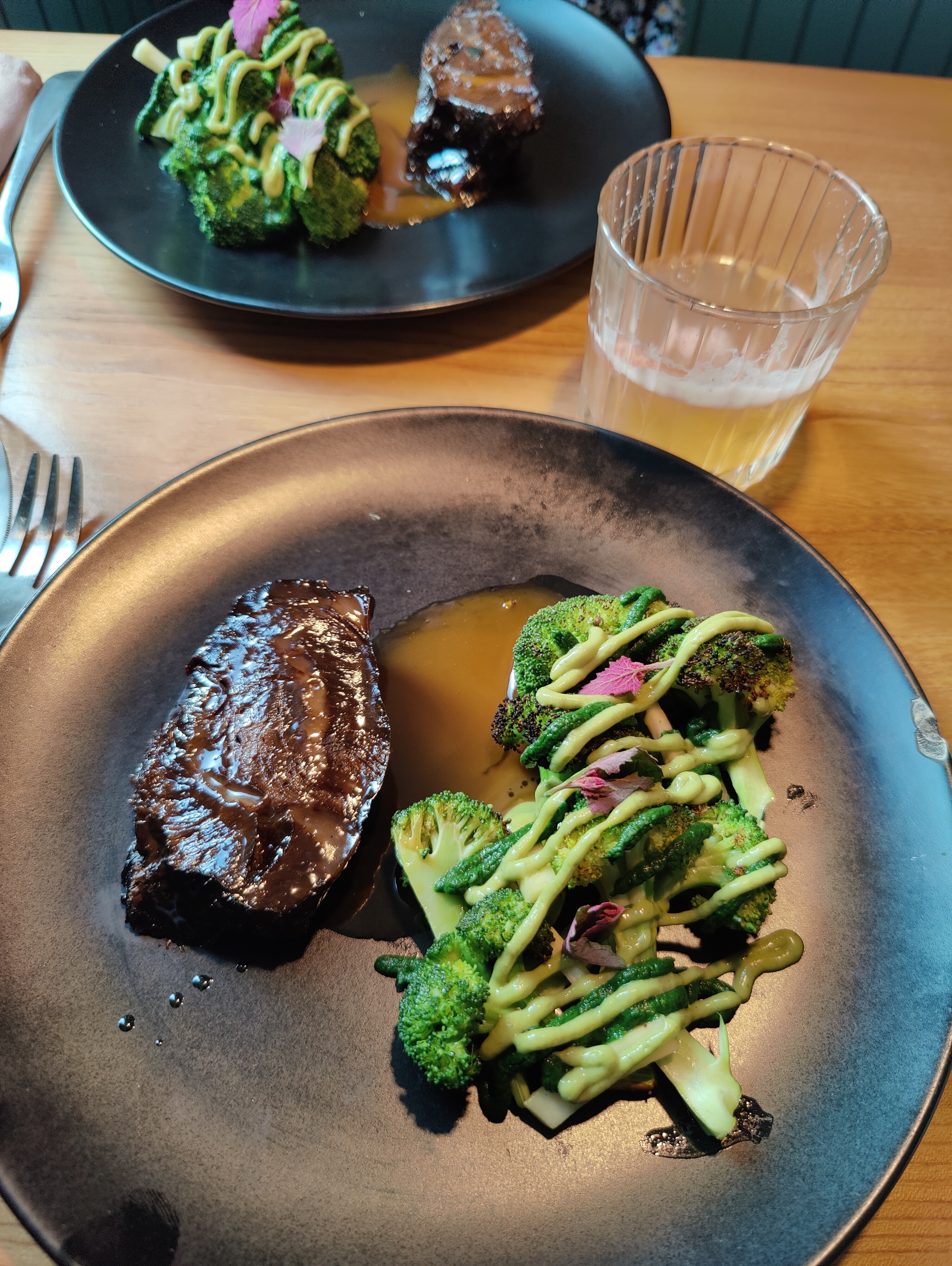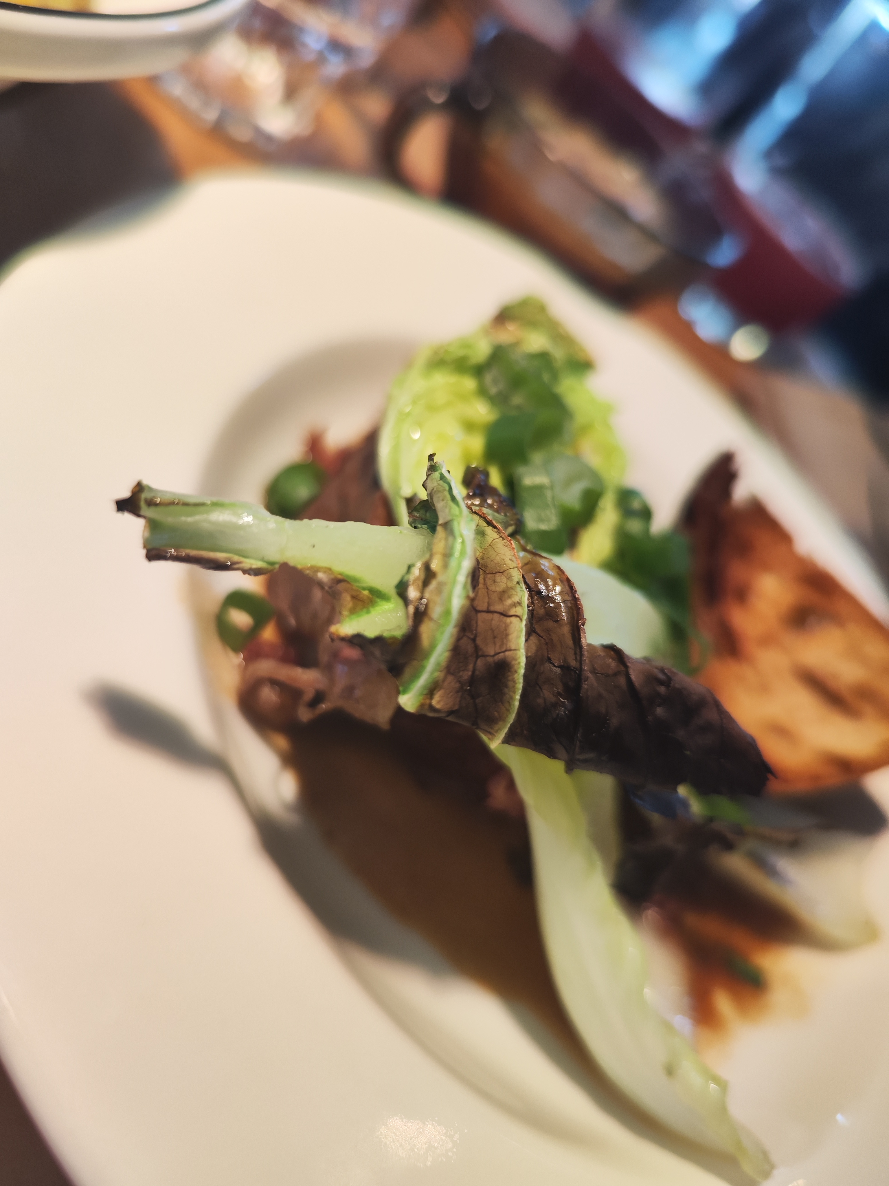 Comme d'habitude super bon. Service attentionné par monsieur bleu blond. Cuisine top, pak choï betterave jaune super, onion rings, frites maroilles, ribs, patate douce, tout très top.