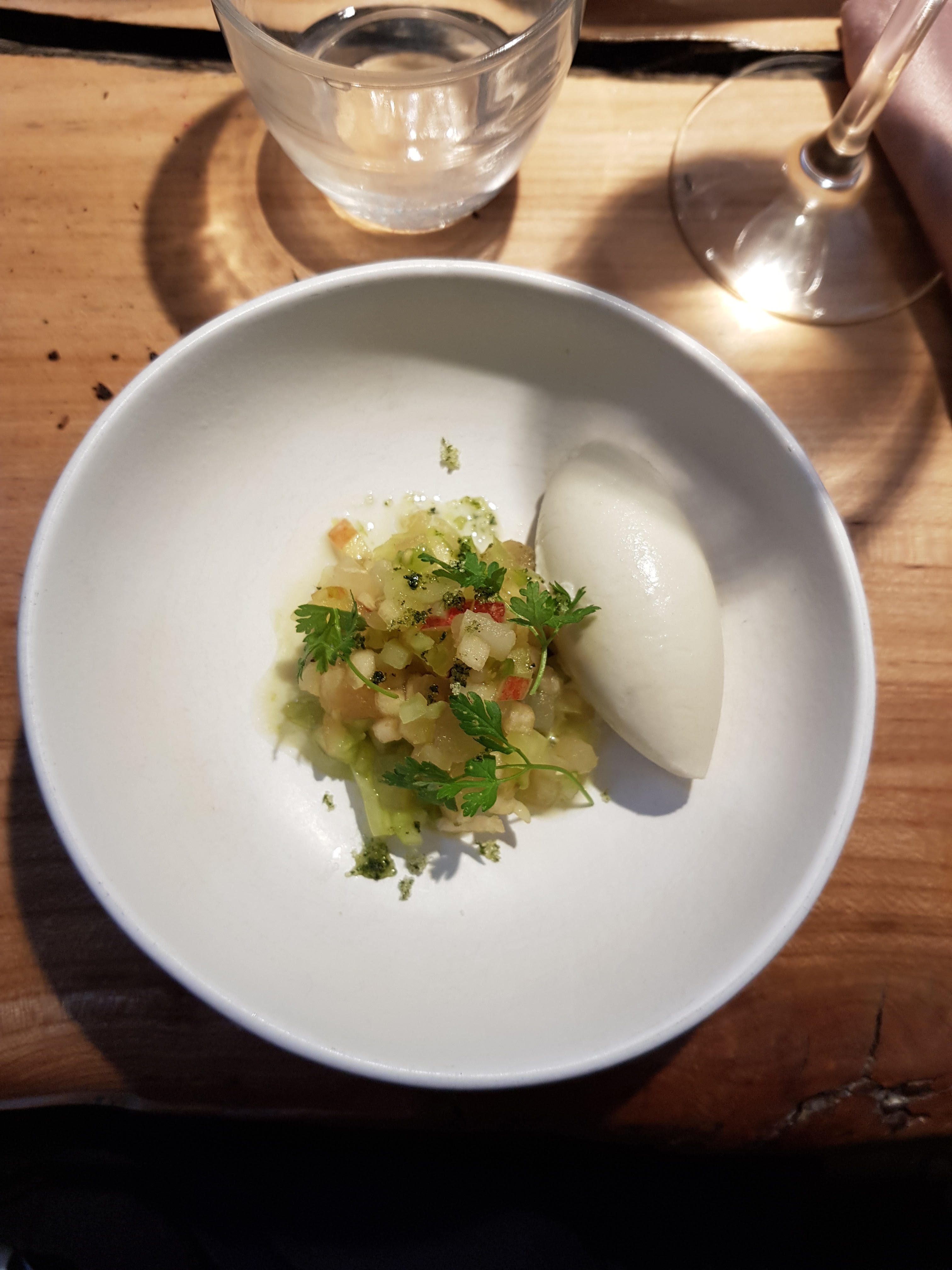 Très bon moment de dégustation au Bloemeke. On se laisse guider par Florent Ladeyn qui nous concocte entrée, plat, dessert selon ses envies mais surtout en utilisant des produits locaux du moment: un régal pour les papilles !