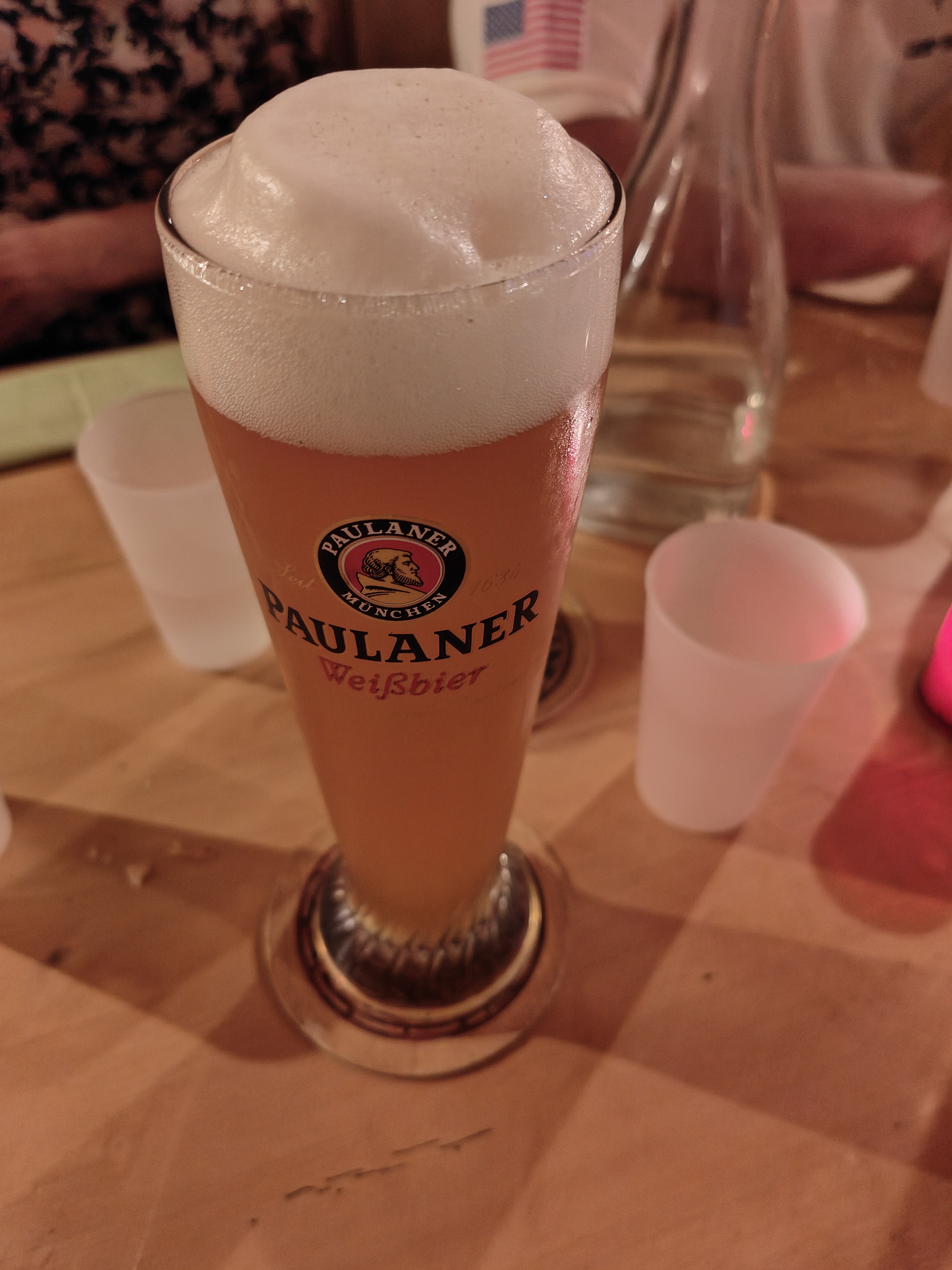 Super ambiance et hôte multilingue très sympathique ! Beaux intérieurs de maisons en rondins de pin ! Bonne gamme de bières allemandes, de boissons et de nourriture. Y compris les options végétariennes.