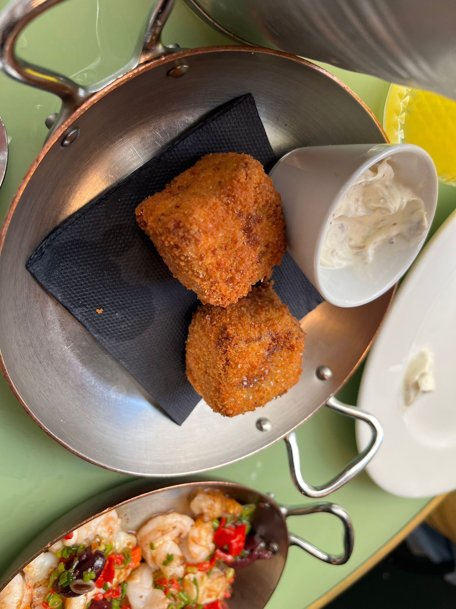 Nous ne nous sommes arrêtés que pour une petite bouchée et nous avons pris 3 petites entrées à partager. elles étaient toutes très bonnes. les chipirons se lèchent les doigts. Le service est également parfait. Le restaurant dégage une ambiance très chaleureuse et chic.