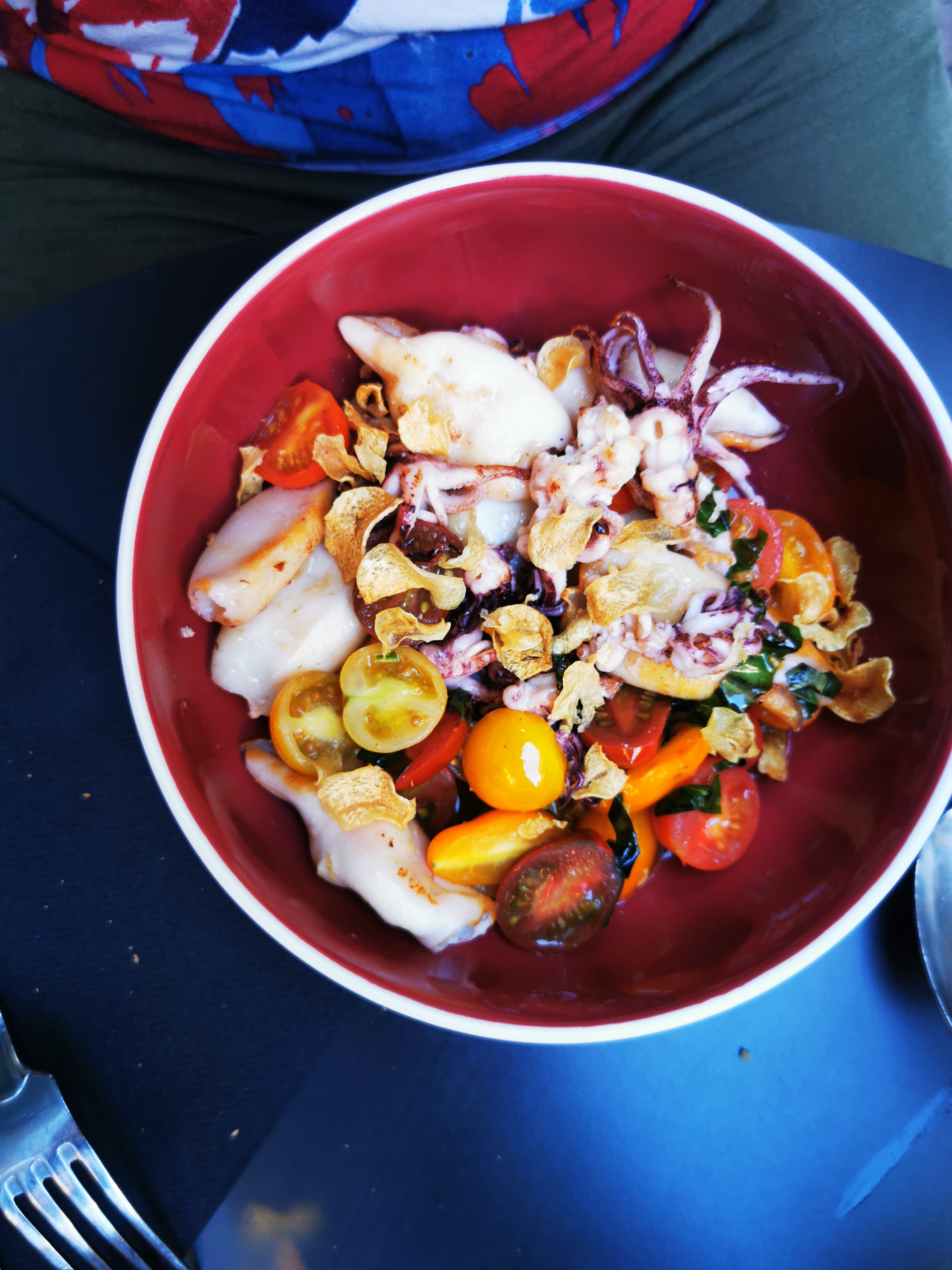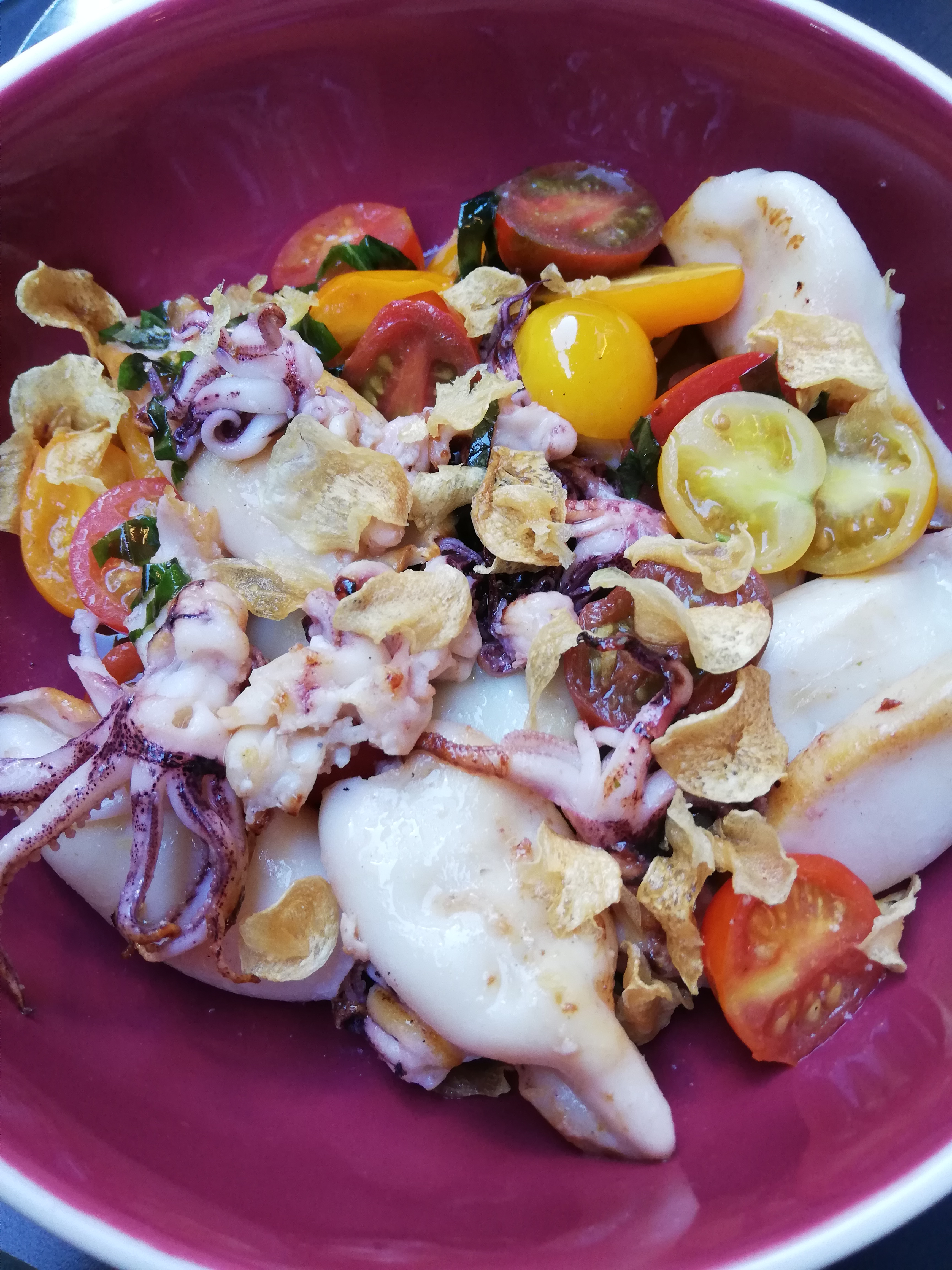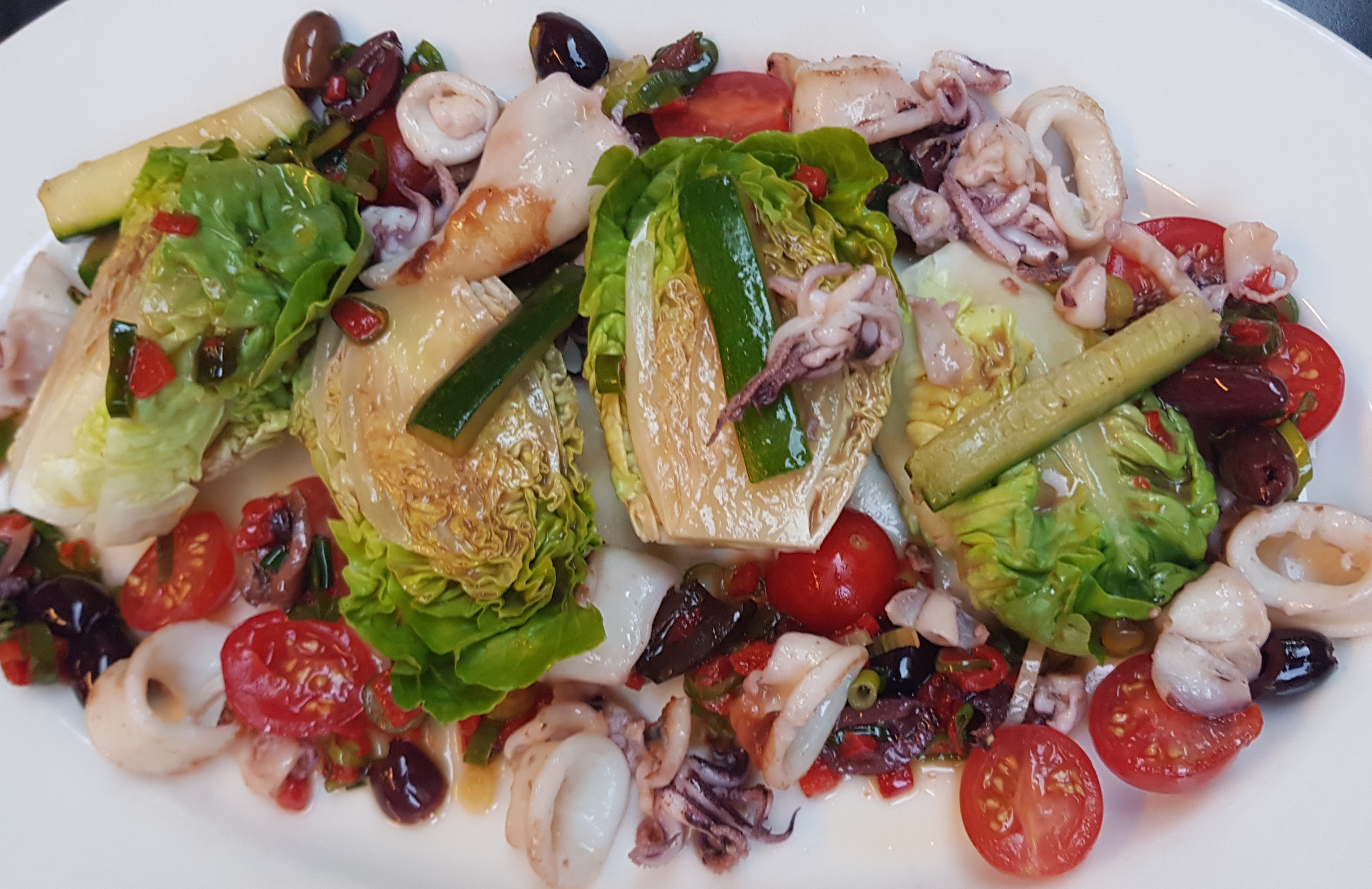 Après plusieurs hésitations, ce fut une agréable surprise. Les coeurs de canard ail et persil sont excellents, cuit à la perfection. Le pain est frais. La salade végétarienne est nickel juste ce qu'il faut, très souvent dans d'autres restaurant on a droit à une quantité de légumes astronomique. Les chipirons à la plancha très très bien accompagné de petits tomates cerises, cuisson impeccable. Puis une petite assiette de fromages pour finir très honnête.
