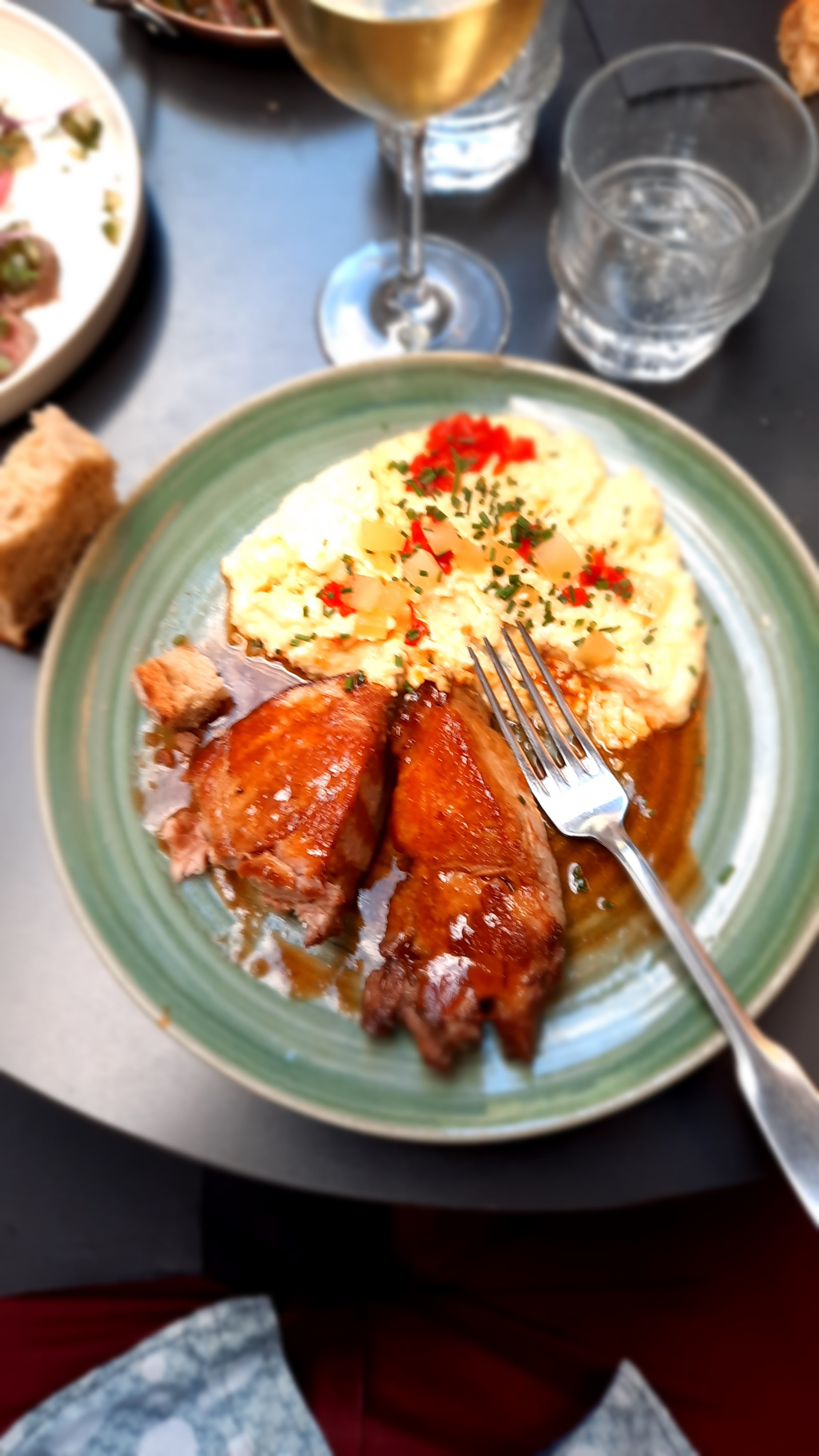 Arrivés là par hasard, peu de temps avant la fermeture de la cuisine. La commande a été prise rapidement, et préparée tout aussi vite. Une entrée apportée en plus par erreur n'a pas été facturée. Le personnel était sympathique et les plats goûteux, Canard cuit à la perfection, comme demandé. Croquetas de porc et asperges au lard délicieux Je recommande