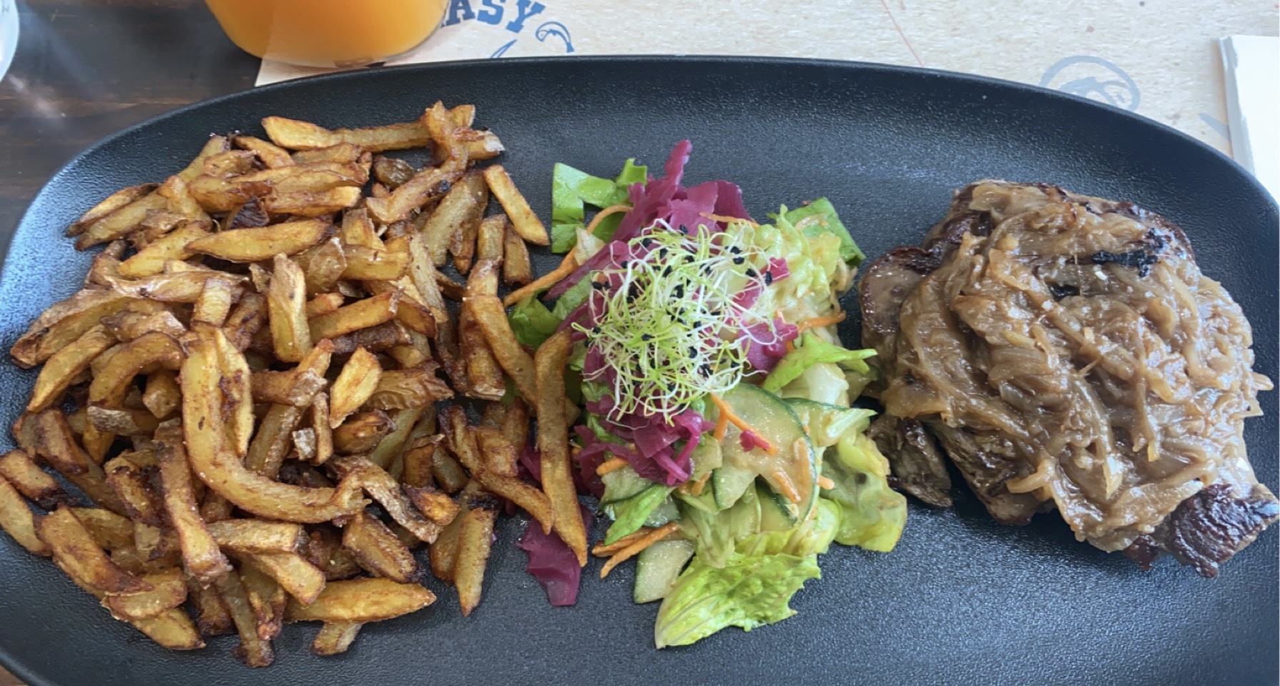 En tout premier il y a l’accueil, parfait, gentillesse, sourire tout est là Puis le repas, pour moi tartare de saumon 🍣, un délice, et les frites maison succulentes. Et enfin le dessert , brioche perdue, pas pour tout le monde Bref très bonne adresse