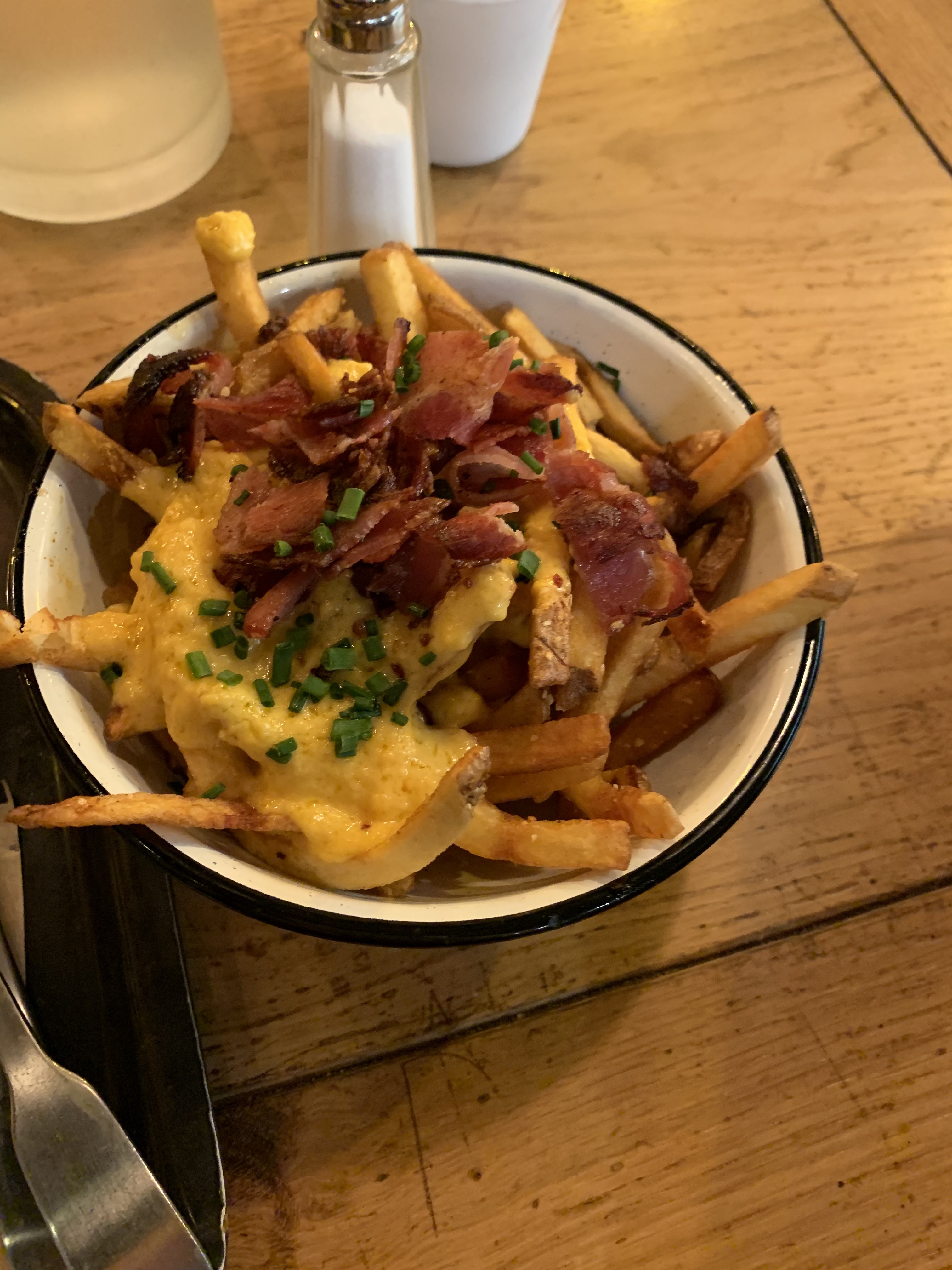 Bon hamburger avec du bon fromage. Frites trop grasses et molles. La bière est bonne mais rien de spécial. Personnel gentil et efficace Dans l’ensemble, trop cher et surfait.