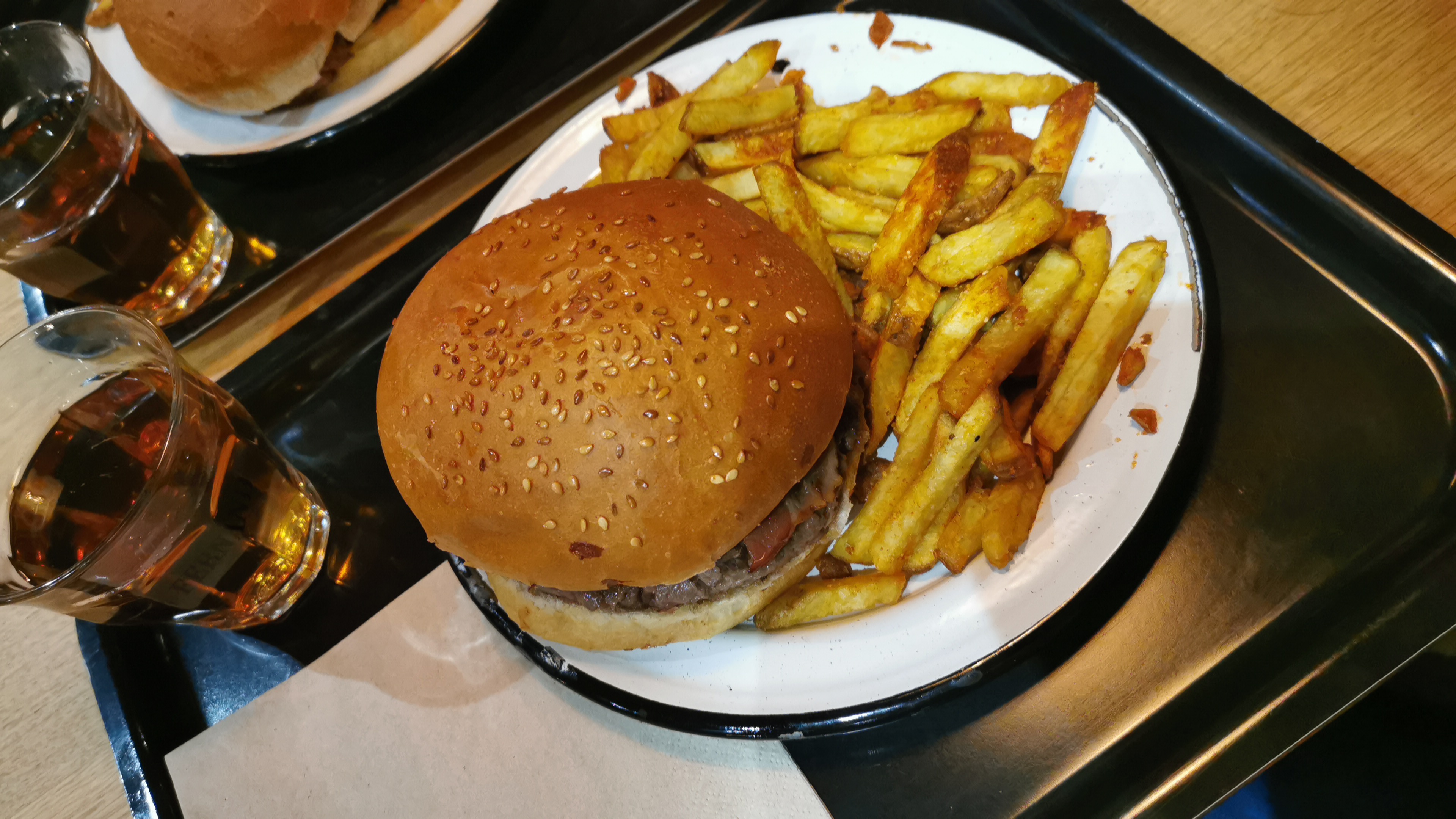 D'habitude je regarde les avis, chose que je n'ai pas fait pour ce lieu...je regrette un peu. Les burgers sont correctes, manque tout de même un peu de salade, cependant, les frites....je n'ai jamais mangé des frites de la sorte. La taille ne ressemble en aucun cas à des frites mais plus à des pommes de terre sautées. Au vu de la couleur de celles-ci, l'huile ne doit pas être changée régulièrement. Ce repas m'a valu de fortes douleurs à l'estomac toute l'après midi. Cependant, l'accueil est 👌