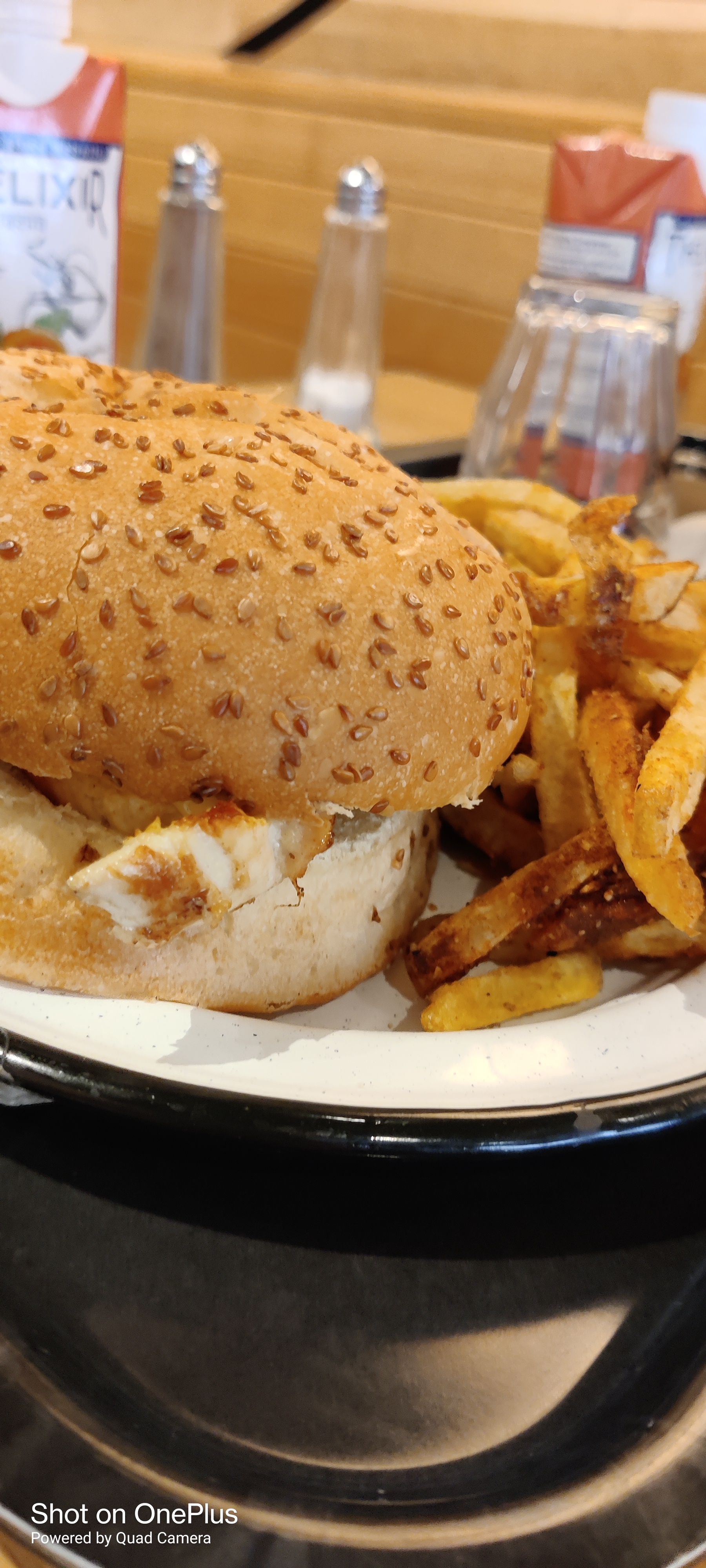 On va faire simple : l'un des meilleurs burgers que j'ai manger de ma vie ! En général je mange plutôt rapidement, mais LÀ ! J'ai pris littéralement 30 min juste pour manger mon burger, pourquoi? Pour appréciez chaque bouchée ! Par contre seul point un poil gênant, les frites, je les ai fini car très bonne qualité et quantité comparer à d'autre restaurant /fast food. Mais pour ma part je les aïs trouver un chouillat trop dur, mais mise à part, un régale absolue, si jamais cela vous tente voici ce que j'ai pris : burger poulet mariné, sauce BBQ, fourme dambert, oignon mariné et sauce blanche ciboulette pour liée le tout. Et c'est vraiment un burger que je reprendrais souvent ça vous pouvez me croire!