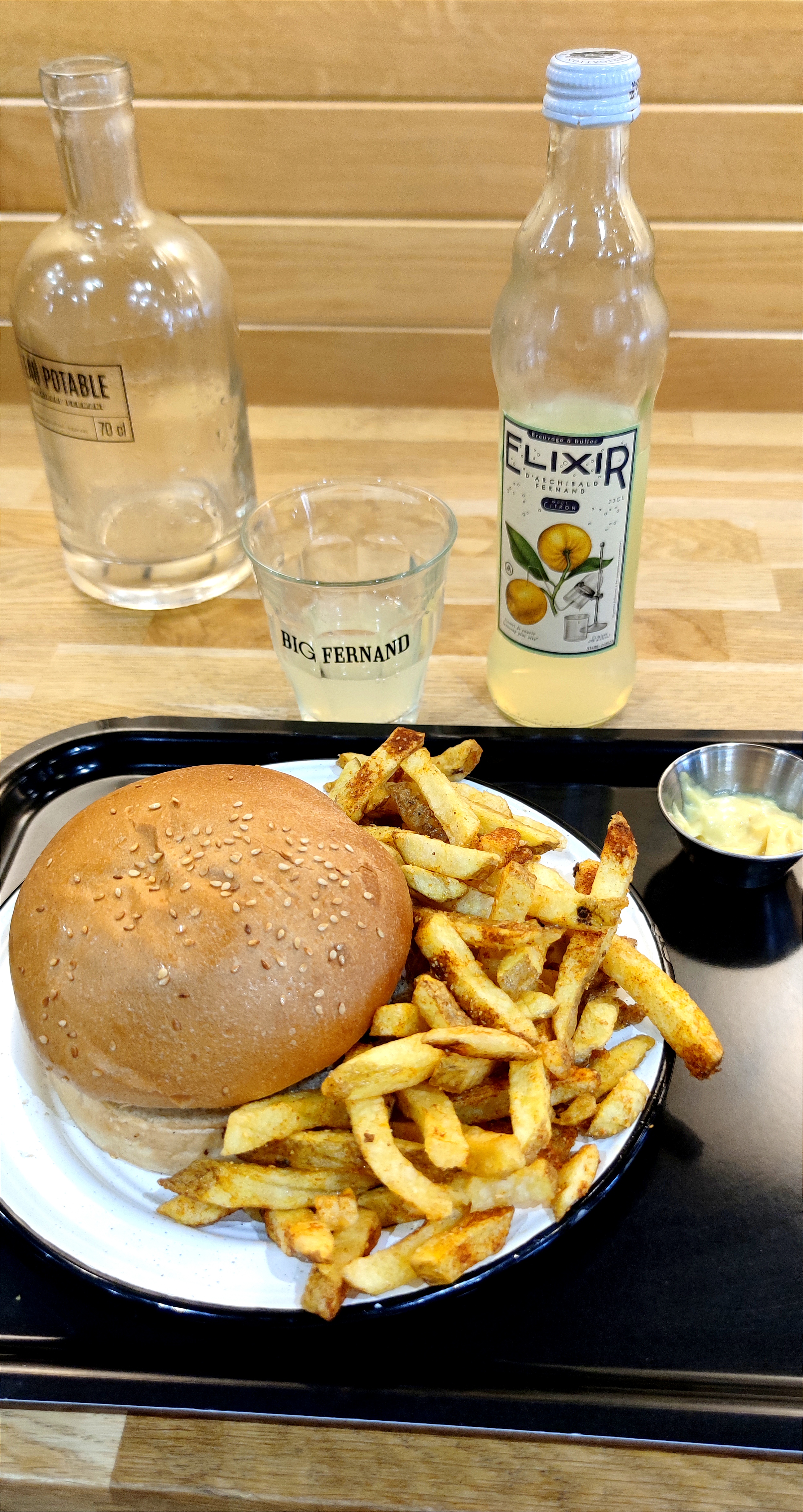 Nous avons très bien manger au Big Fernand. Les burgers sont vraiment délicieux, tout comme les frites automatisées qui étaient tout autant excellentes. La majorité des produits sont faits maisons et de très bonne qualité. De plus, le personnel est vraiment très accueillant et agréable. Ils n'ont pas hésité à nous proposé une portion de frites en plus gratuitement à la fin de service au lieu de la jeter. Le seul bémol serait peut être le prix (15€ le menu hamburger+frites+boisson) mais étant donné la qualité des produits, cela vaut son prix. Je recommande sans hésitations.