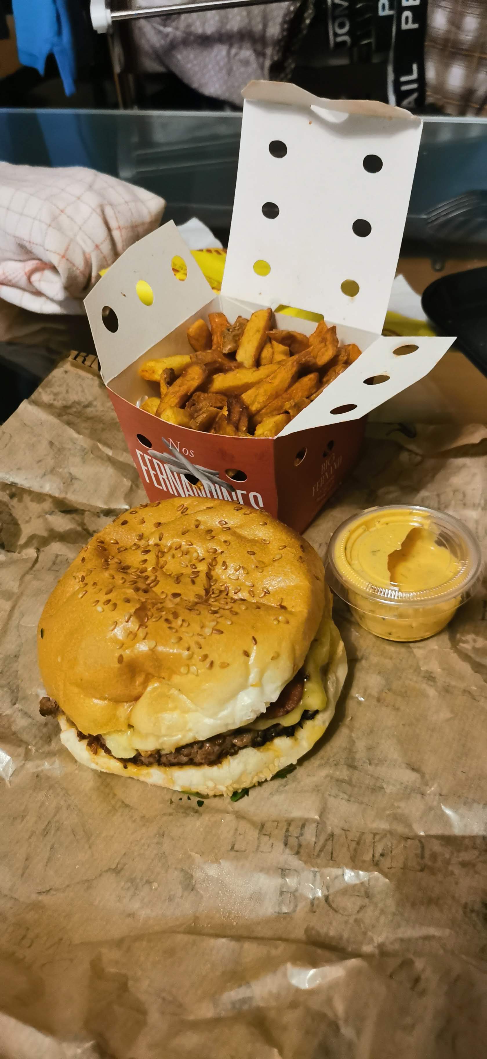Première fois que je mange un burger Big Fernand 😍 un vrai régal. Je n'ai pas mangé de burger avec une explosion de goût en bouche. La viande, le fromage, la sauce je dis wouah !!!! 😋😋😋😋J'ai pris en livraison vu le contexte mais dès qu'on peut s'y rendre sur place j'y serais c'est sûr !!! Je recommande largement, vous pouvez y aller les yeux fermés ☺️