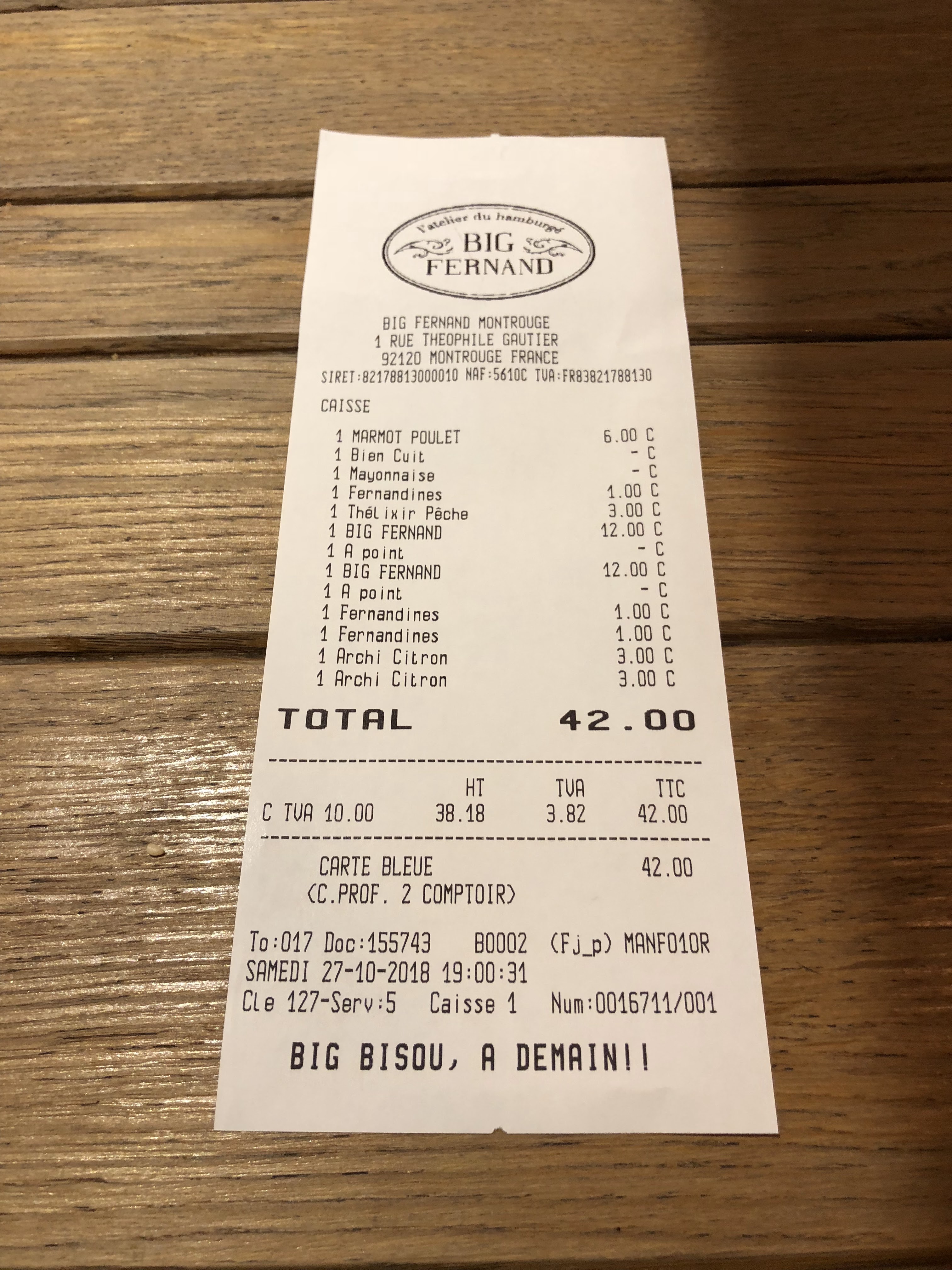Comme d'habitude, c'est toujours un plaisir de s'arrêter chez Big Fernand ! L'équipe est très bienveillante, et avec une touche d'humour fidèle a la maison !) Bonne appétit à vous