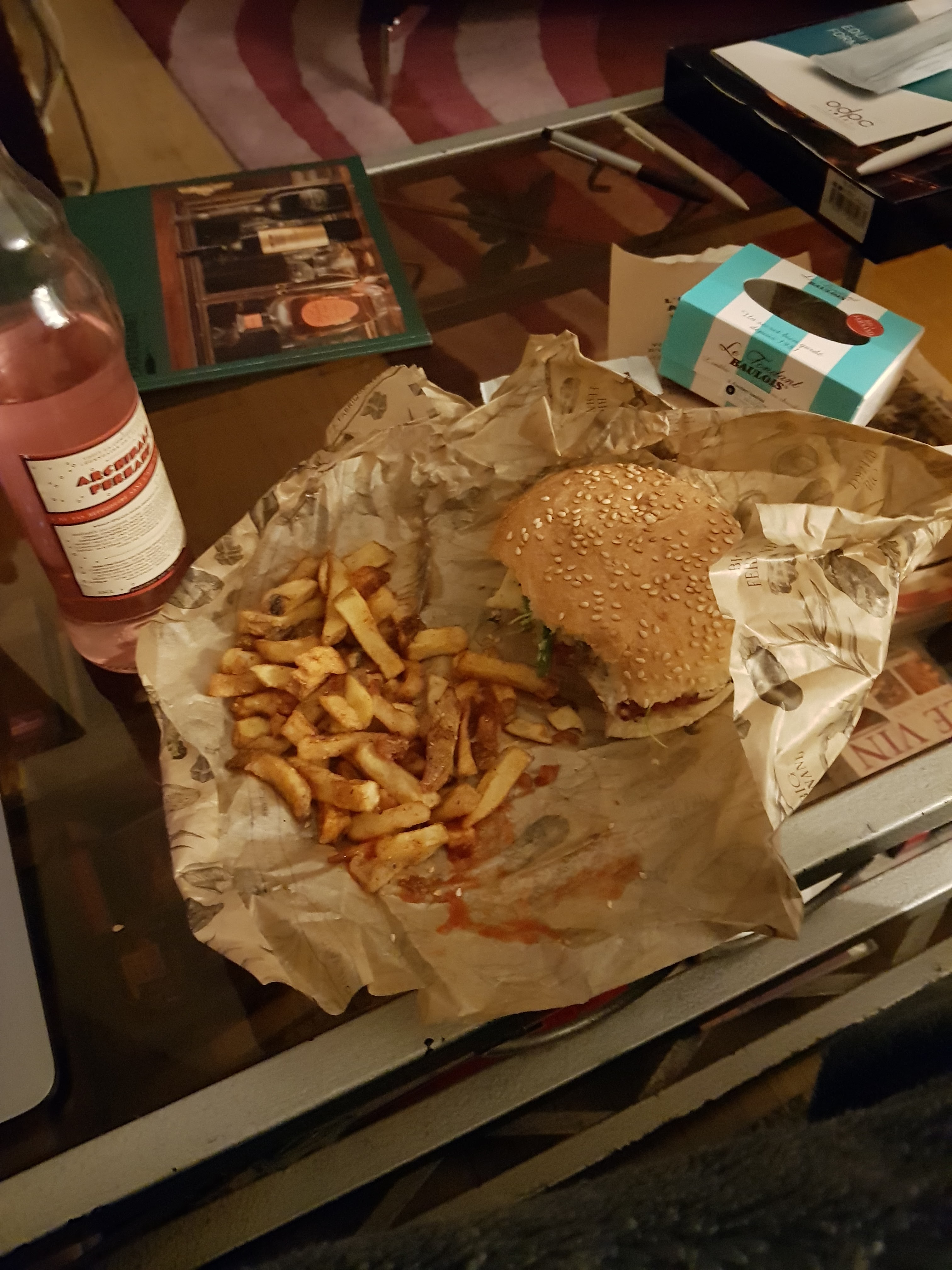 J'ai demandé un burger végétarien (le Lucien) et des frites pour 17€ (plutôt cher) à emporter. En arrivant chez moi, je me rends compte qu'on a oublié de me servir les frites... À ce moment là, j'ai sombré dans une grande dépression et ai été empris de culpabilité pour m'être démoli un gros burger tout seul chez moi à 15h30. En conclusion, bien trop cher par rapport à la qualité du service.
