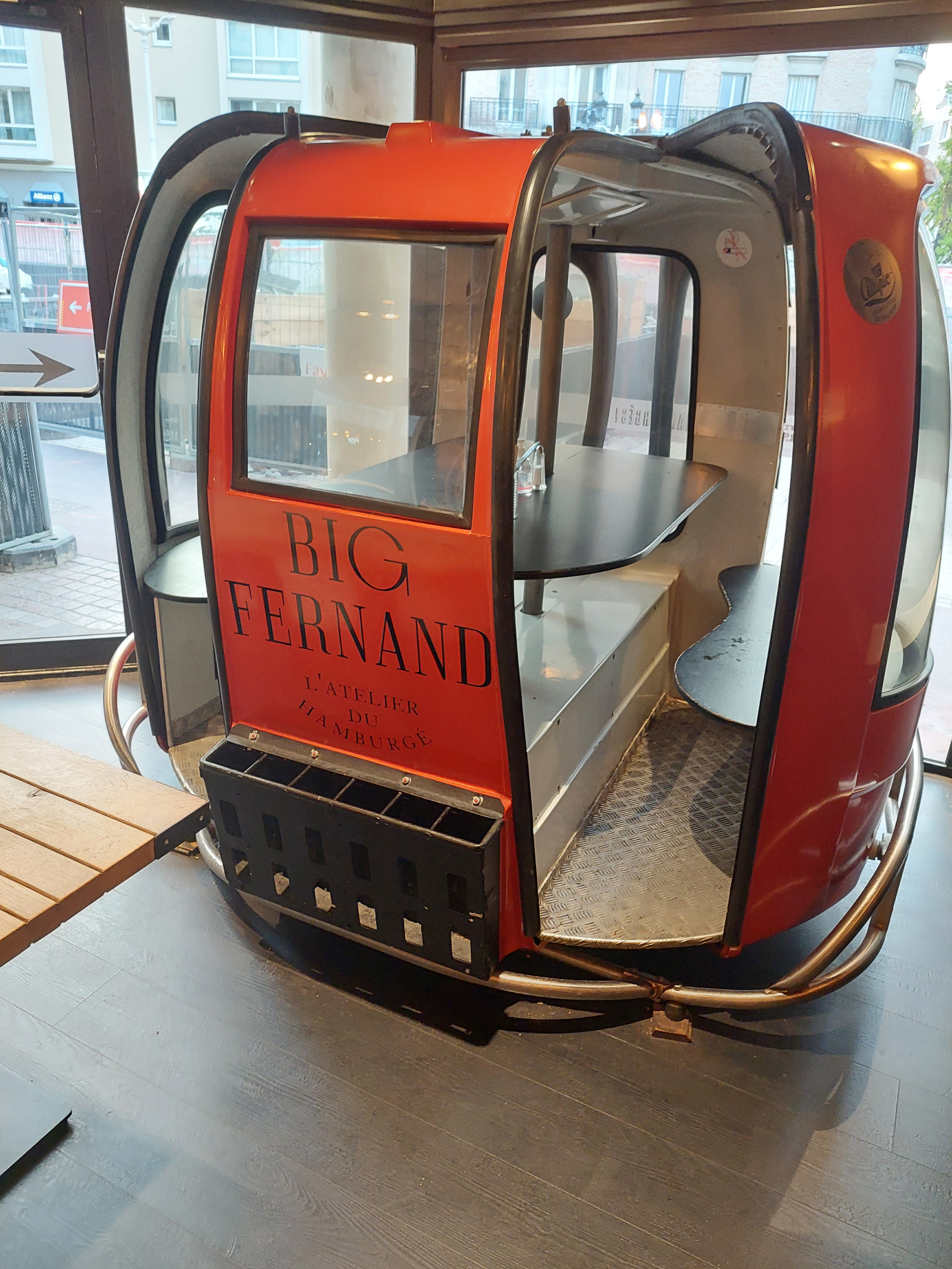 Très bons 'hamburgés' faits minute. Et les serveurs vous accueillent avec le sourire et sont super sympa (hello Pauline). On est content de revenir :) Habitant à côté, je prends à emporter mais pour ceux qui mangent sur place, y'a une cabine rouge de téléphérique, ambiance chalet de montagne :)