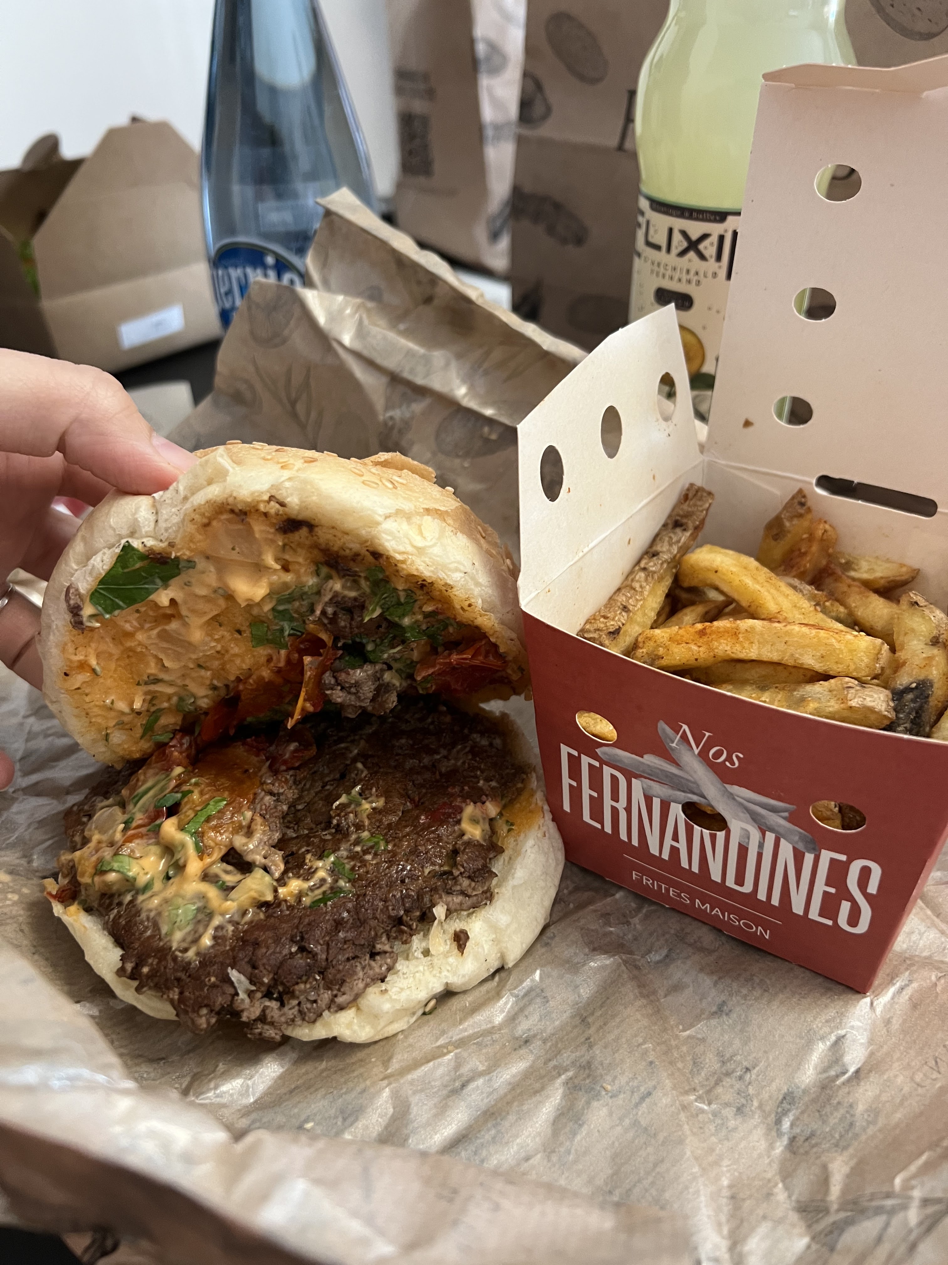 Attention ce big Fernand est de qualité médiocre comparé au autre Big Fernand : pain sec et non toasté, viande trop cuite et pas du tout aussi goûteuse que les autres Big Fernand ou j'ai mangé, assemblage du burger radin. Un burger médiocre au prix d'un burger gourmet. Commande passé par Uber eat peut être réduisent ils la qualité a cause de ça ?
