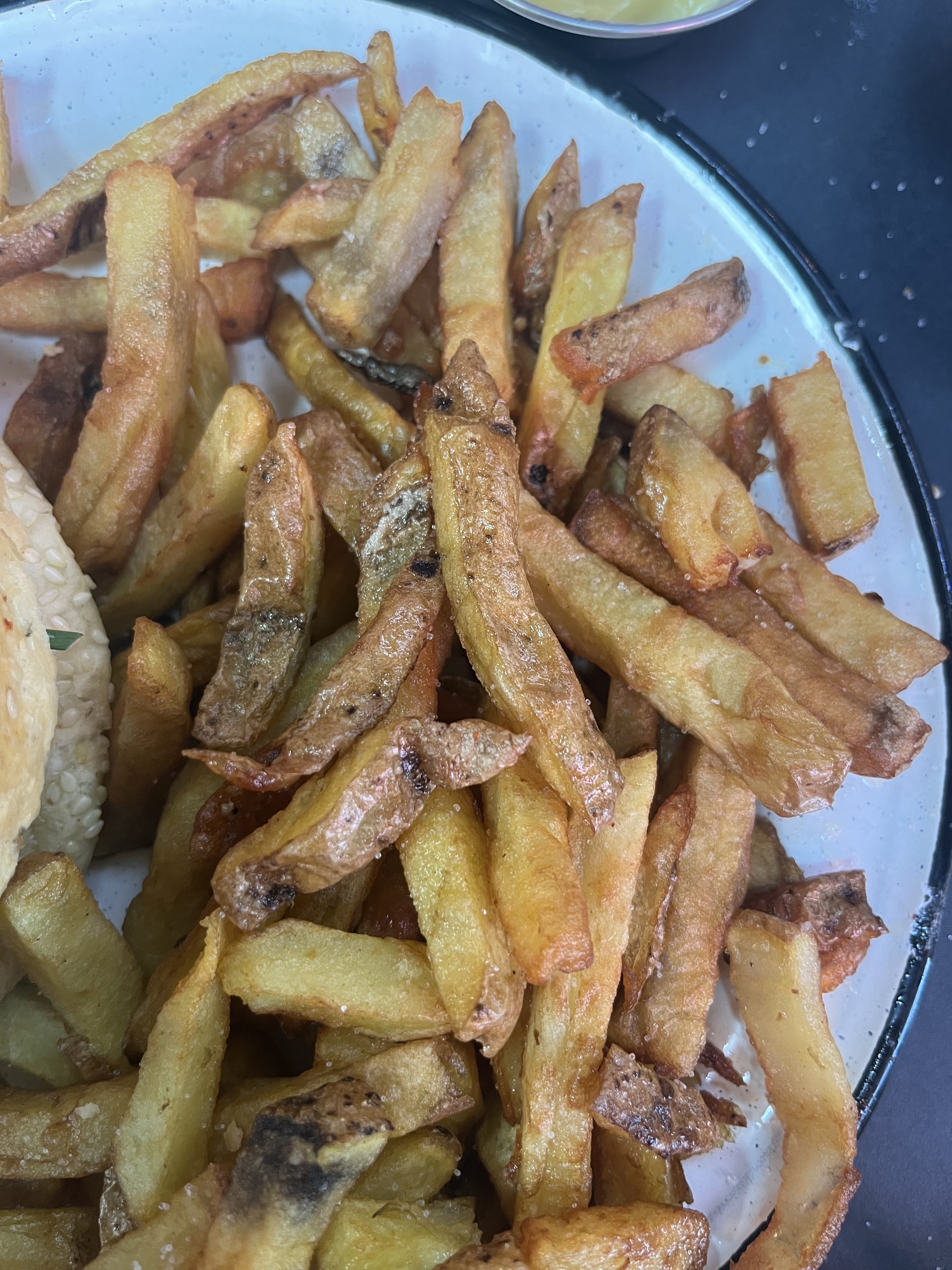 Je trouve que la sauce bbq du burger est un peu trop sucree. Les frites sont petites, on pourrait parfois meme les qualifier de miettes... Je retire en plus 1 etoile car mettre des photos sur Google map de burger fait expressement pour la publicite, c'est un peu du fake. Mon burger n'est pas aussi beau que celui de vos photos, c'est normal, il vient directement de votre cuisine.