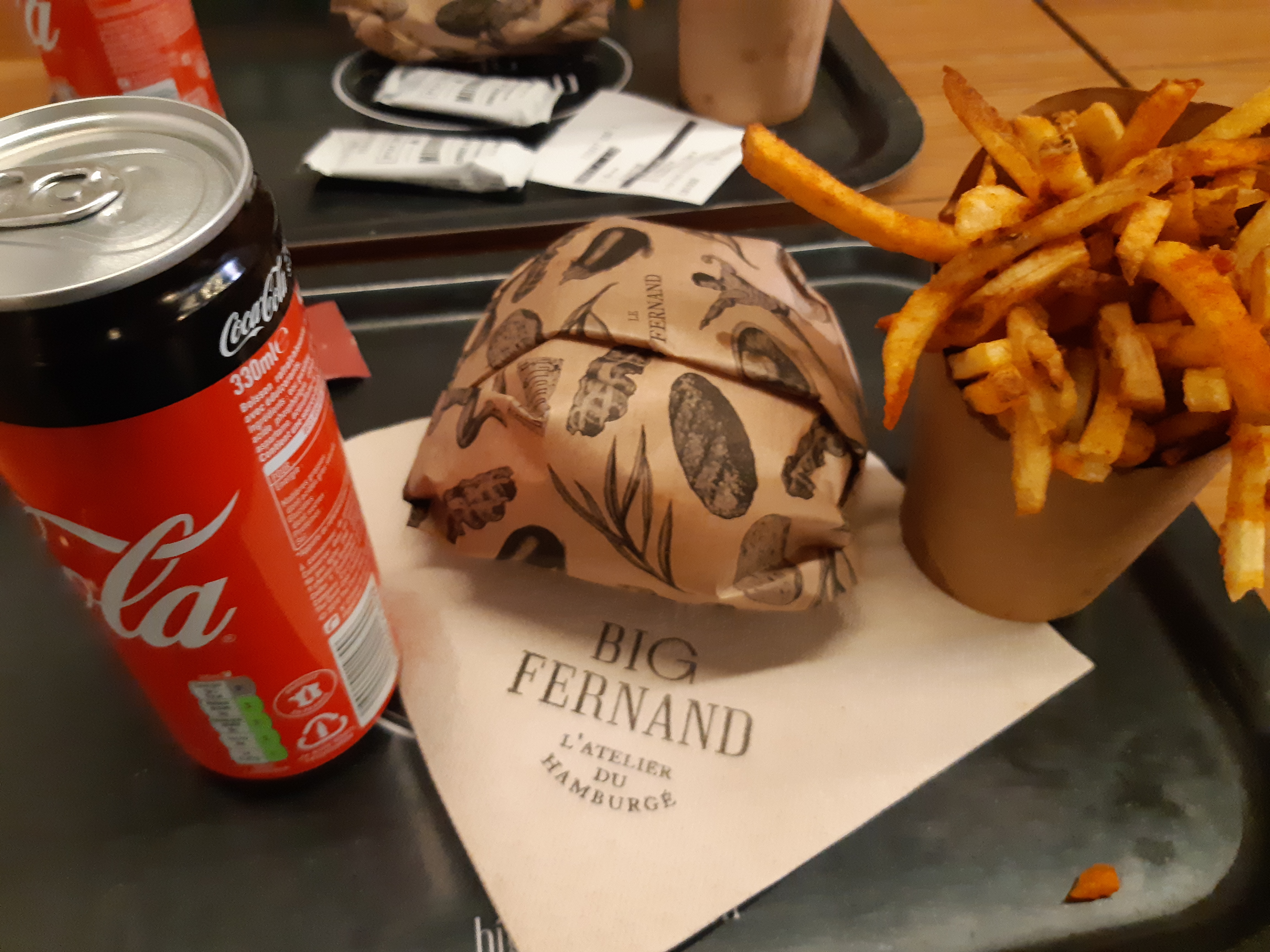 Big Fernand, tout ce qu'il y a de plus basic dans cette chaine ou les burgers sont les mêmes partout et sans grande qualité, les frites passables et le prix élevé. En revanche le service est déplorable, le caissier qui prend votre commande ne vous regarde même pas dans les yeux et fait 10 choses en même temps, à se demander s'il vous écoute, le sourire c'est en supplément. Le service en salle n'était pas mieux, un serveur qui ne sait pas garder des plateaux en main et qui les fait tomber, qu'ils viennent de sortir de derrière les fourneaux ou au moment du débarassage. Service médiocre, à fuir.