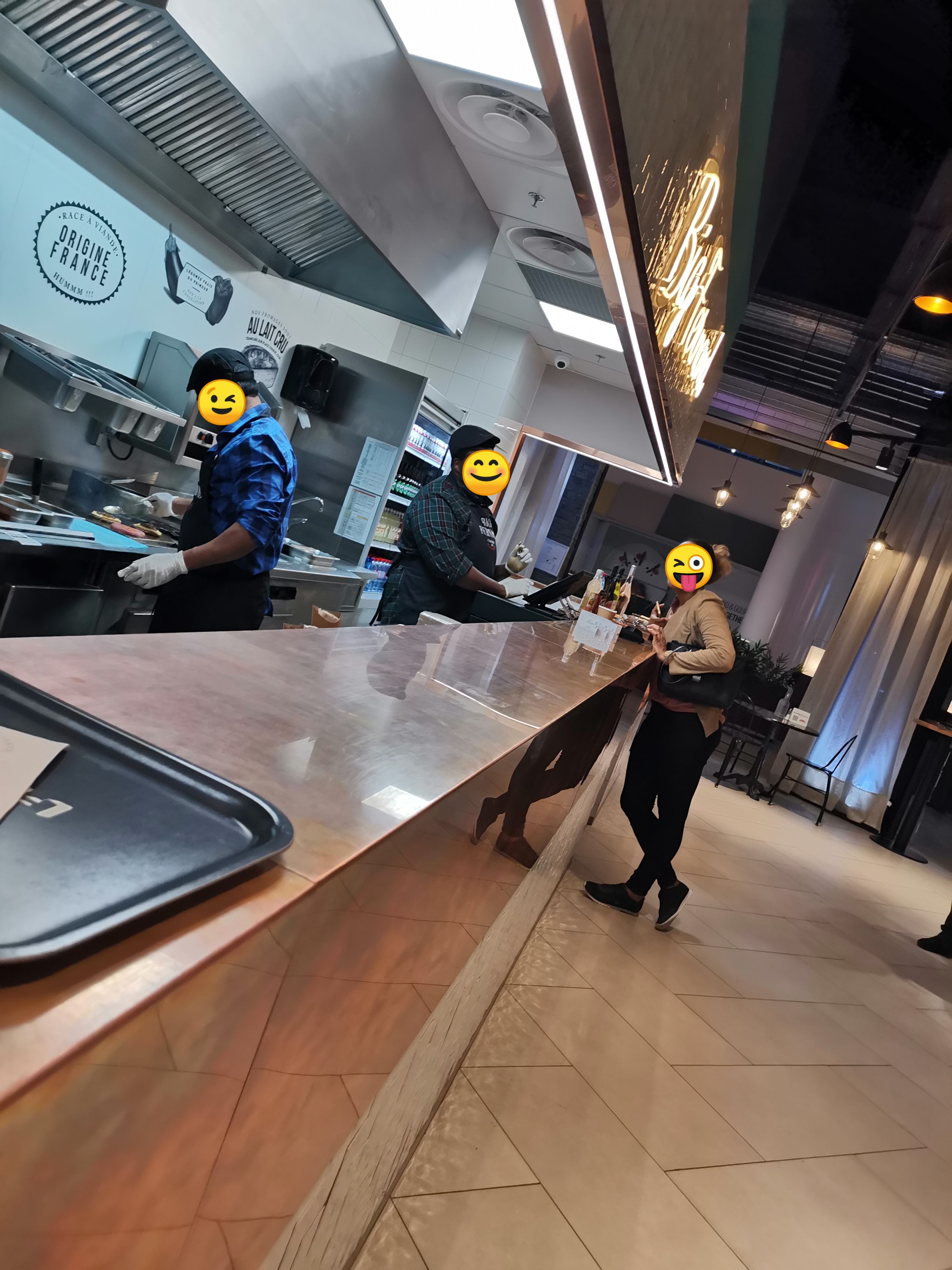 Nourriture plutôt bonne ( hamburger et frites pas mal) mais que je trouve ça cher comme rapport qualité prix. Ensuite commandé un coca zéro et un cookie chocolat au lait et j'ai eu un coca normal et un cookie caramel beurre salé. Bref assez déçu au final