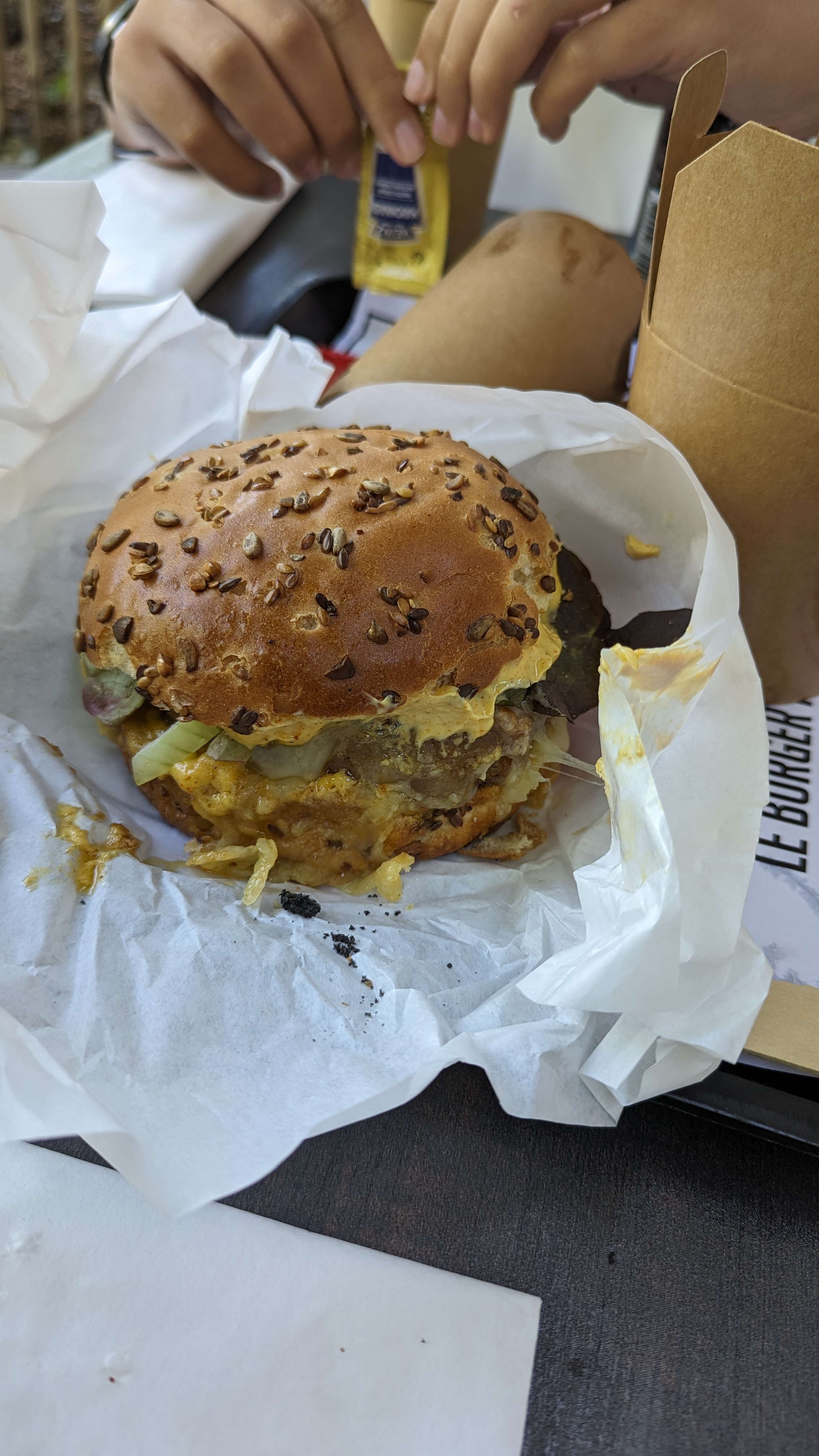 Ah ouais 🤪, ça c'est du Burger ! Et franchement je m'attendais à plus cher. Quand tu tiens le Burger dans tes mains, rien qu'au poids tu vois qu'ils sont généreux. Le pain 🤩 parfait qui finit de te convaincre qu'il faut revenir pour goûter les autres.