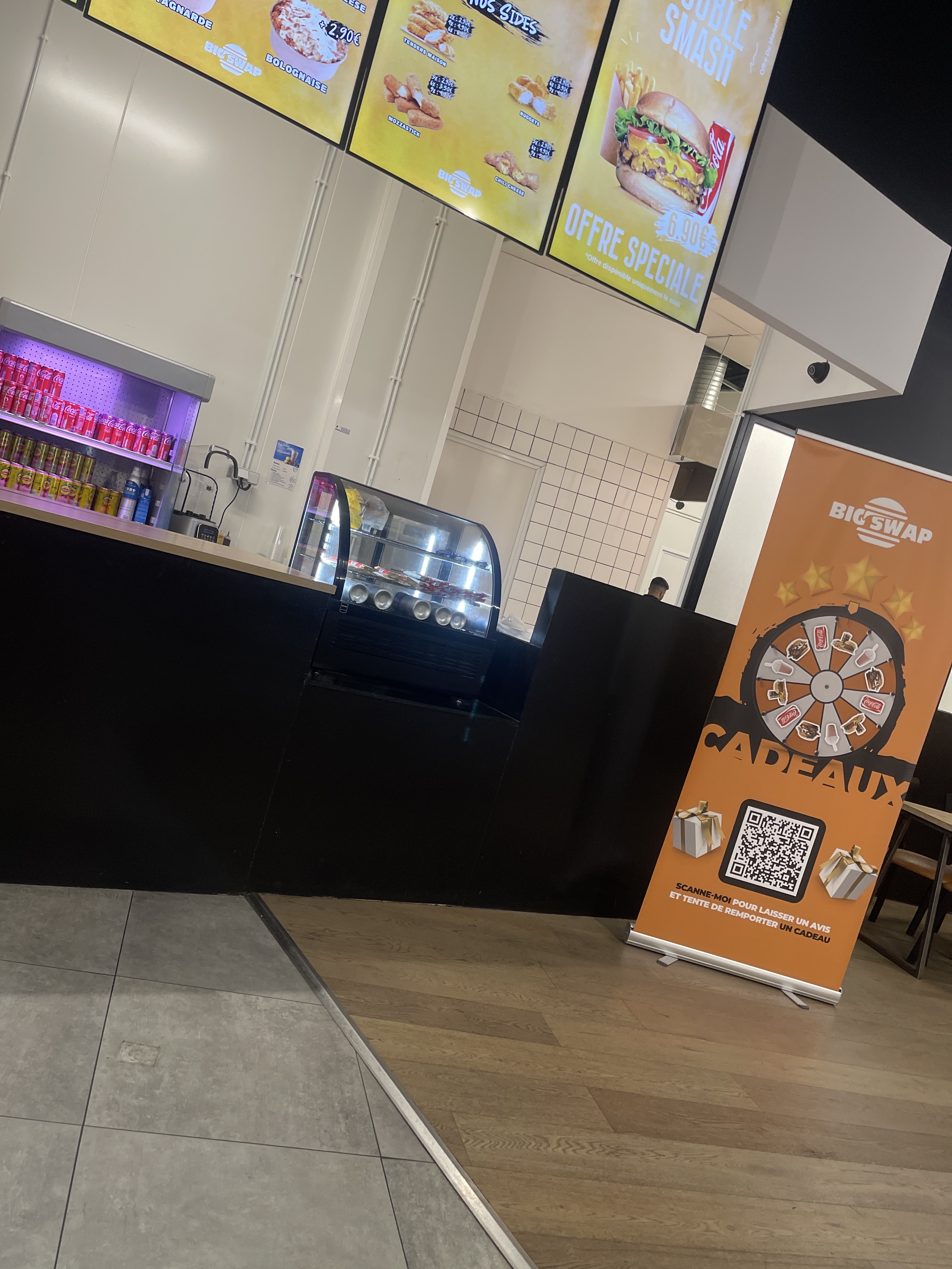 C’est un premier repas passer chez vous, nous sommes donc plutôt mitigé sur le big swap … Un burger très bon et bien garni avec un tarif raisonnable, mais ce n’est pas le cas des frites bolognaise qui ne sont pas mauvaises loin de là mais un tarif élevé pour le peu de portion sachant que ce n’est pas une bolognaise maison Un accueil qui ne peut être réellement noté car nous avons vue une fois la personne cependant très polie et un service rapide Nous reviendrons, pourquoi pas en espérant avoir une petite amélioration