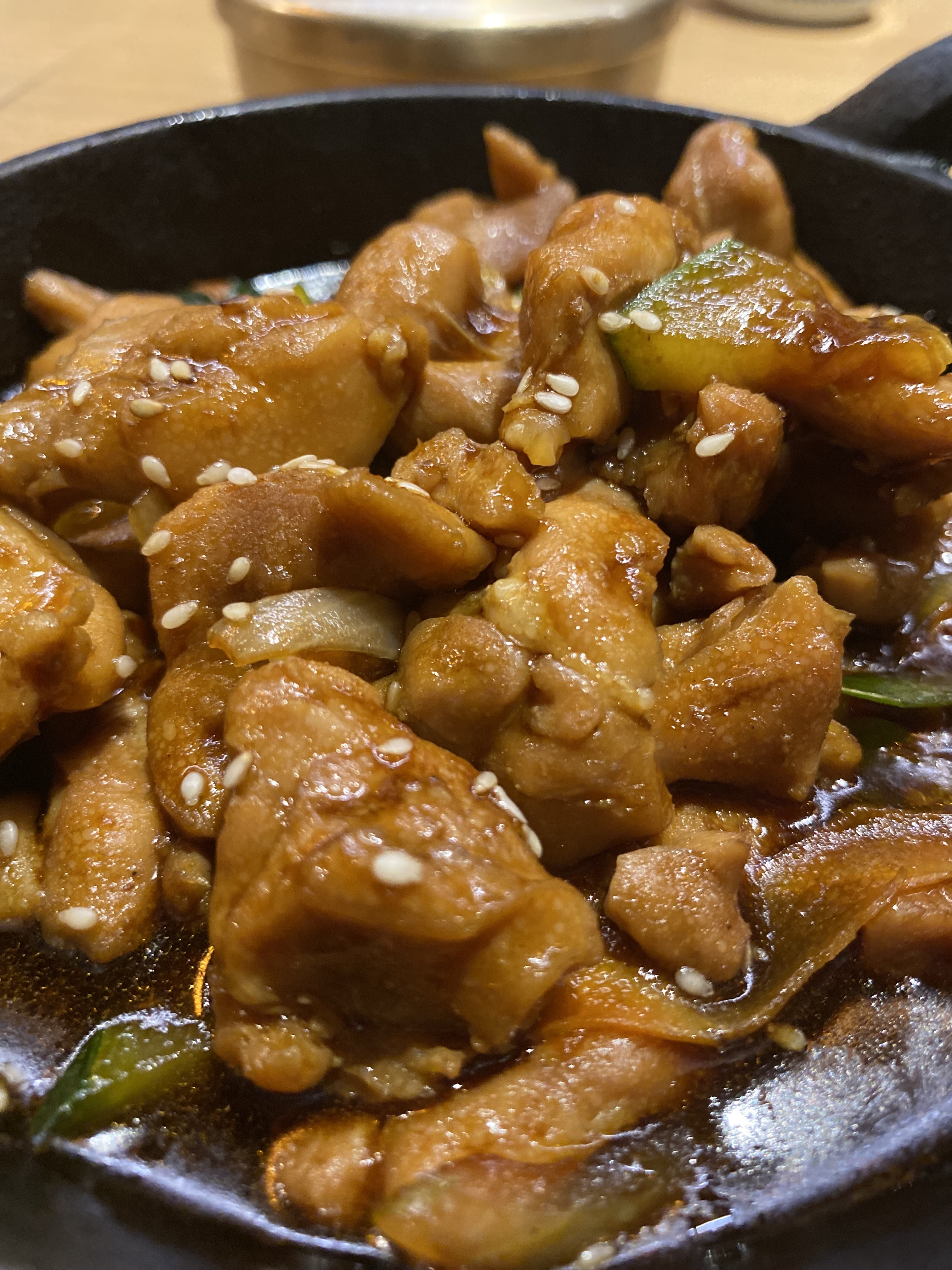 Bon repas dans ce restaurant coréen. J’ai pris le porc sauce soja, très goûteux. Bémol : le service est un peu trop présent et l’odeur des grillades dans le resto fait que vous sortez en mode baraque à frites…