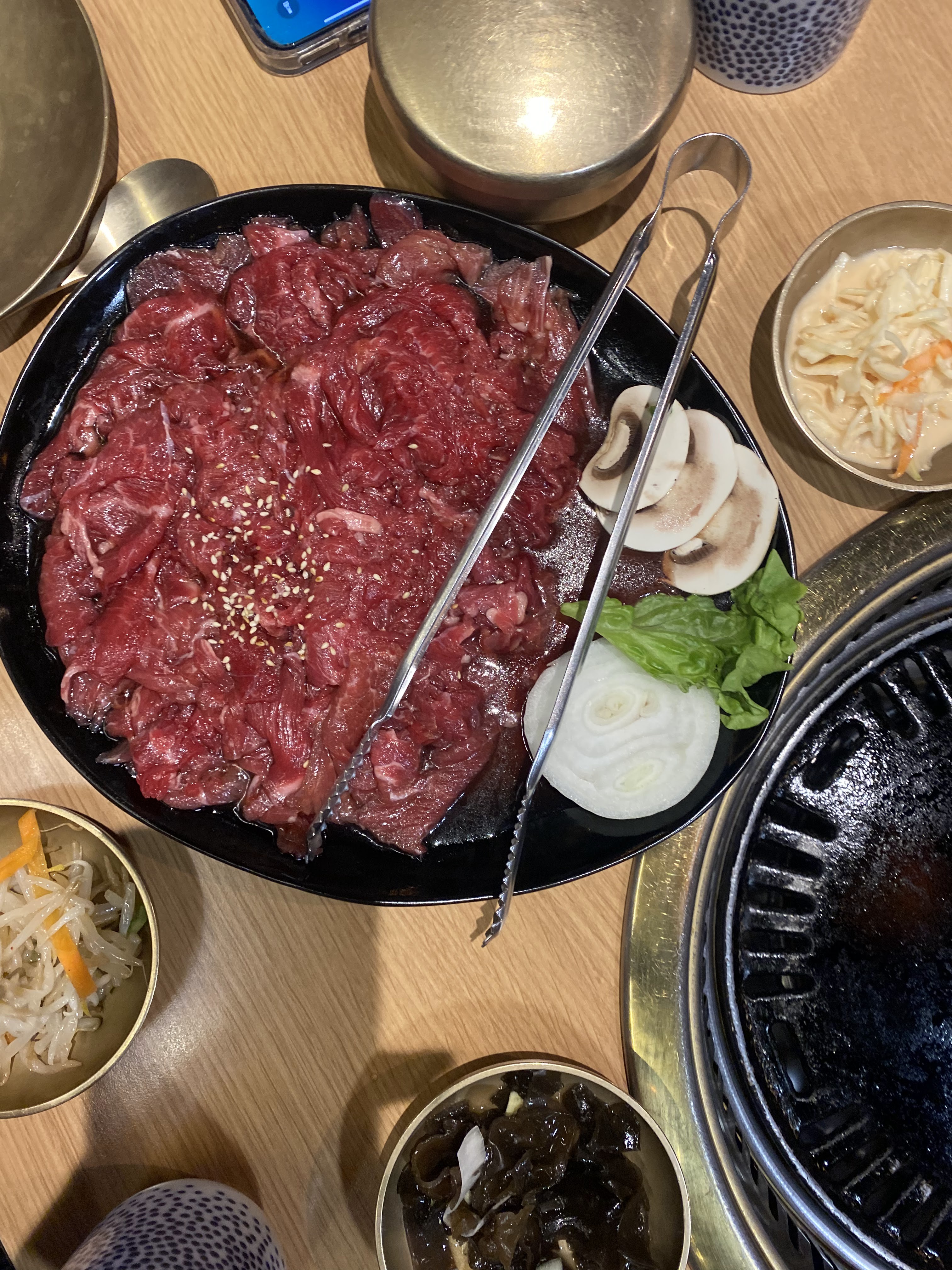 Nous avons partagé un délicieux bbq coréen avec entrecôte de boeuf mariné (excellent) et canard. Toujours très convivial de partager et faire ses grillades soi même :) Seul petit bémol les accompagnements sont en portions un peu maigres.