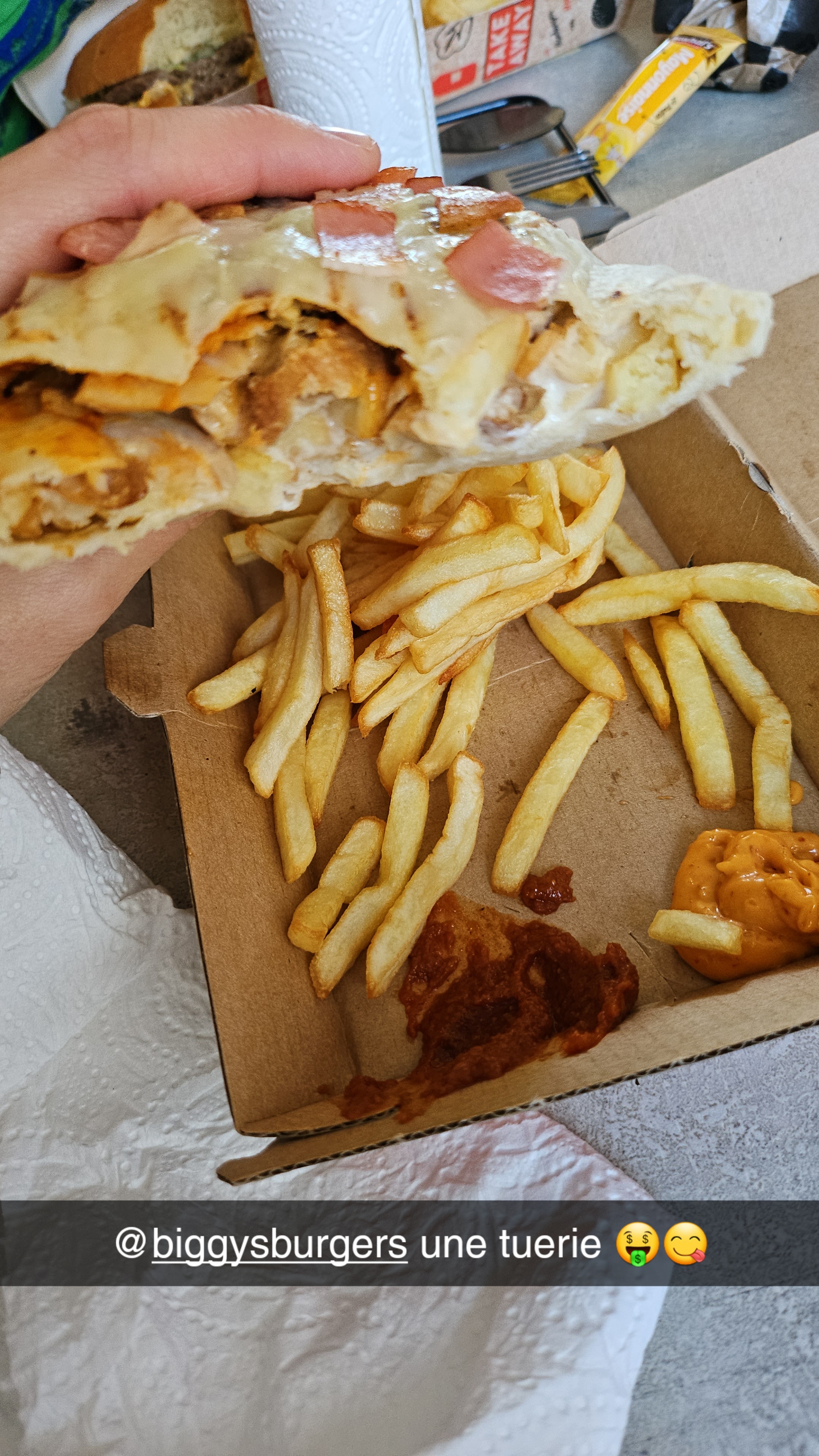Oh top 👍🏼👍🏼J’ai commandé 2 fois chez eux . Produit frais et encore chaud quand j’ai reçu ma commande . Personnel très sympathique et grave à l’écoute. Un pur délice l’american biggy’s . Je recommande les yeux fermés.