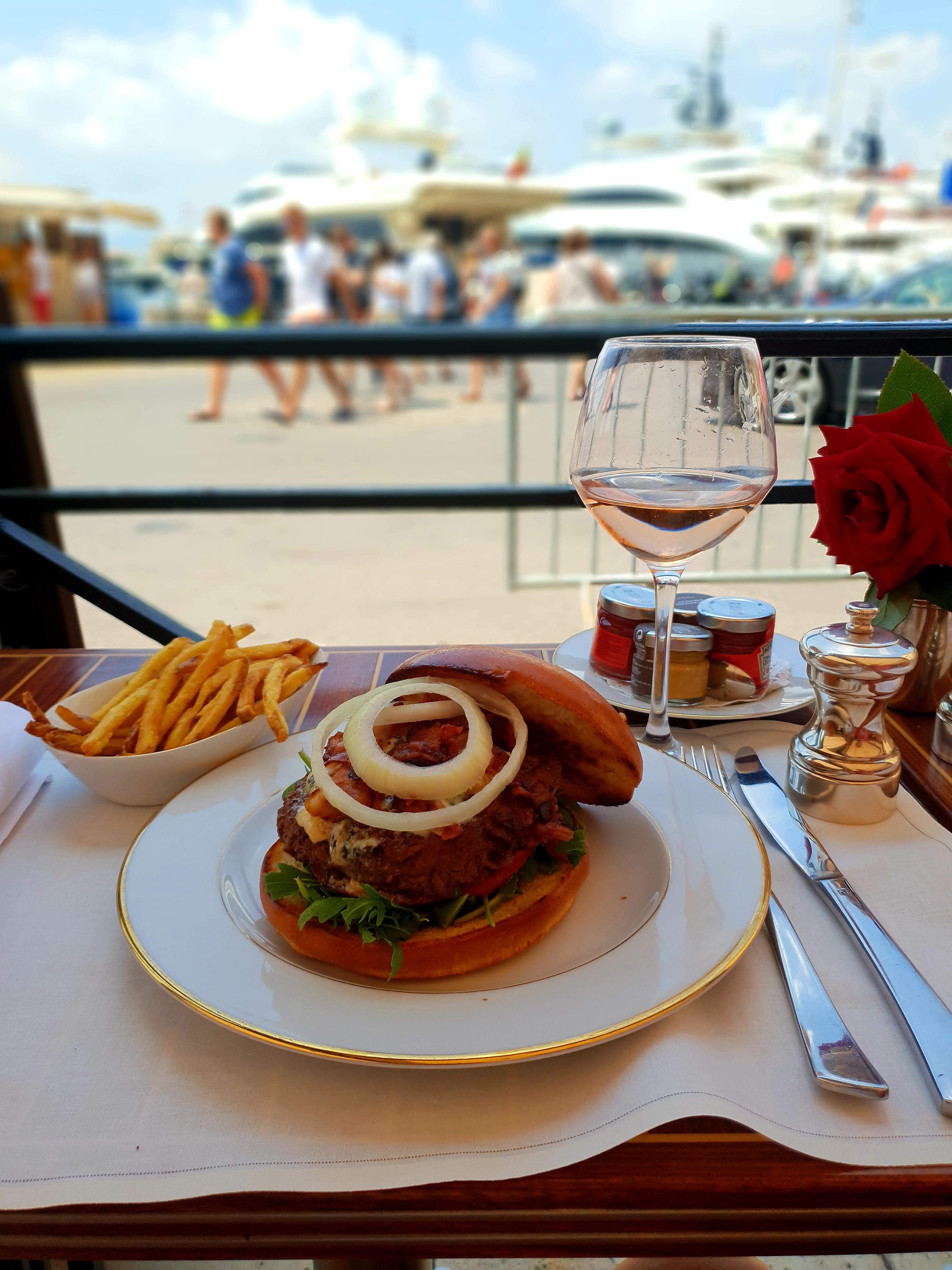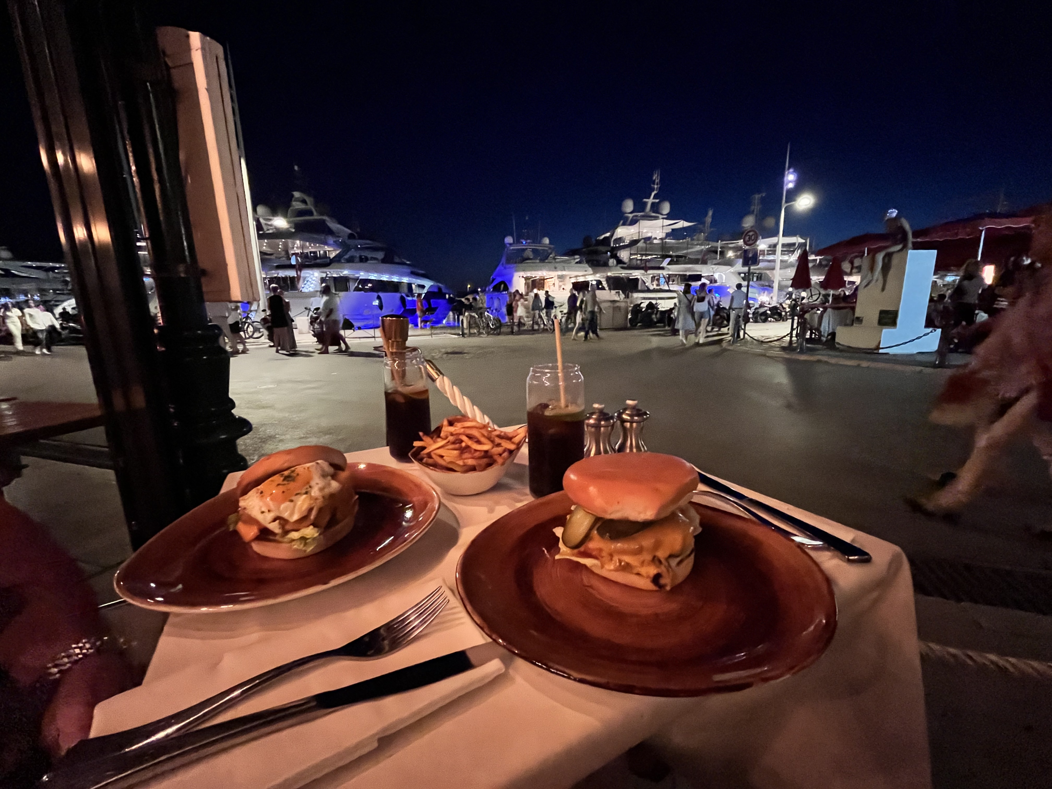 Lieu très agréable vue imprenable sur le port et les yachts Personnel charmant ,burgers et frites au top !