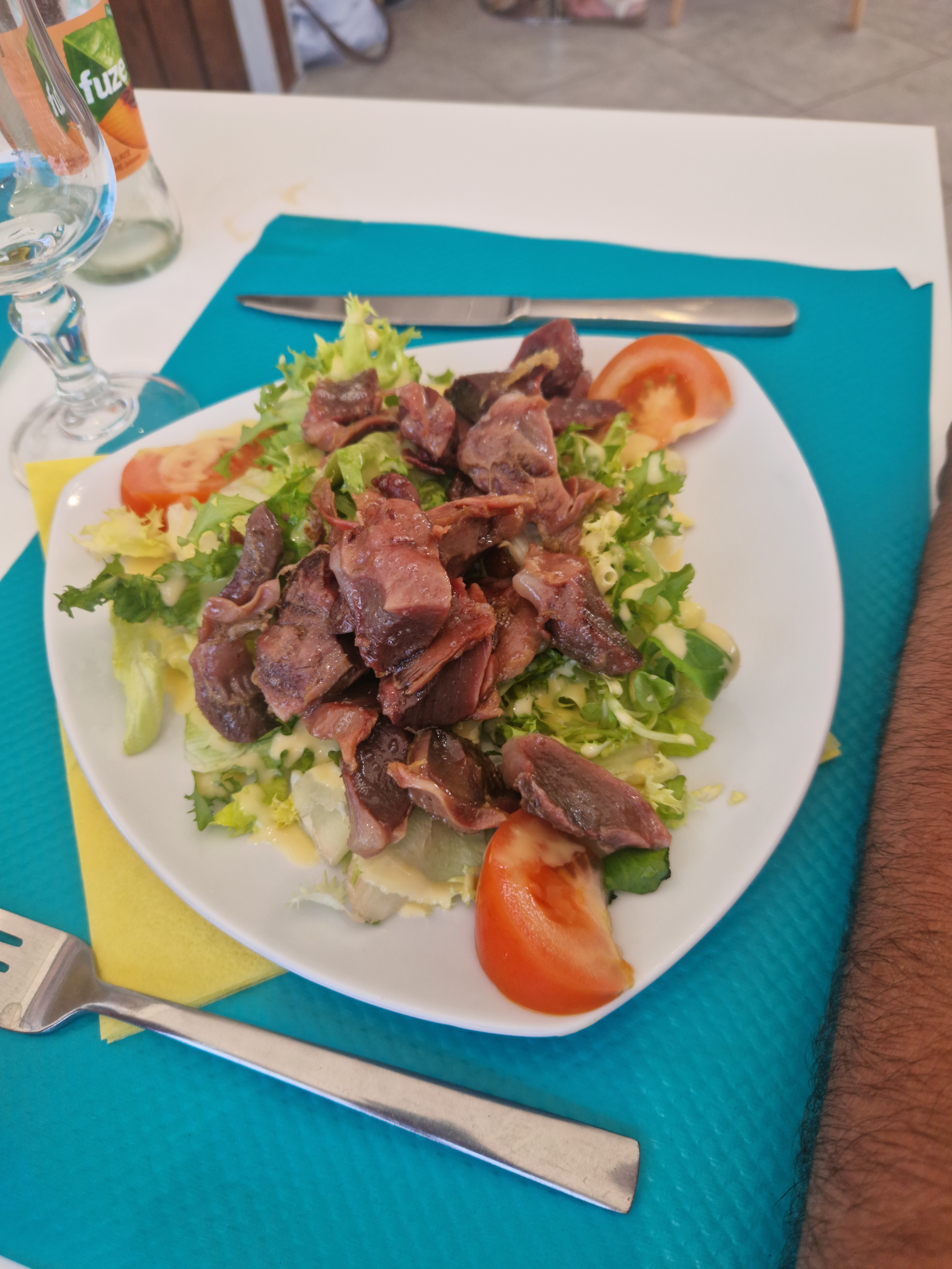 La salade de gésiers était bonne mais entre l'entrée et le plat, nous avons attendu 1h45 minutes.Nous étions les derniers clients pas encore servi. Il y avait 2 autres tables qui avait même fini leurs desserts. Mon mari est parti voir. Au final nous avons eu des tagliatelles trop cuite.