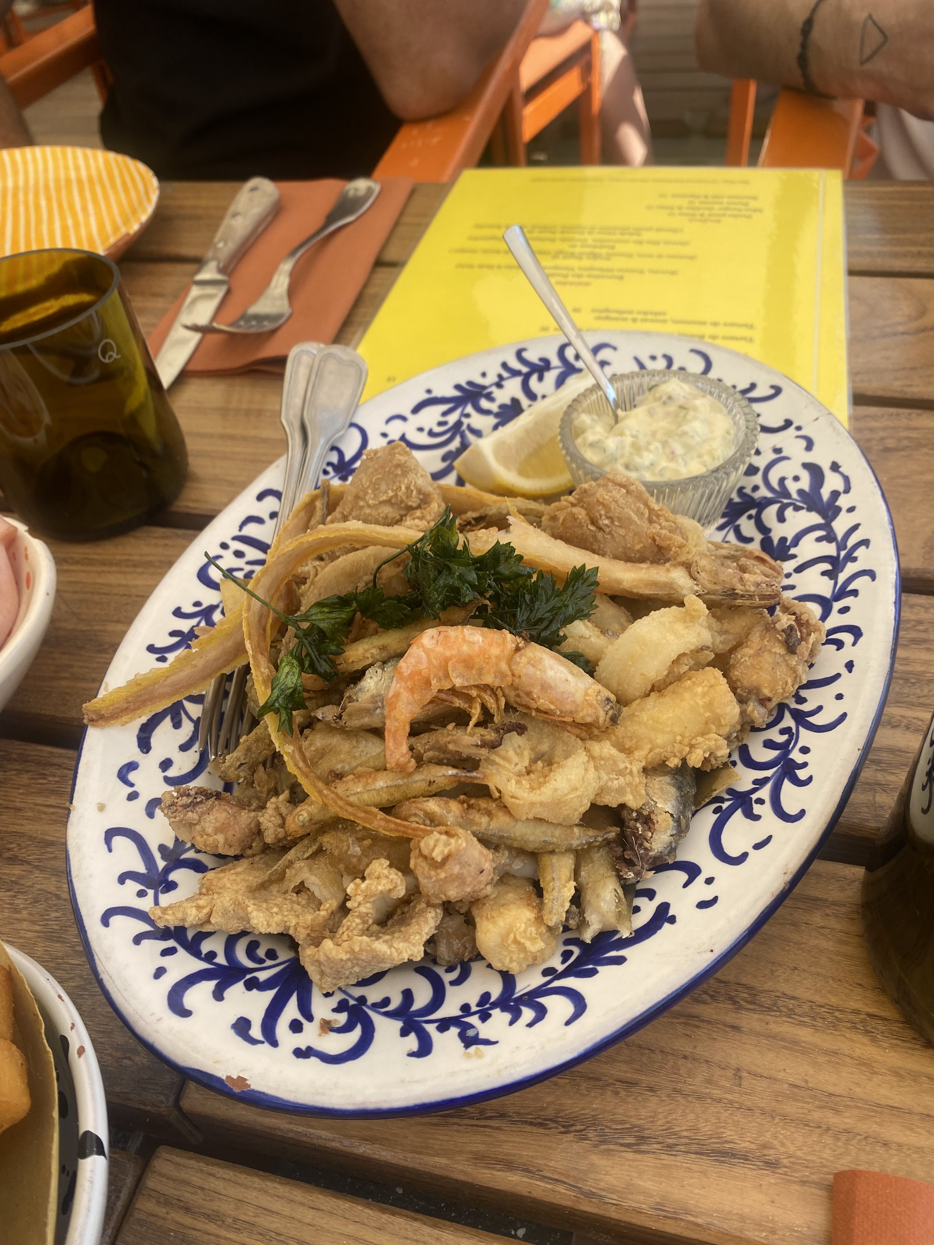 Belle découverte de ce restaurant de plage, où du service à L'assiette aucun reproche ne peut être fait. Côtelettes d'agneaux pour Madame, Fritto Mixto pour moi, EXCELLENTS. Bravo pour ces jeunes qui officient. Et à très bientôt.