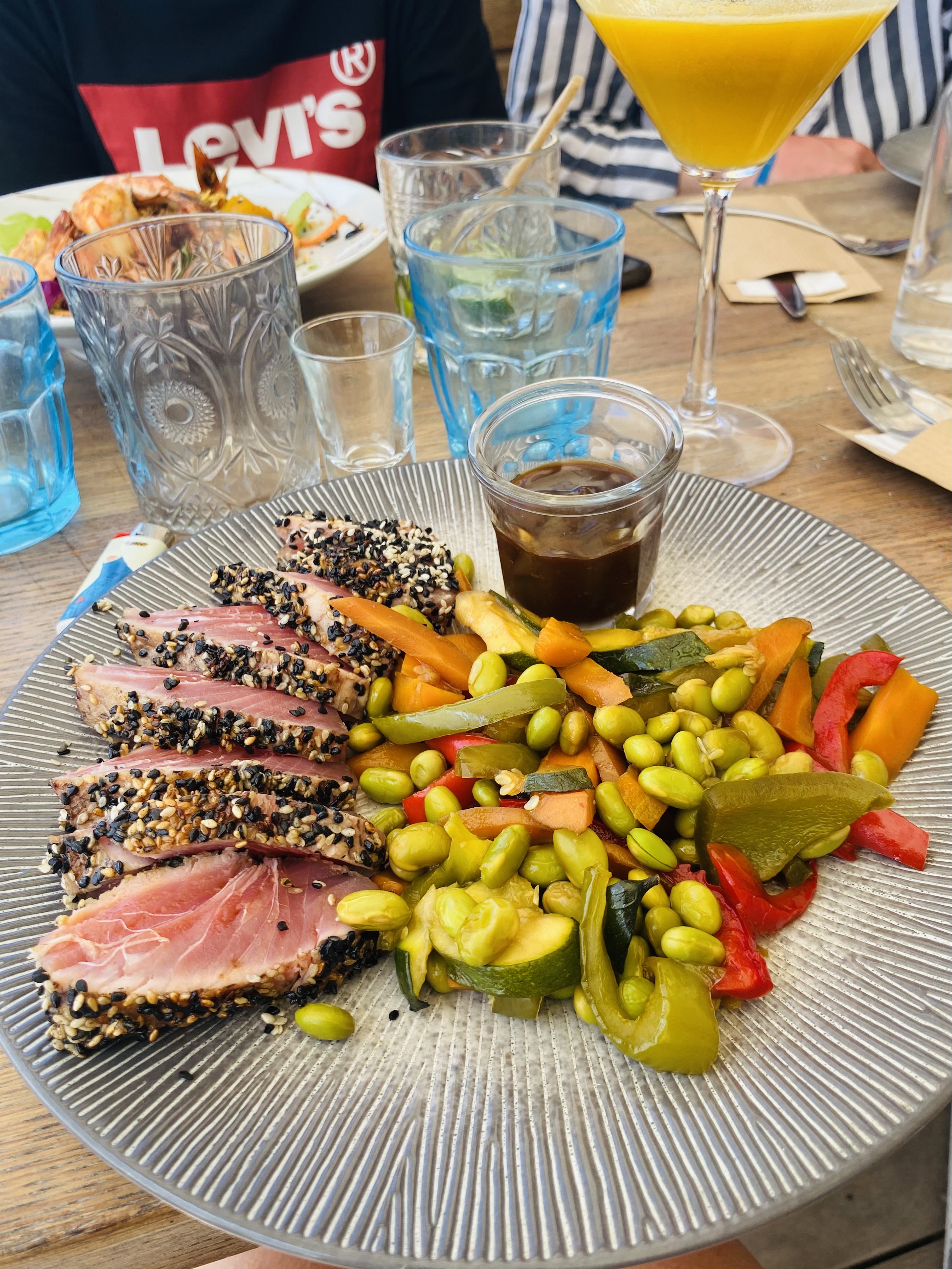 Le meilleur restaurant de plage de Vendée. De l’accueil à la dégustation (cocktails, plats et desserts) tout était parfait. Le tataki de thon était incroyable ainsi que les cocktails : succulents ! Nous nous sommes régalés et le tout avec une musique et une vue idéales. Mention spéciale pour le jeu des shots (dans un vase) nous avons gagné la tournée du patron. Bref « the place to be » 🤩