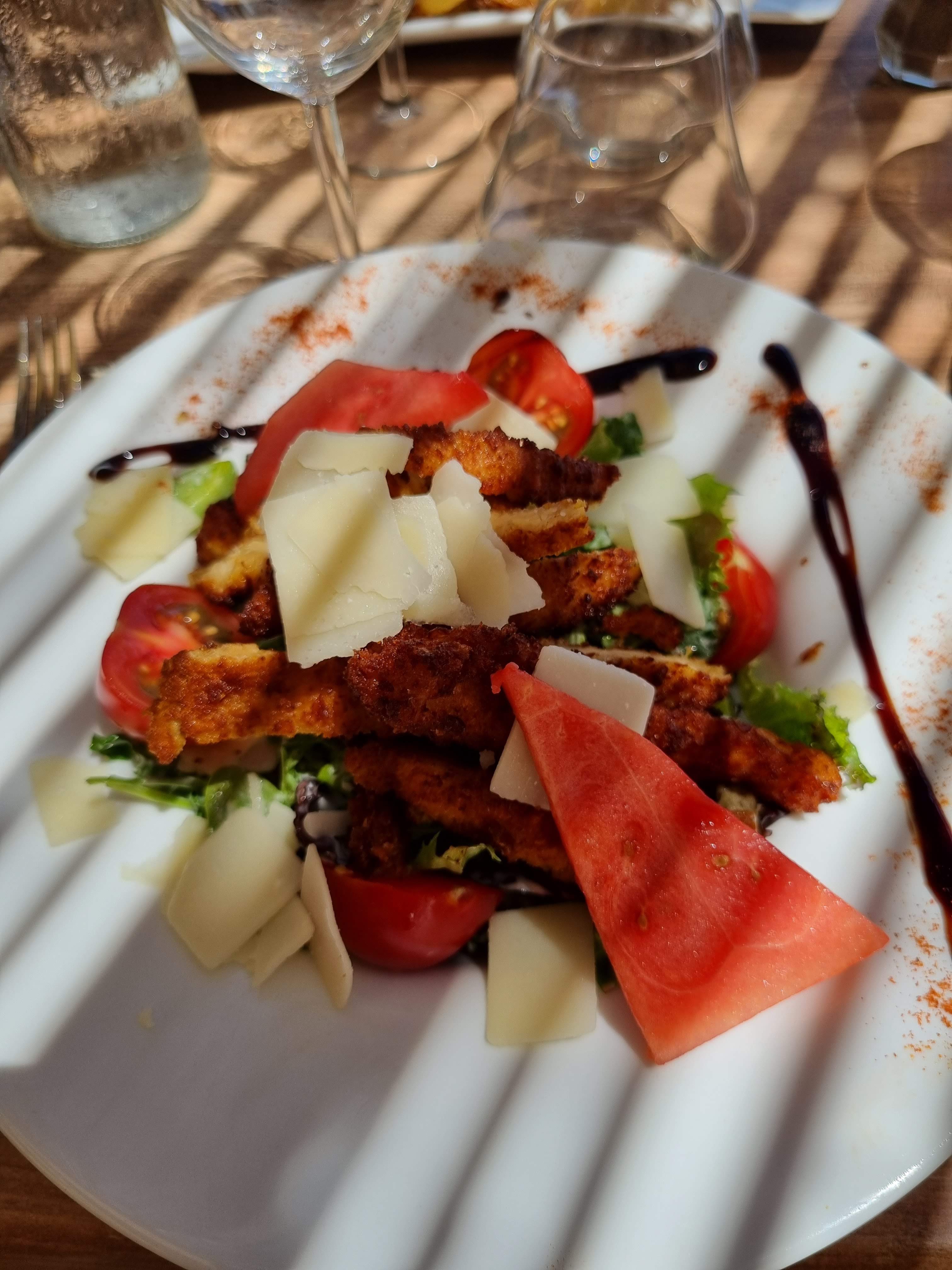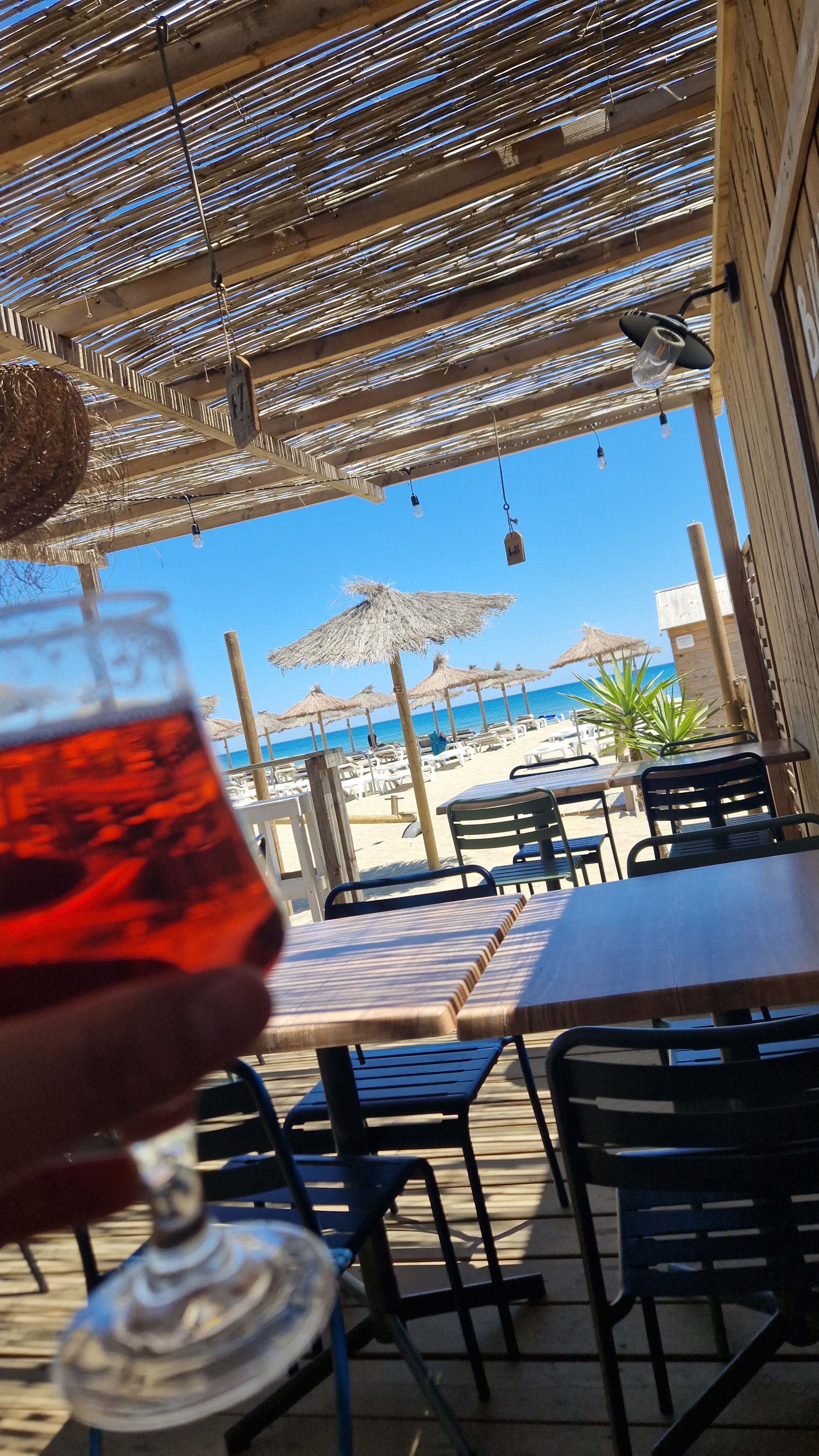 En arrivant à l'ouverture plage pas propre. Il restait deux chaussettes et des mégots. Le Spritz:on aurait dit un grand verre de Schweppes sans goût Et la salade césar :un peut de sauce césar mais énormément de vinaigrette on se demande pourquoi.