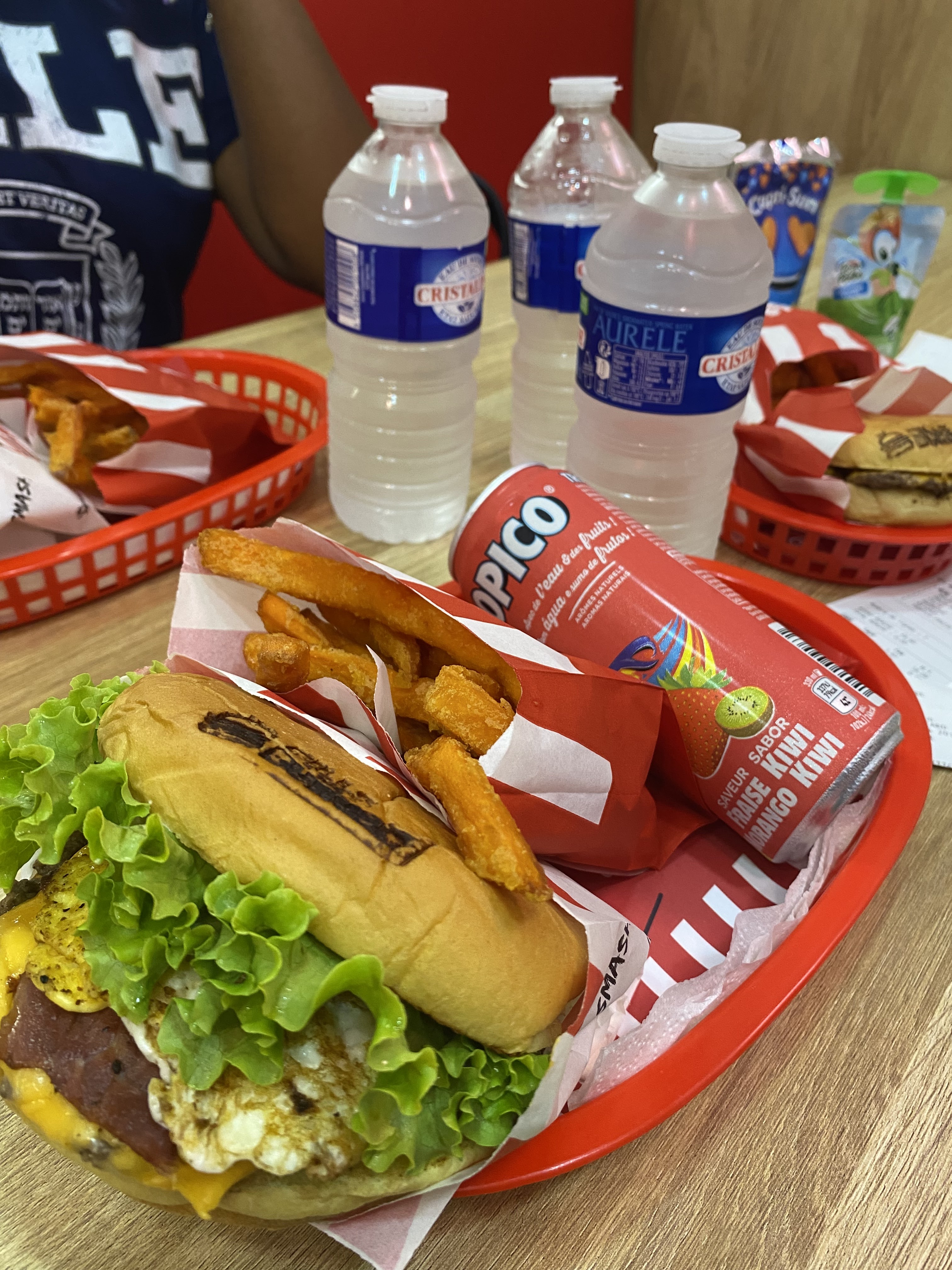 Les smashs sont généreux et bien garnis, le pain est un peu sucré, pas de mon goût personnel… il fait trop chaud, il y a des climatiseurs mais qui ne sont pas allumés ou à peine… Bien globalement 👍🏼