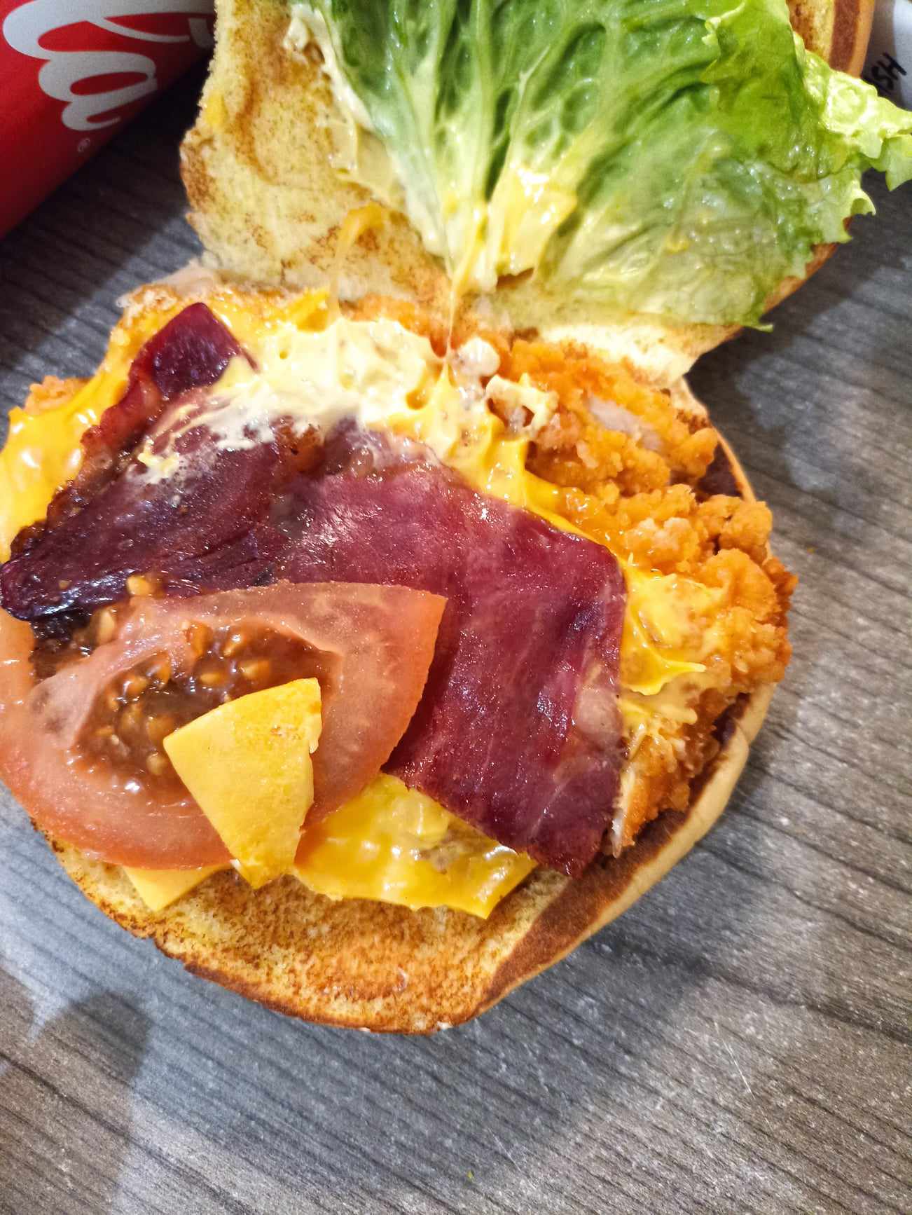 Poulet pané sec à s’étouffer . La tanche de bacon est dure, j’ai l’impression de manger une biscotte, vraiment déçu la qualité a vraiment baisser !!!