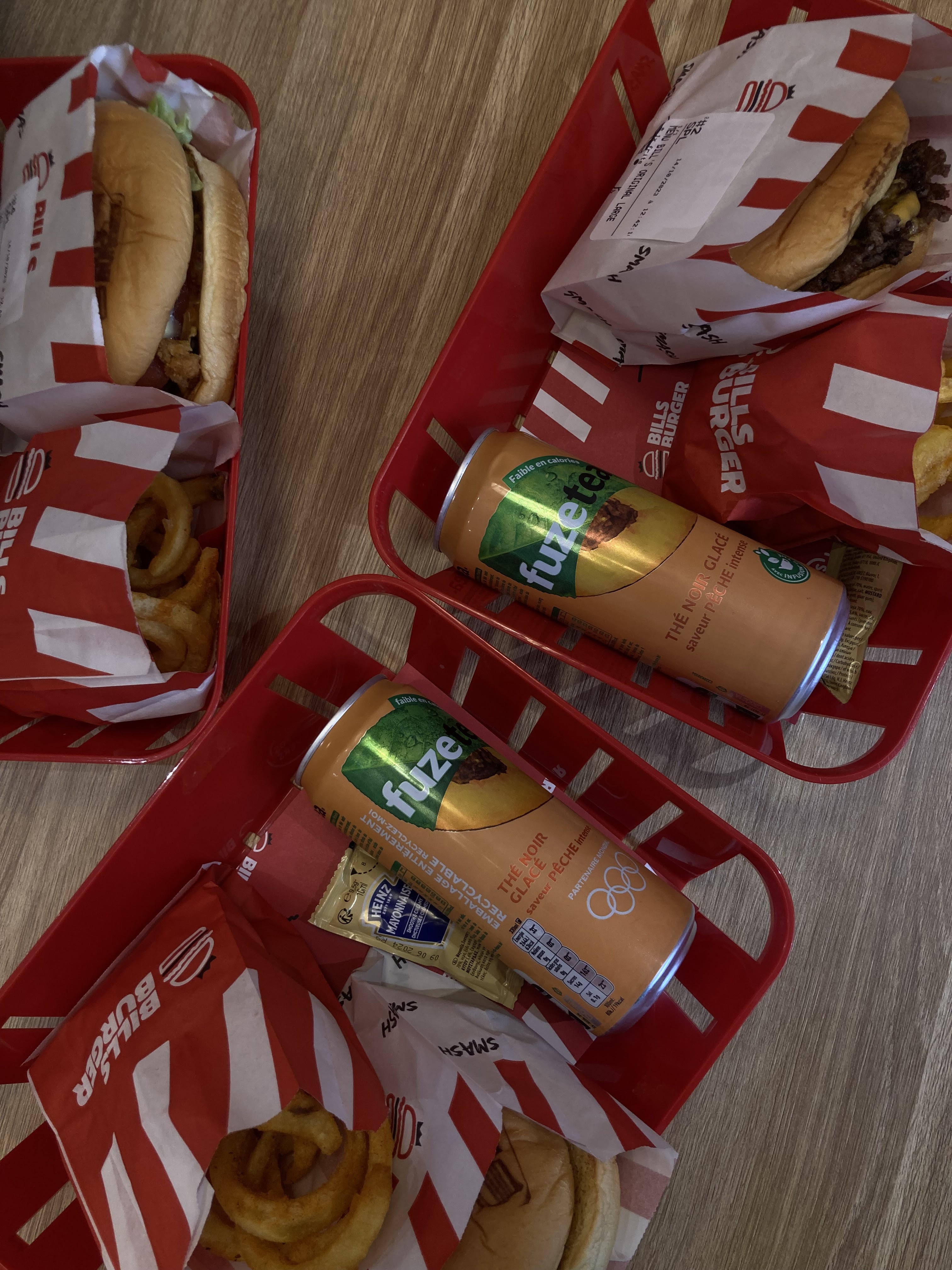 Nous avons effectué une commande ce soir, la livraison a été très rapide. Les smashs étaient bons mais ils ne ressemblaient en rien aux photos sur le site. Les cinq avaient le même visu. Les frites étaient bonnes. Nous restons déçus par rapport à l’avant Bill’s Burger. À quoi servait la question : Savez-vous que Bill’s vous aime ?