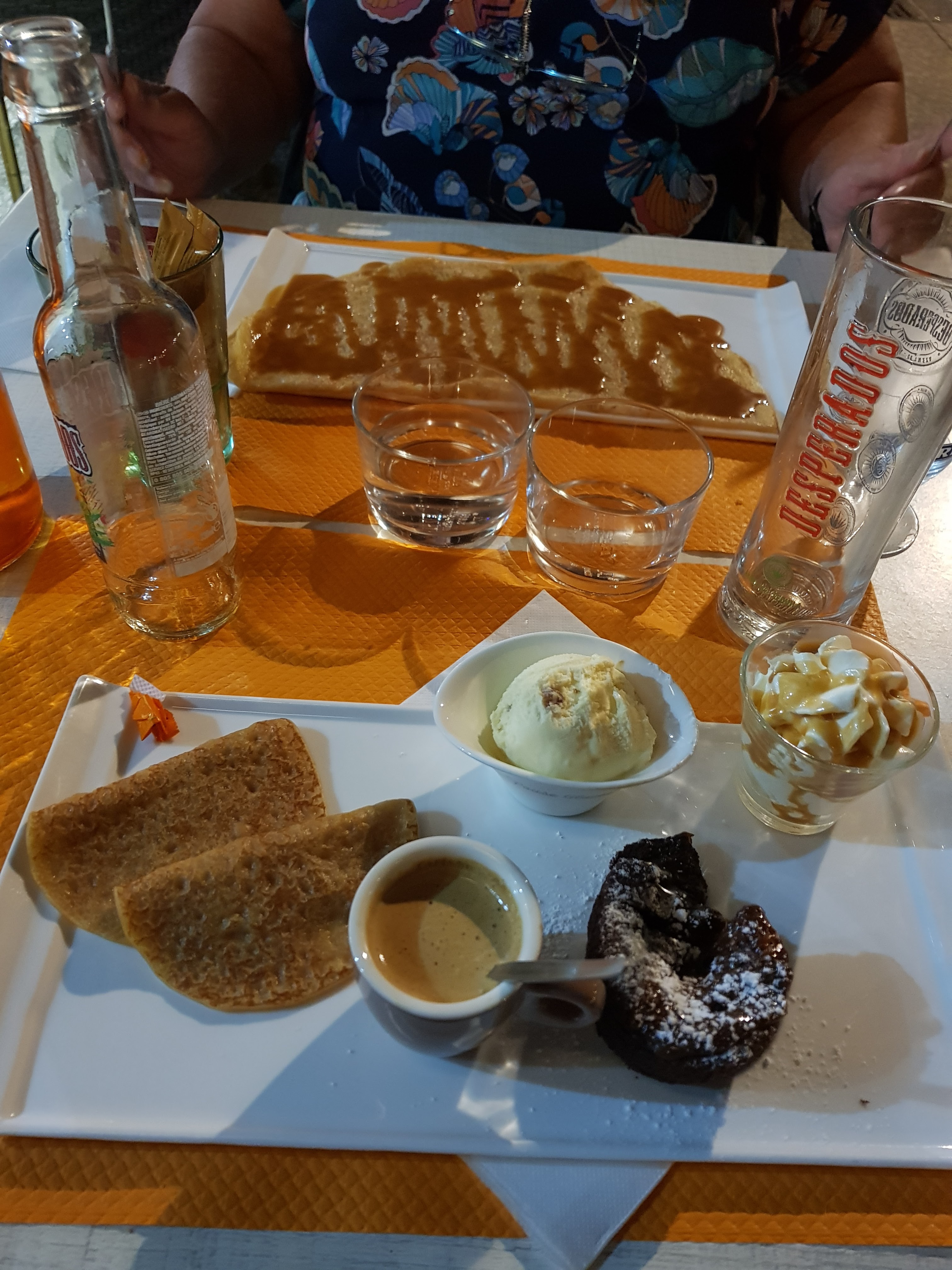 Très bon . Un peu d'attente dans le pic mais acceptable et personnel disponible et sympathique. Dommage pour les fleurs artificielles et les sauces en sachet , vous méritez mieux ! Les desserts sont copieux et bon marché , j'aurai adoré du chocolat fondue a la place de la sauce chocolat sur ma crêpe.