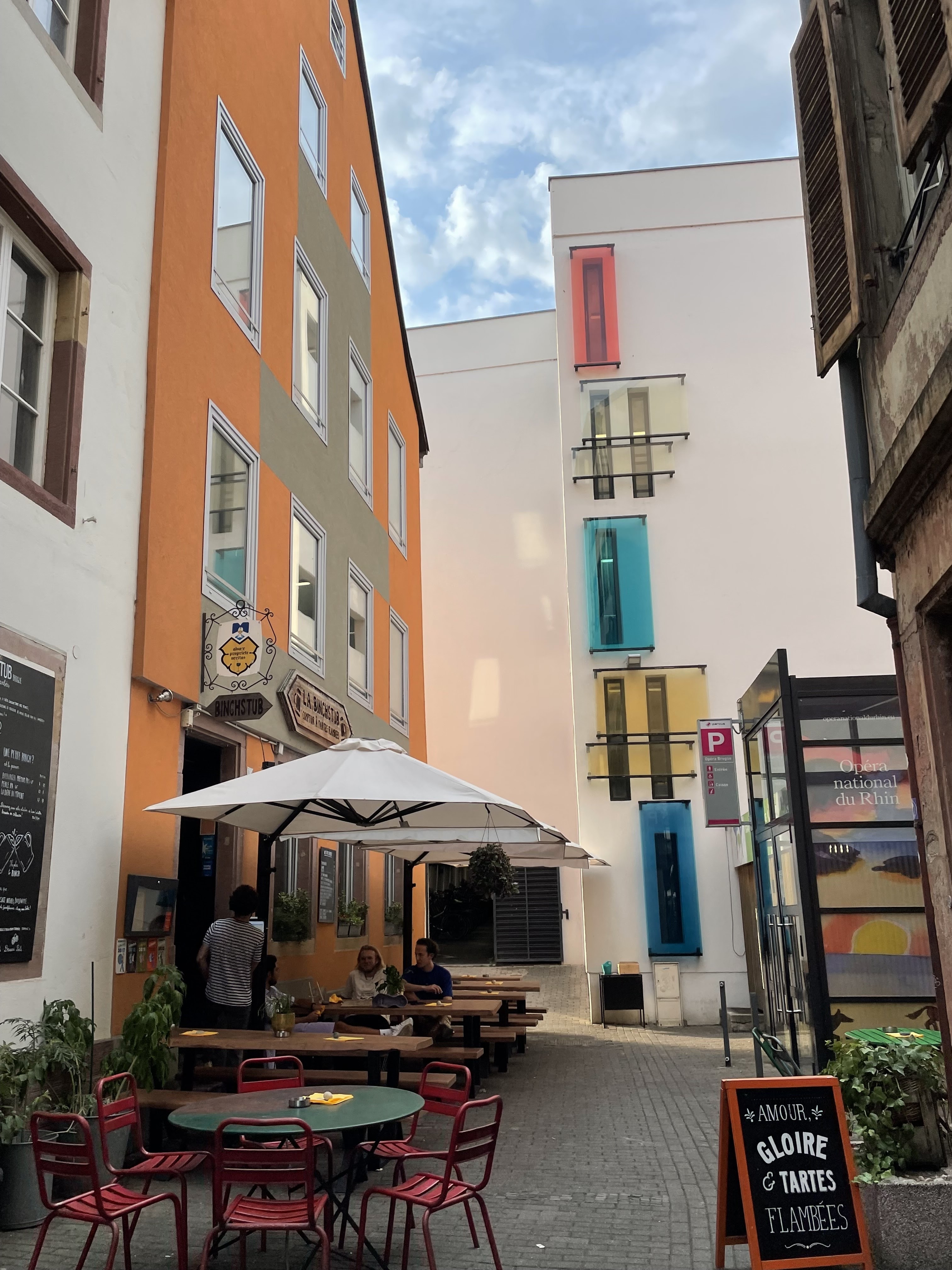 Nous avons passé un moment agréable. Une super ambiance avec ses serveurs à l'écoute. Des superbes bonnes tartes flambées (paroles d'Alsacienne). Ils pensent à tout, même les craies pour les enfants afin de dessiner dans la rue qui se situe dans une impasse piétonnière juste à côté du parking opéra Broglie.