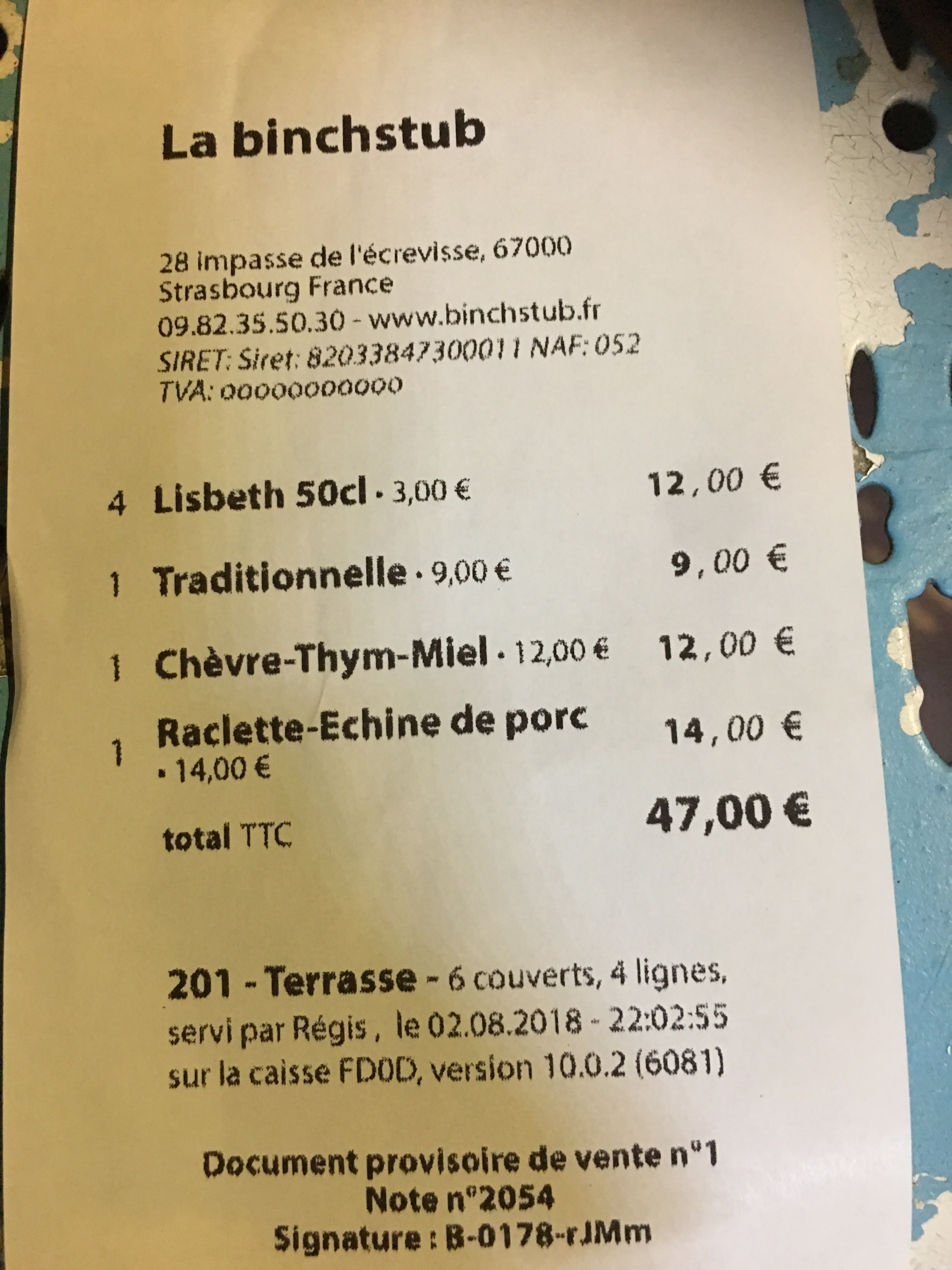 C’est cher, très cher… On a franchi un cap sur le prix des tartes flambées à Strasbourg qui ne le valent pas vraiment. Plutôt sèches. Les bières également sont chères… Bref, il y a bien mieux et meilleur rapport qualité prix en ville. Seul le service a été au top avec des serveuses très sympathiques !