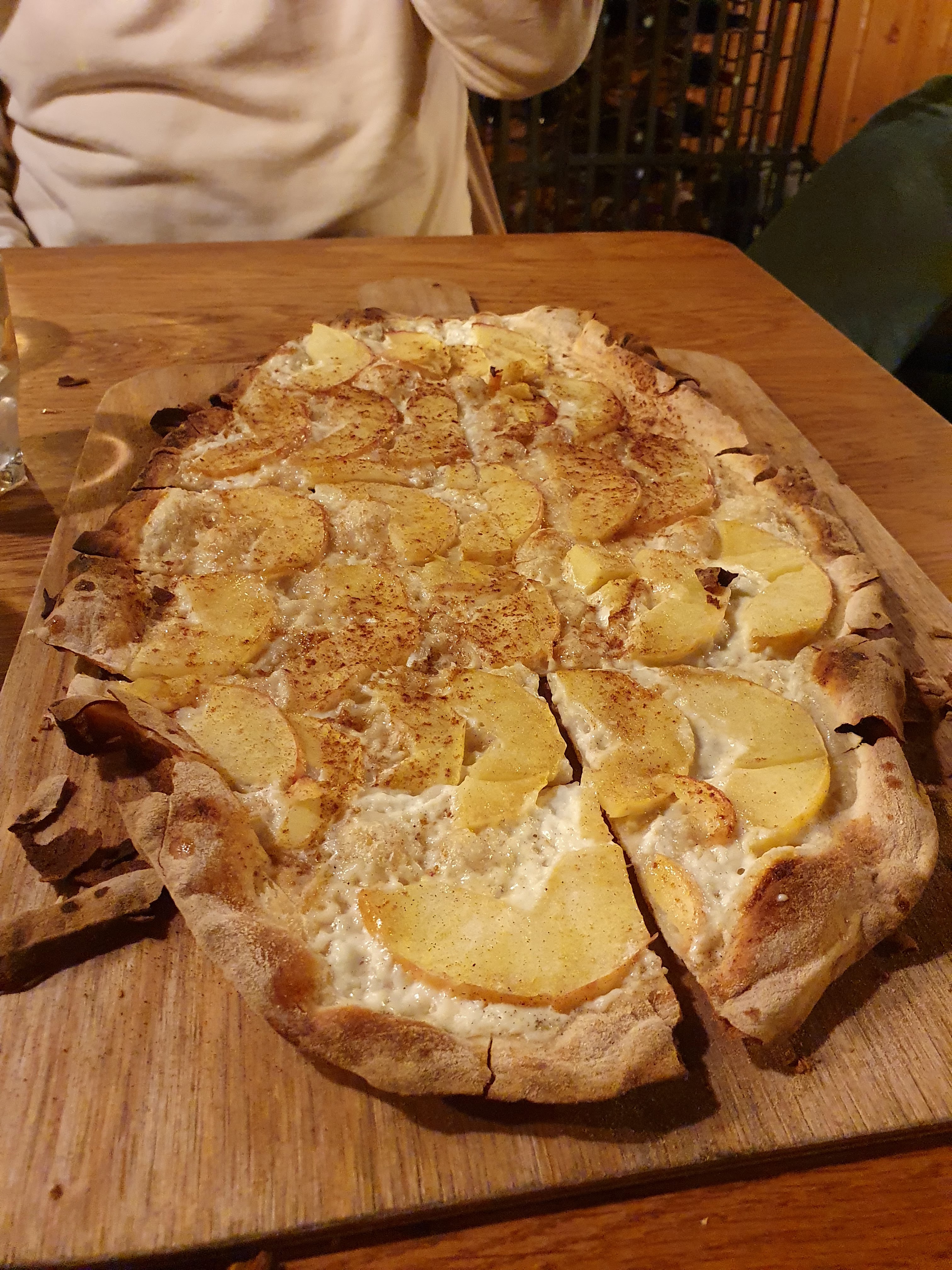 Meilleures tartes flambées que j’ai pu manger. C’était tout simplement un DÉLICE. Attention si vous êtes à l’étage inférieur, le réseau est inexistant.