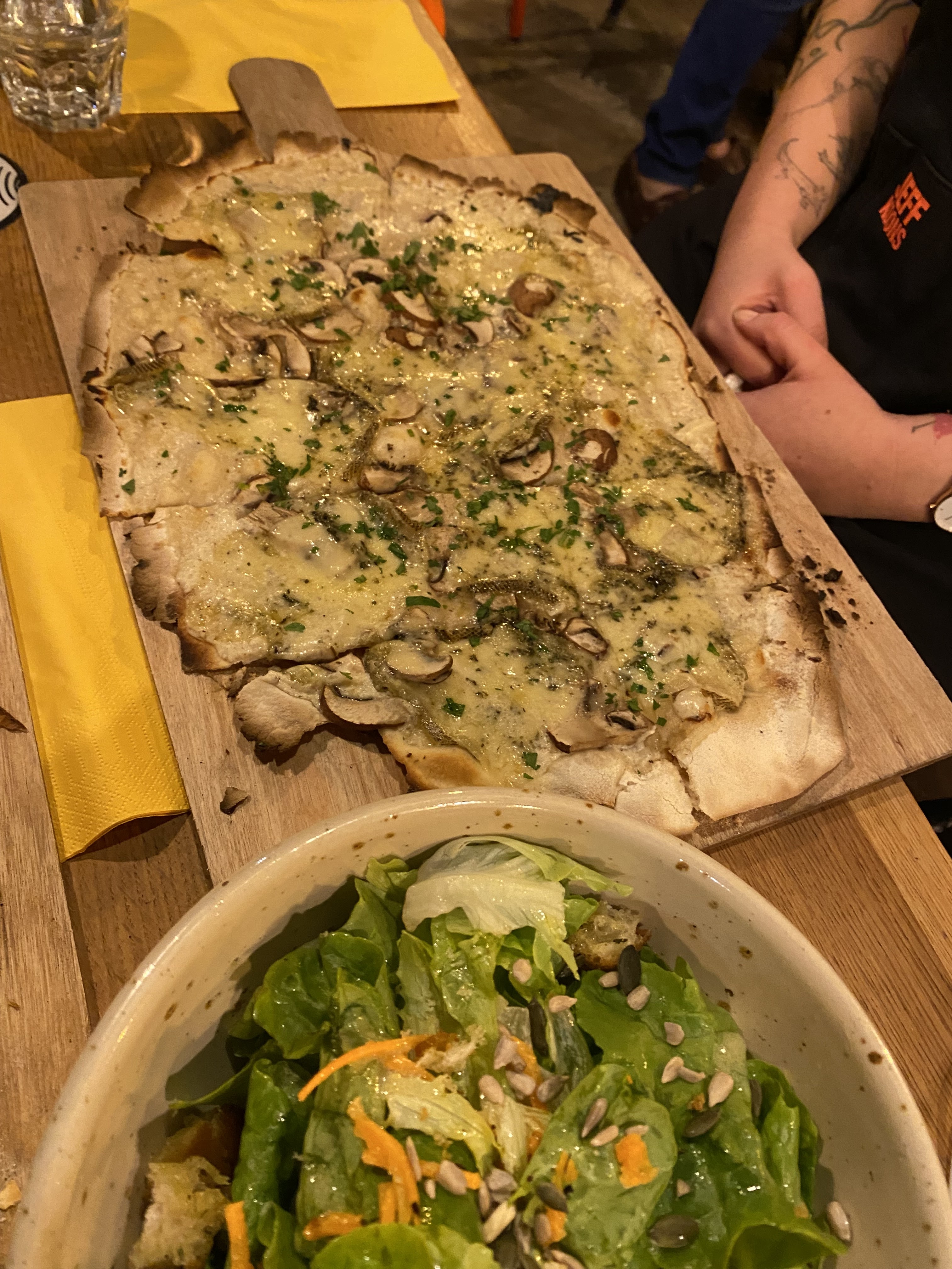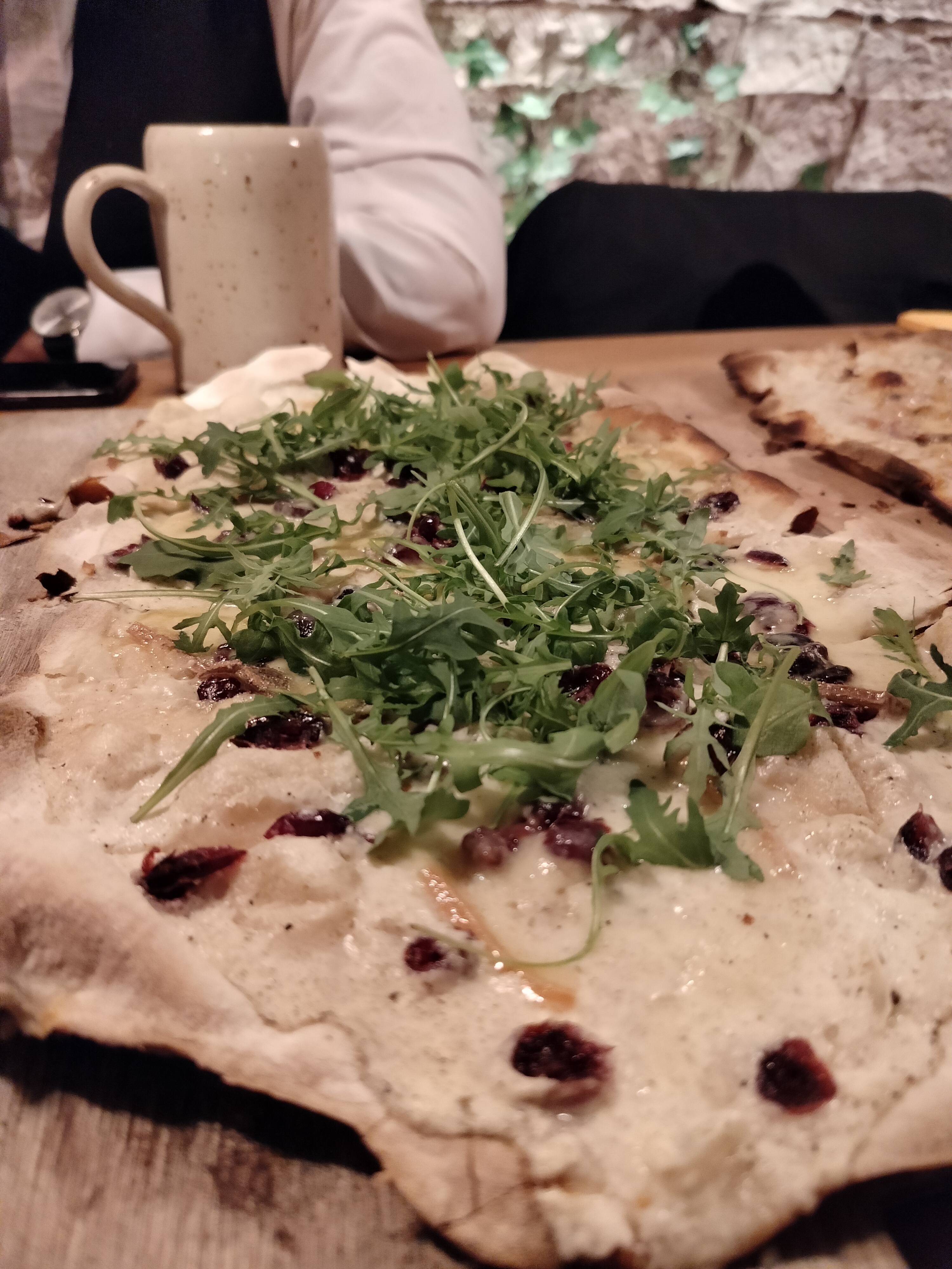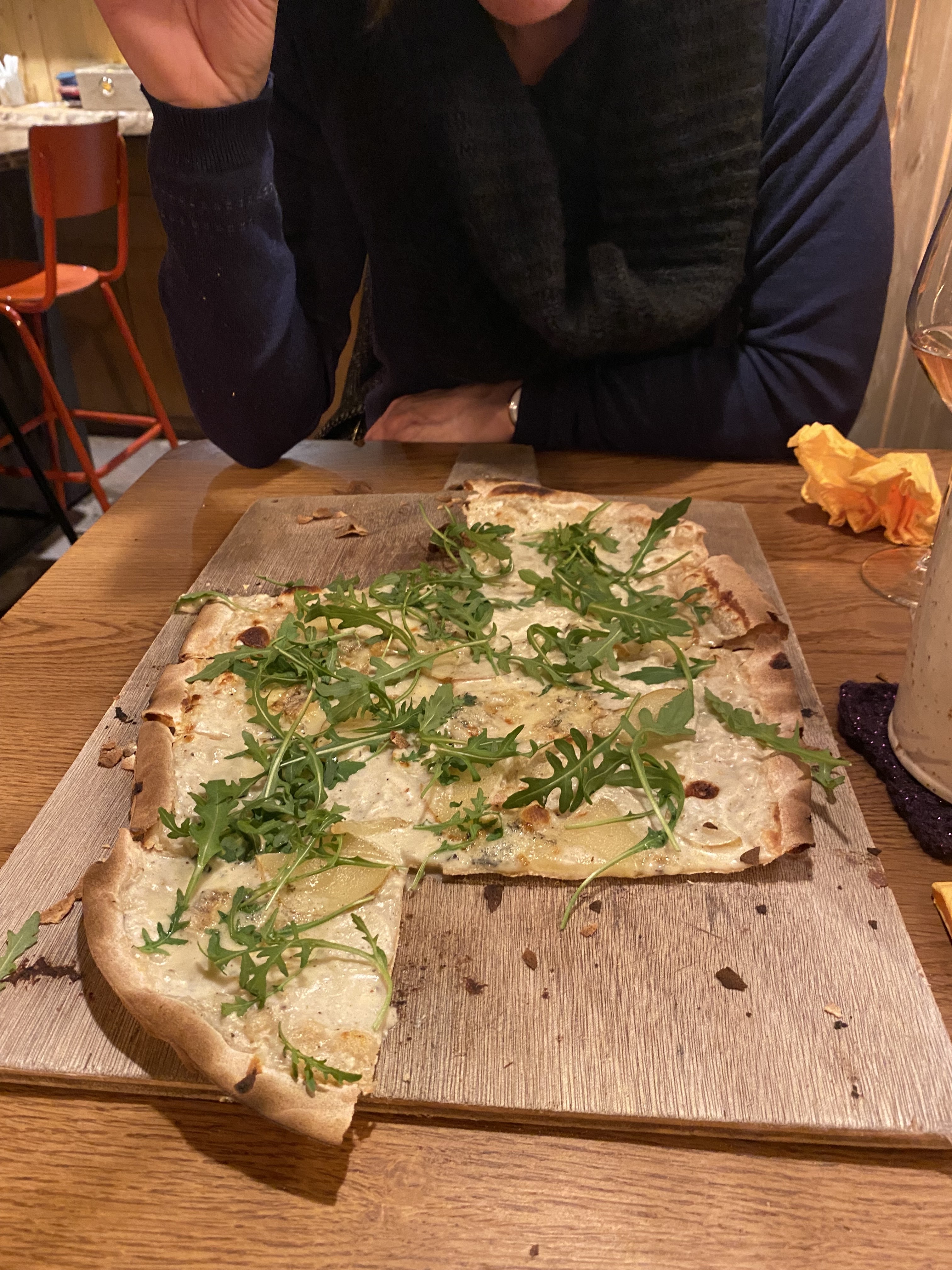 sans doute les meilleures tartes flambées que j’ai mangées gros coup de cœur pour la tf morbier, canneberges et roquette et vraiment cool de proposer des vins natures !