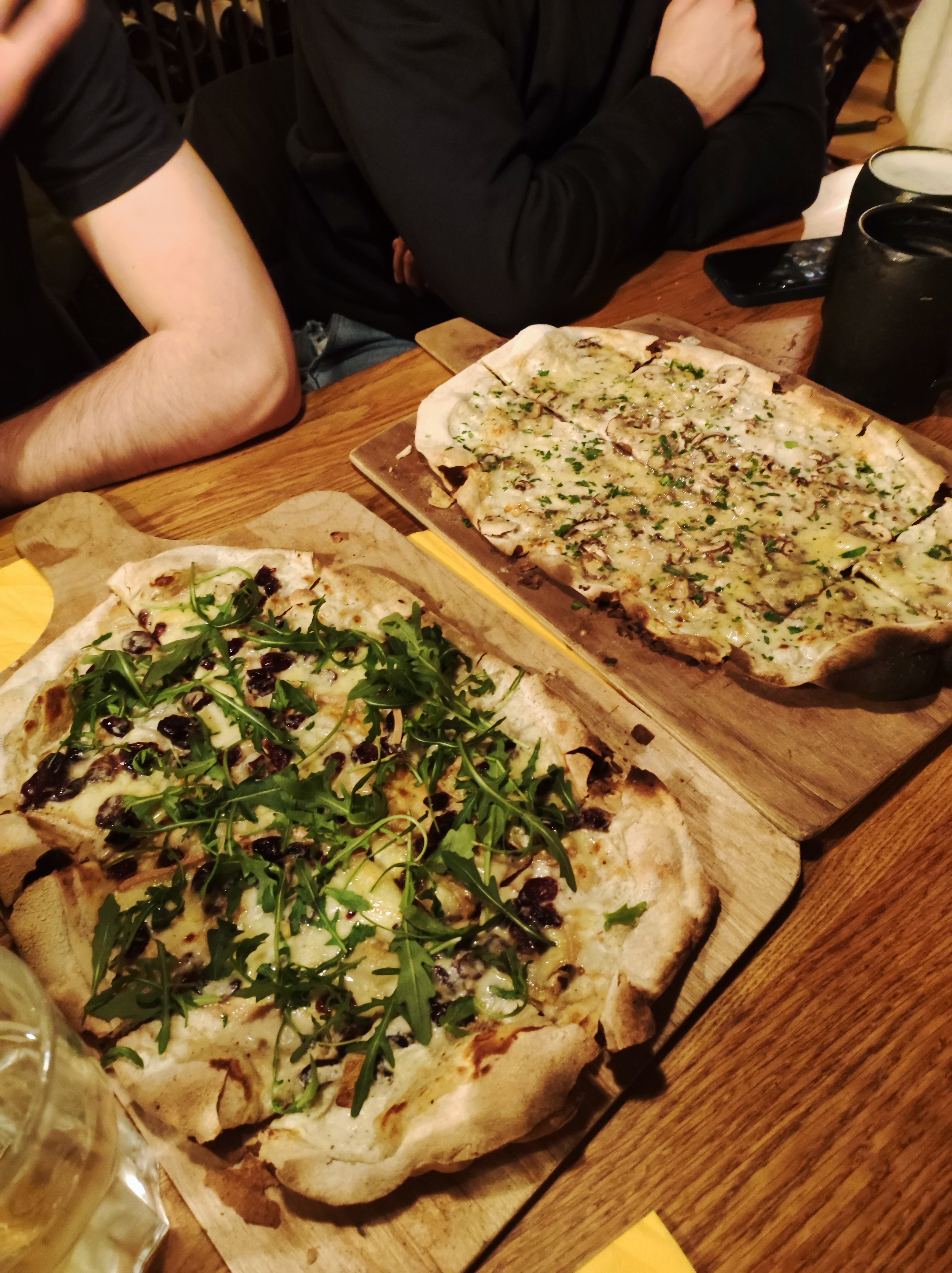 💸 Prix élevés et qualité (juste) bonne, pas incroyable. 👍 Large choix intéressant de tartes flambées. 🙉 Très bruyant ! 💁 Service professionnel et poli.